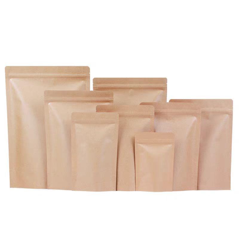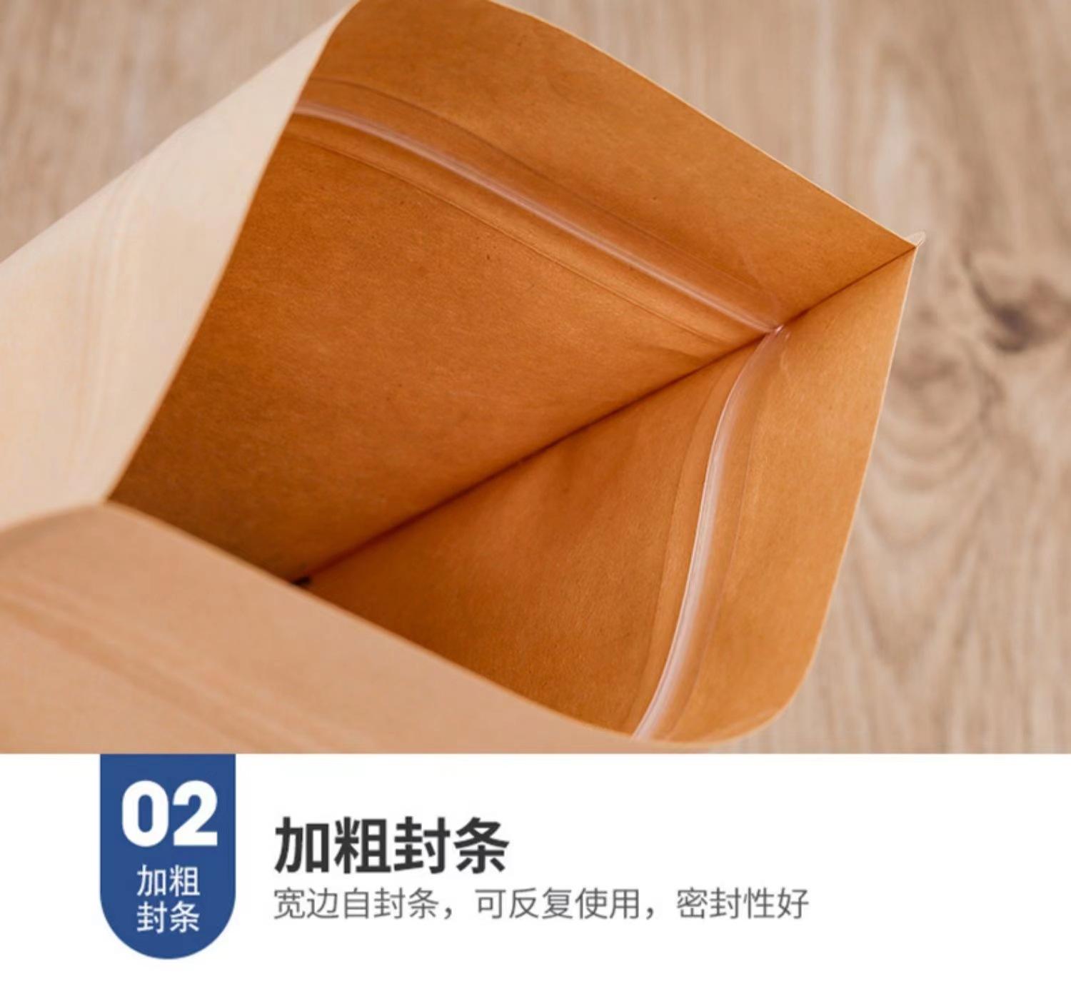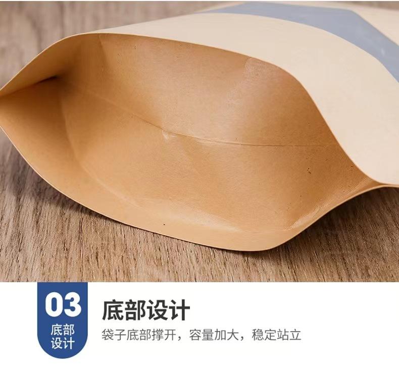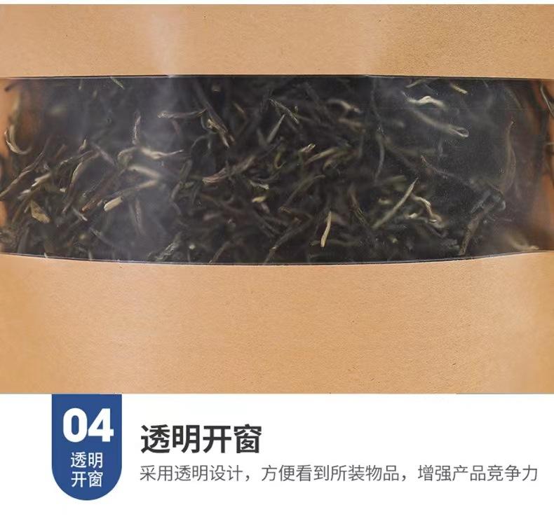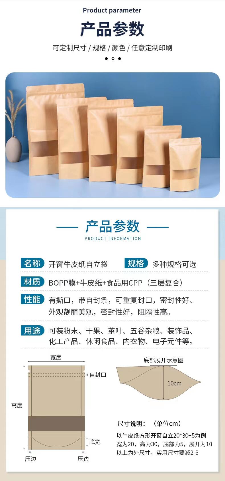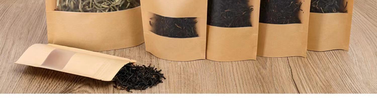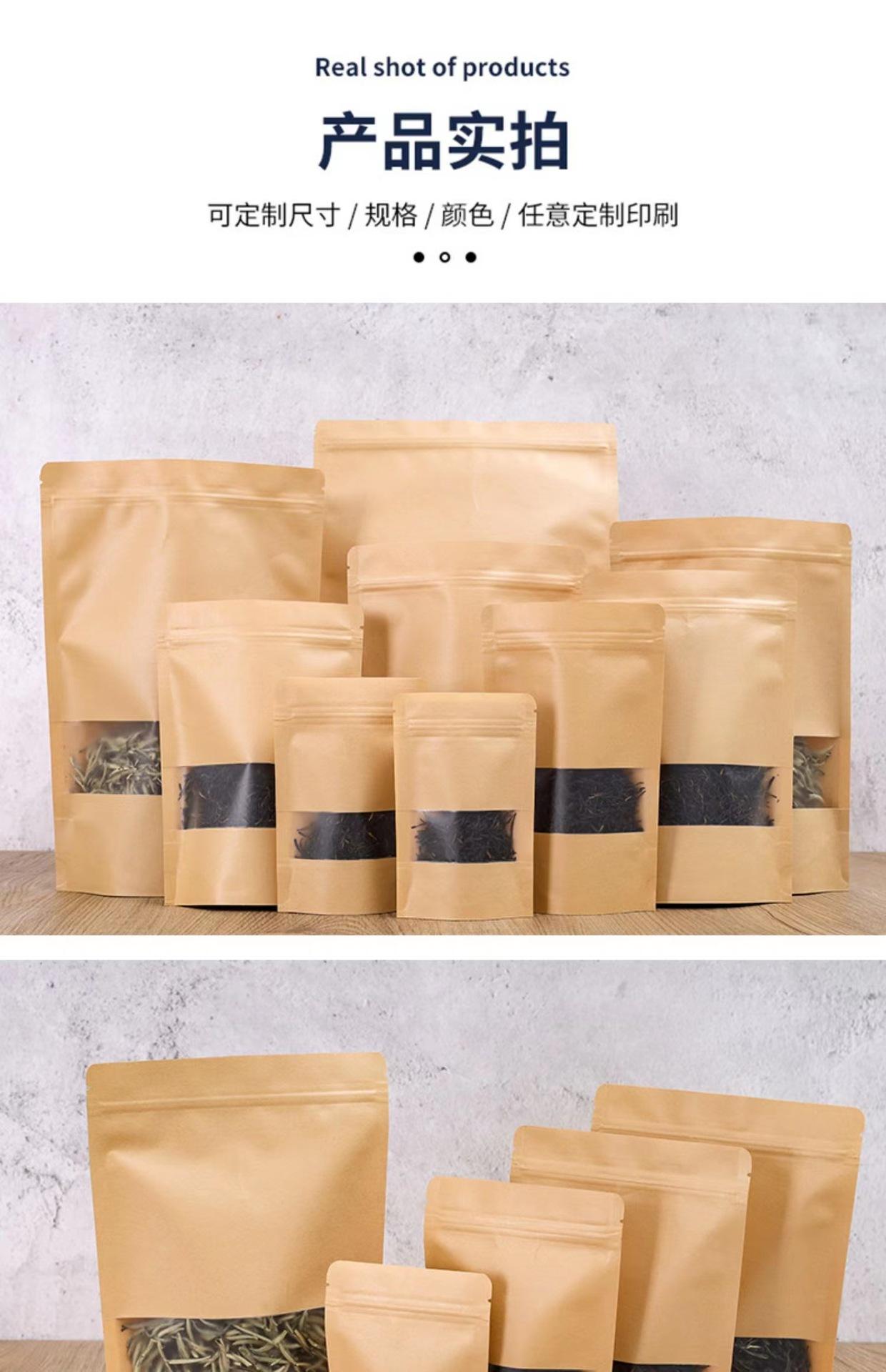 Bolsa de papel kraft transfronteriza engrosada bolsa para empaque de té ventana esmerilada papel kraft bolsa autosellable nueces snacks sub-empaque