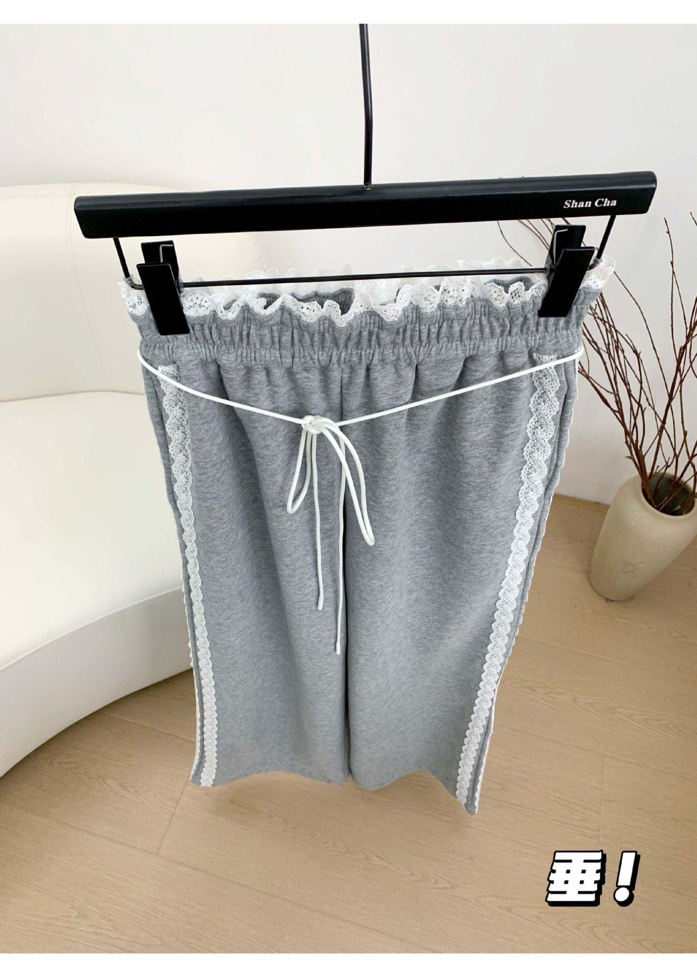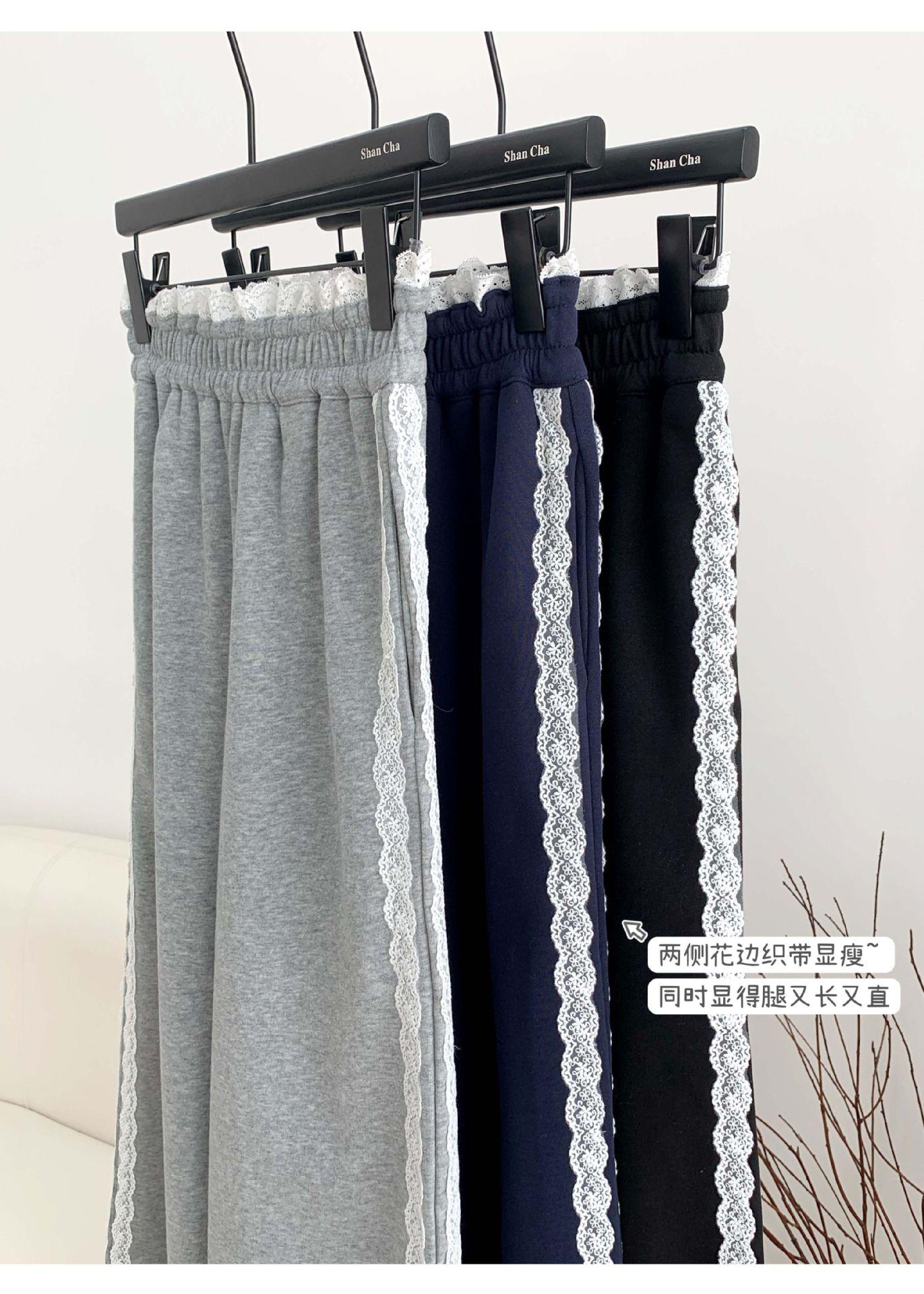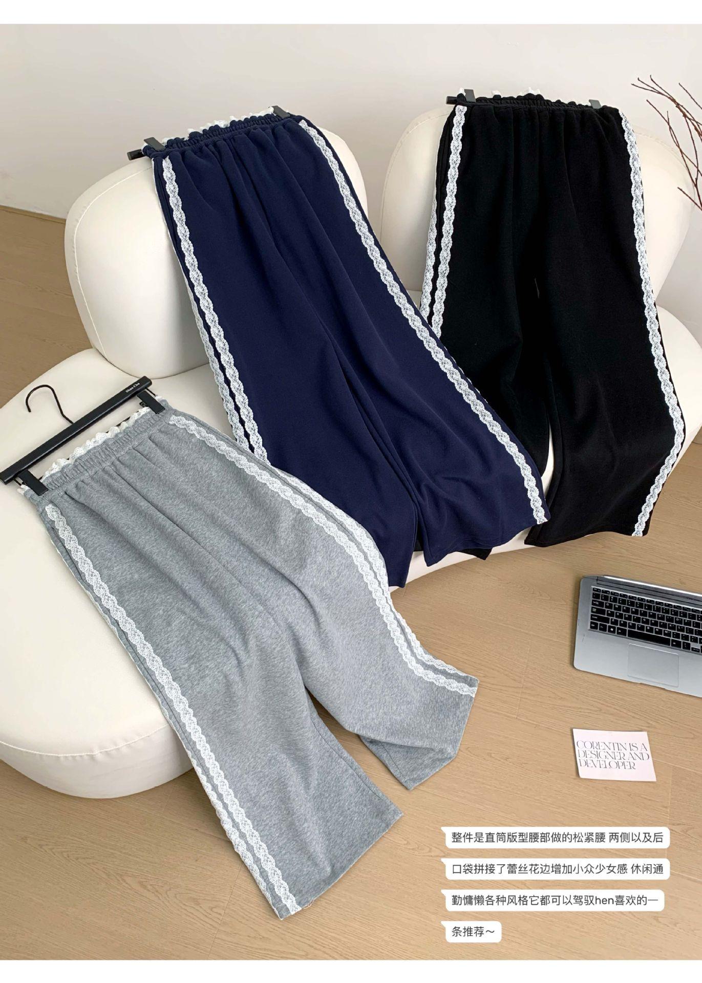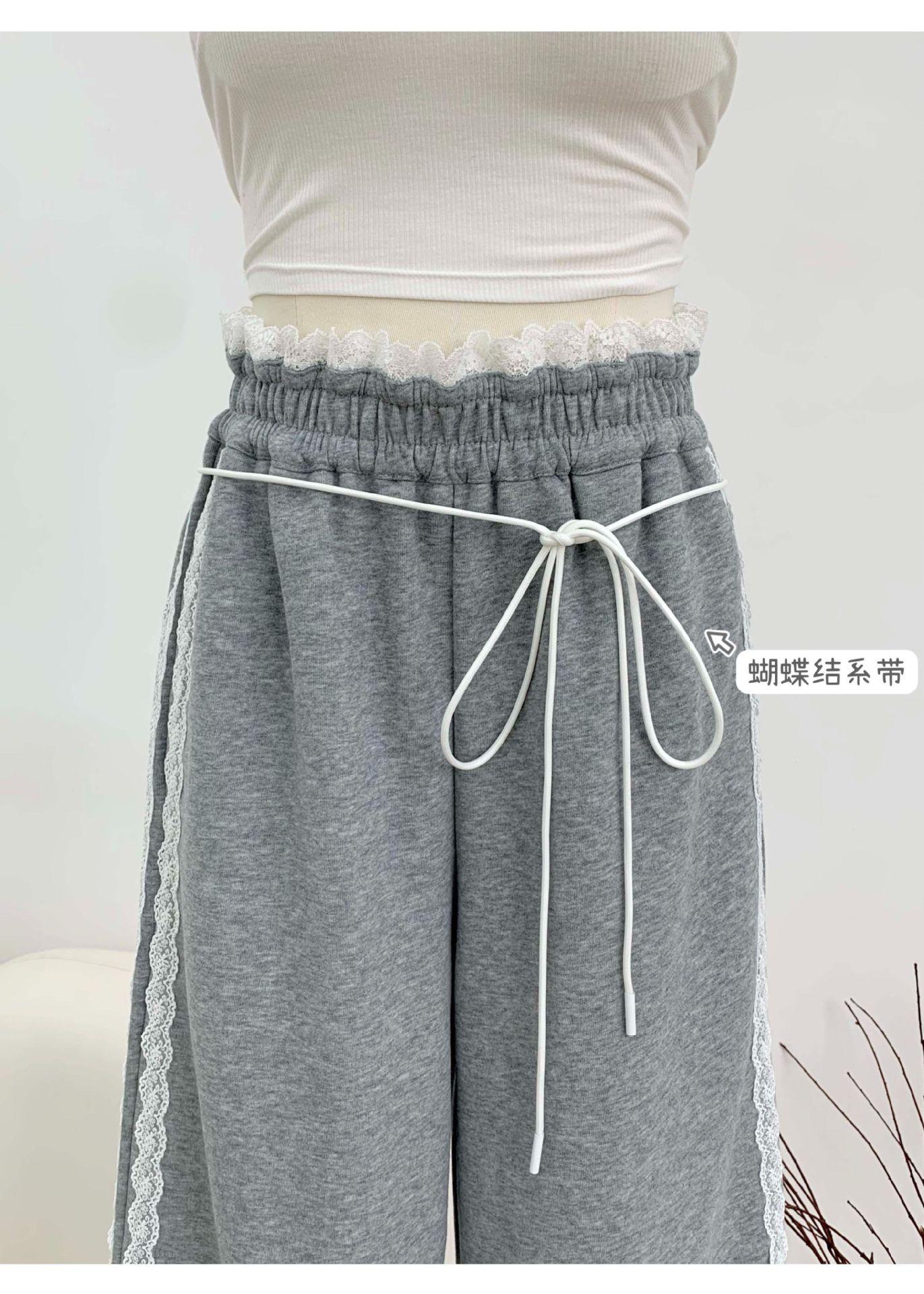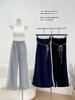 Pantalones casuales finos con tiras y borde de encaje para mujer, primavera y otoño 2025, nuevo estilo coreano, pantalones holgados, rectos, de cintura alta y pierna ancha.