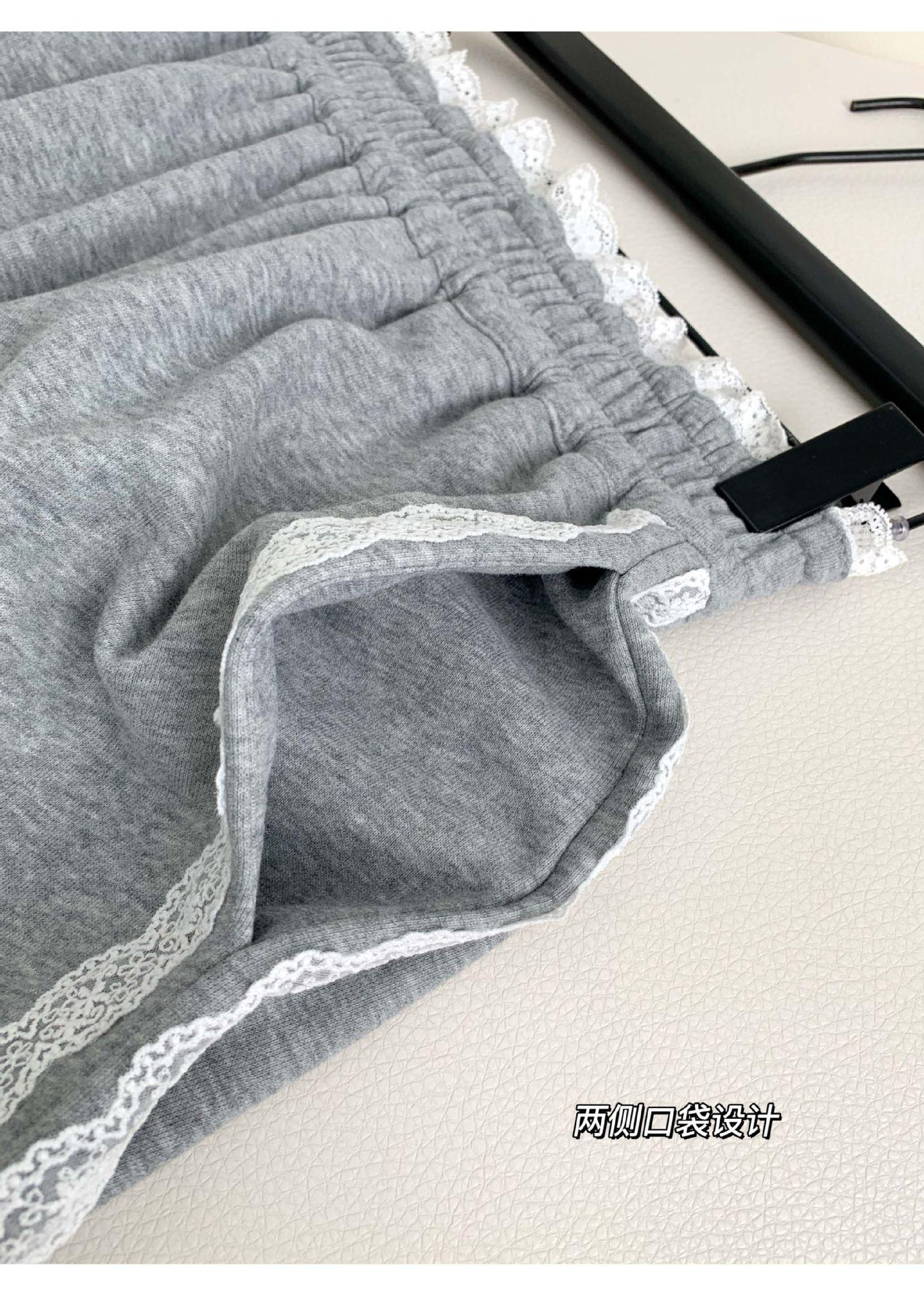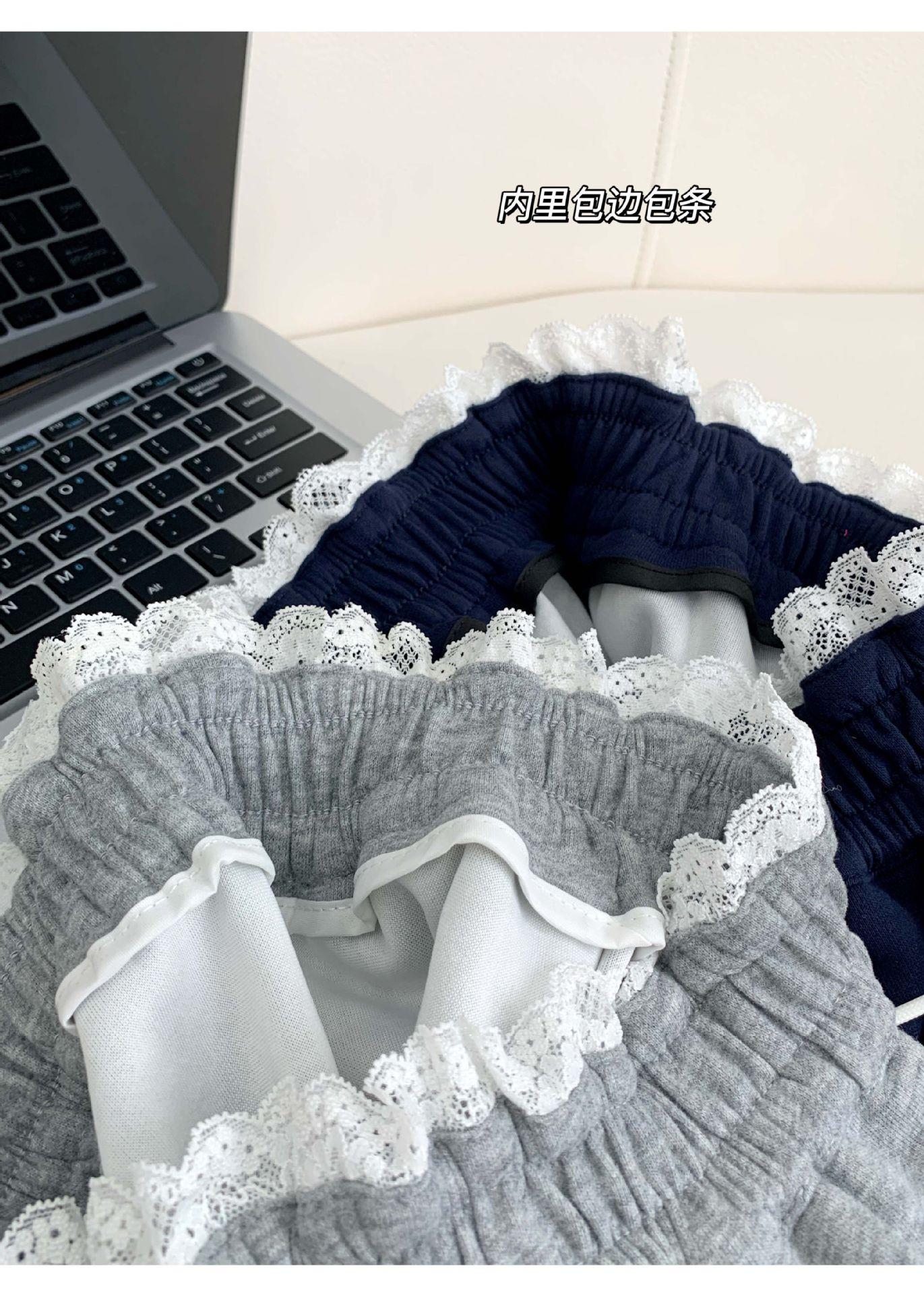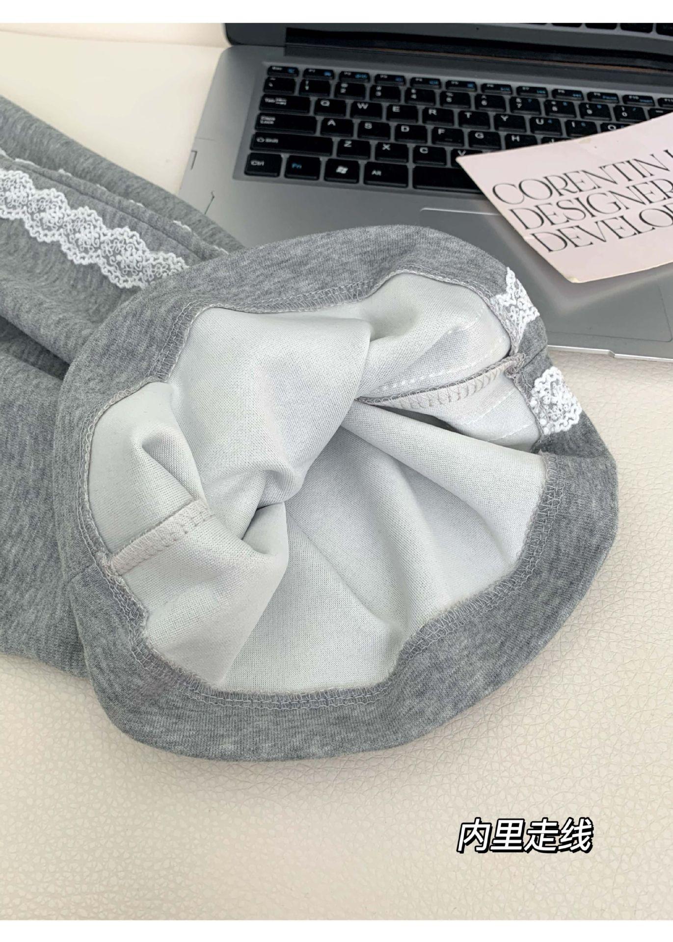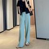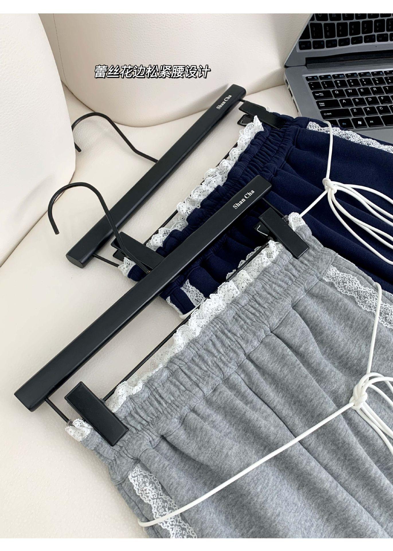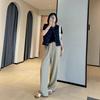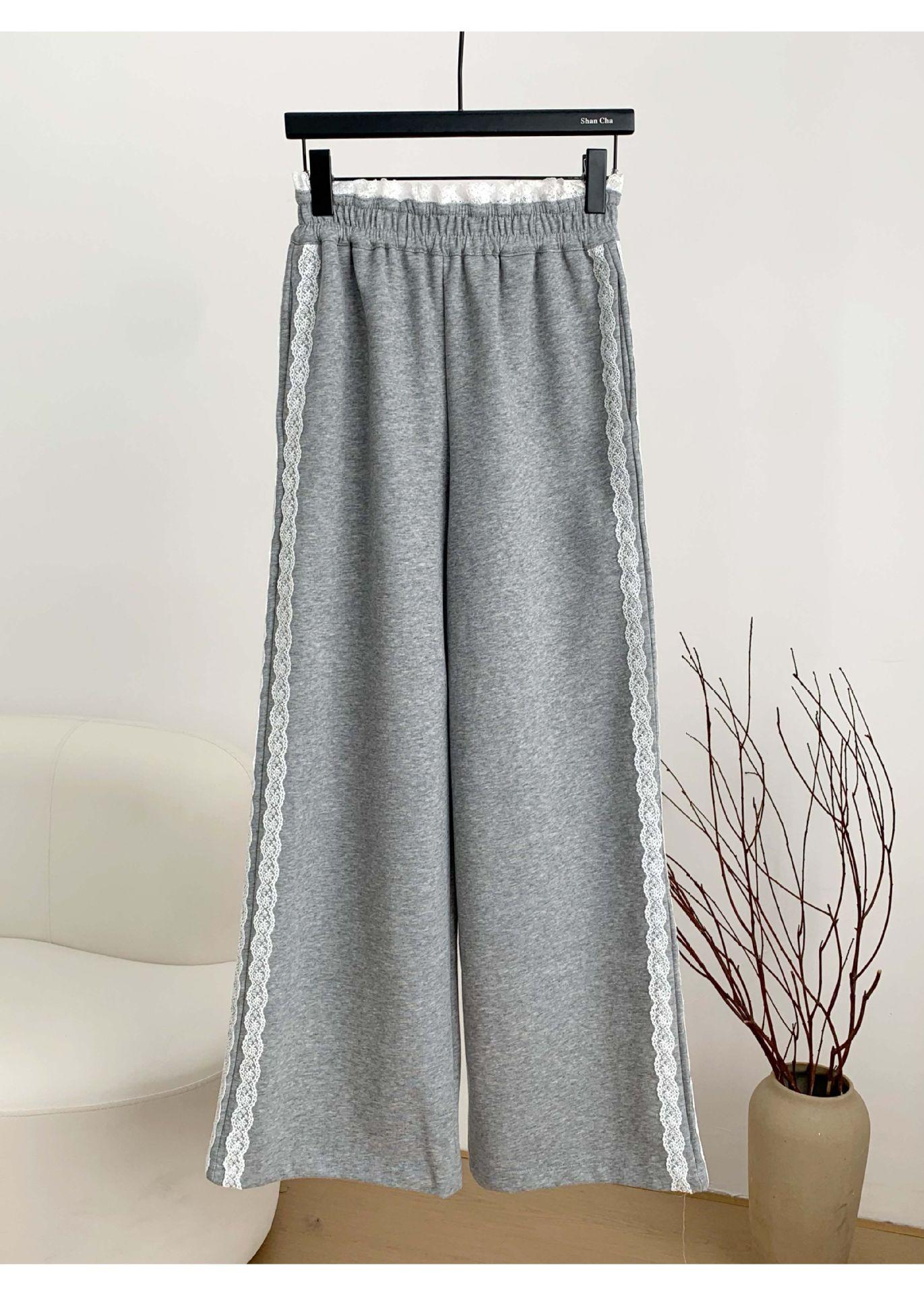 Pantalones casuales finos con tiras y borde de encaje para mujer, primavera y otoño 2025, nuevo estilo coreano, pantalones holgados, rectos, de cintura alta y pierna ancha.