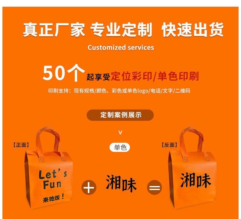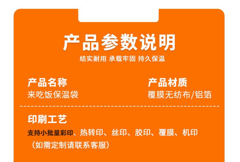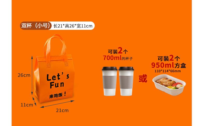 Come to eat; small size is 21cm long, 26cm high and 11cm wide; coated non-woven insulation bag, Come to eat; m...