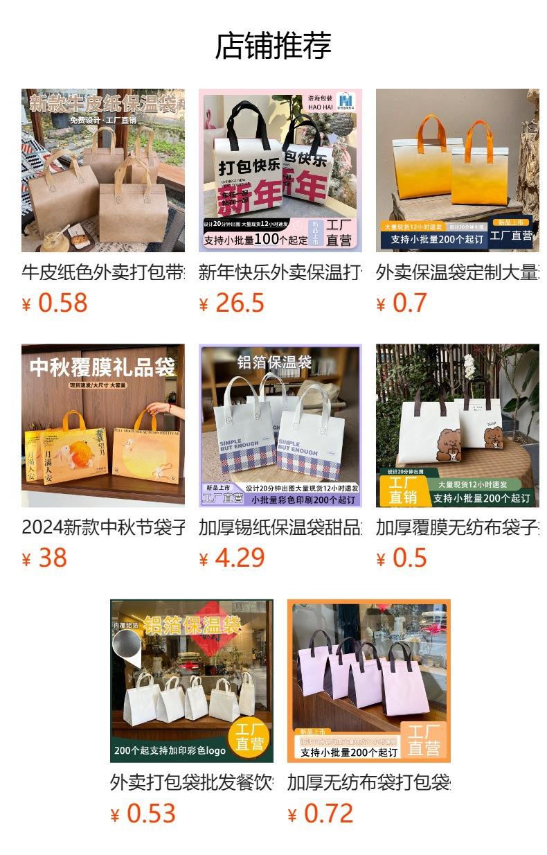 Bolsa de tela no tejida para comida para llevar, bolsa para barbacoa, bolsa aislante de aluminio, bolsa autosellante personalizada para comida para llevar.
