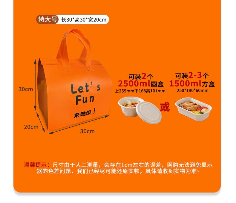 Come to eat; extra large size 30cm long, 30cm high, 30cm wide; coated non-woven insulation bag