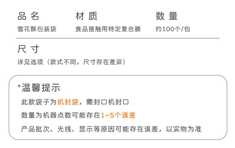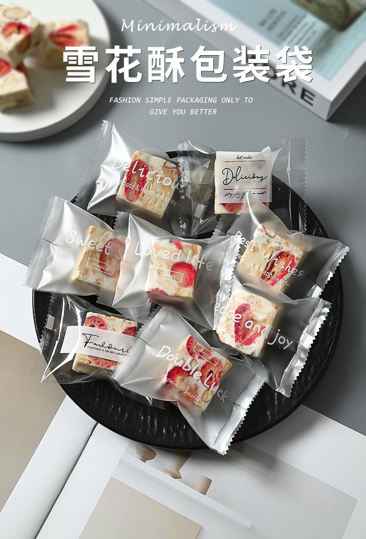 Bolsa de Embalaje Transparente Esmerilada Ins Viento Copo de Nieve Inglés Crujiente Bolsa para Galletas de Azufaifo con Leche Bolsa Sellada a Máquina para Turrón Bolsa para Dulces