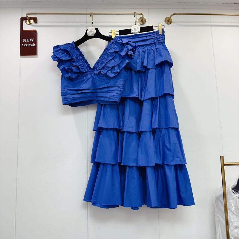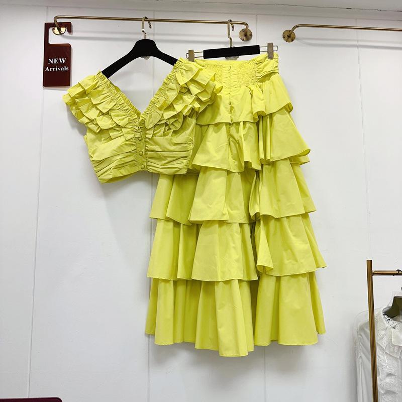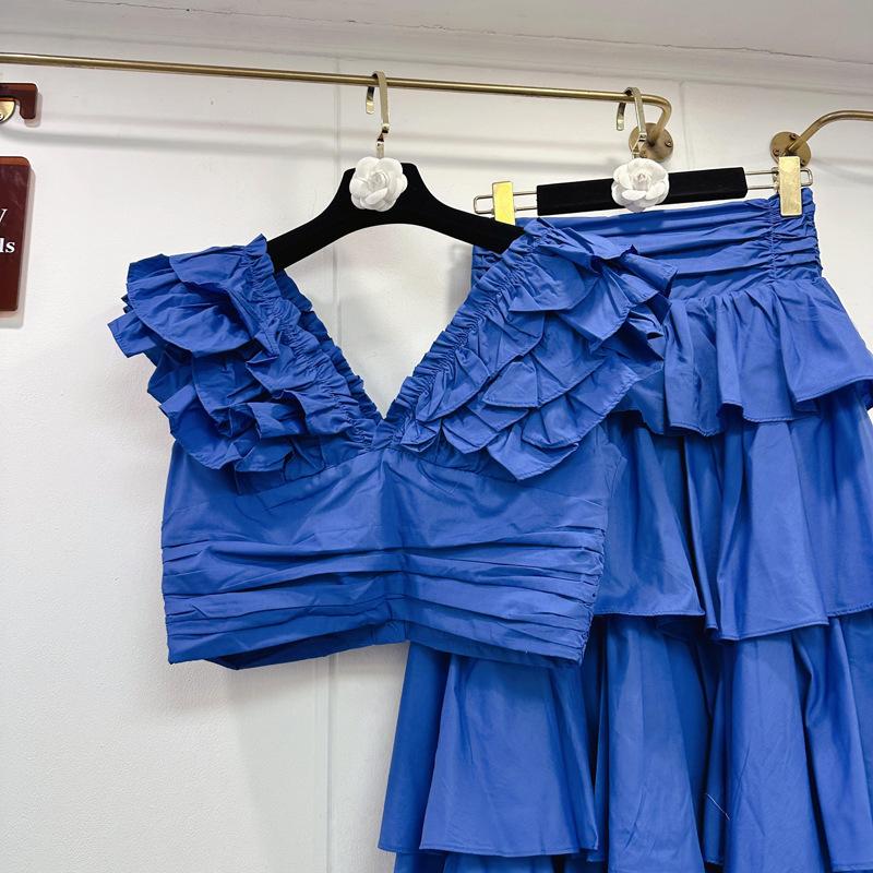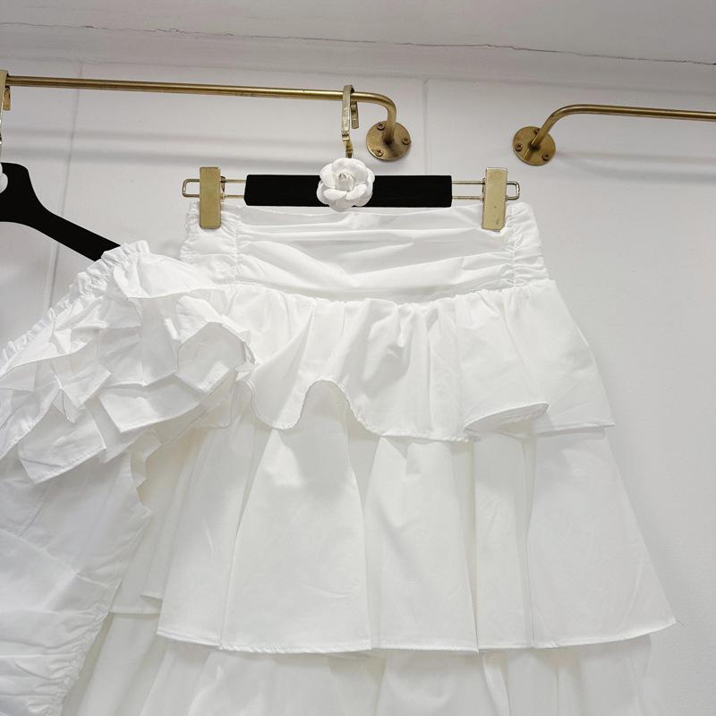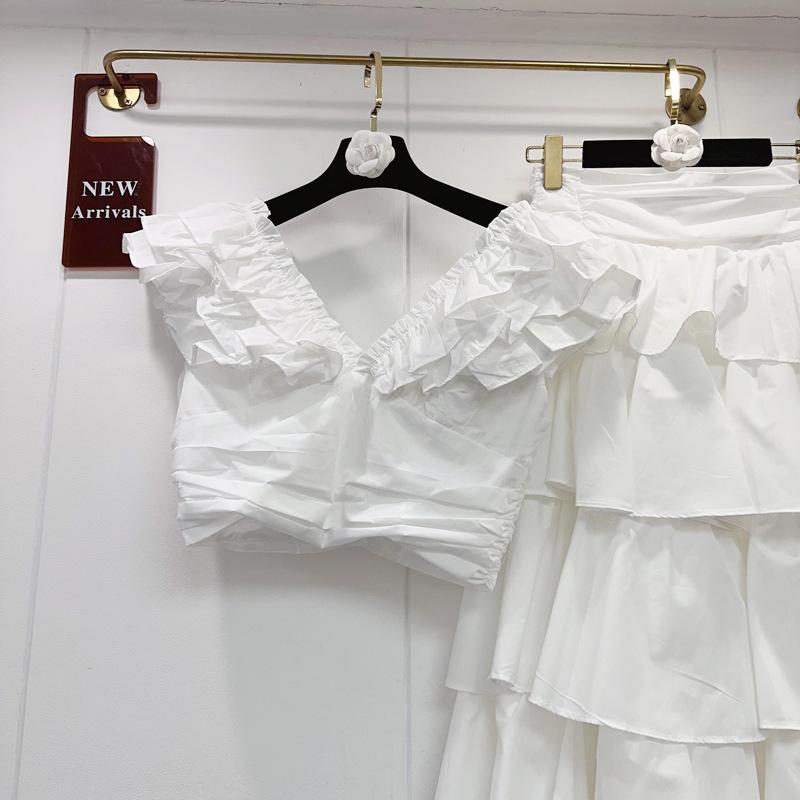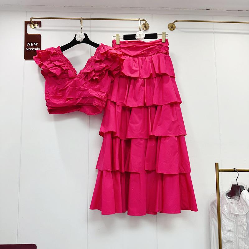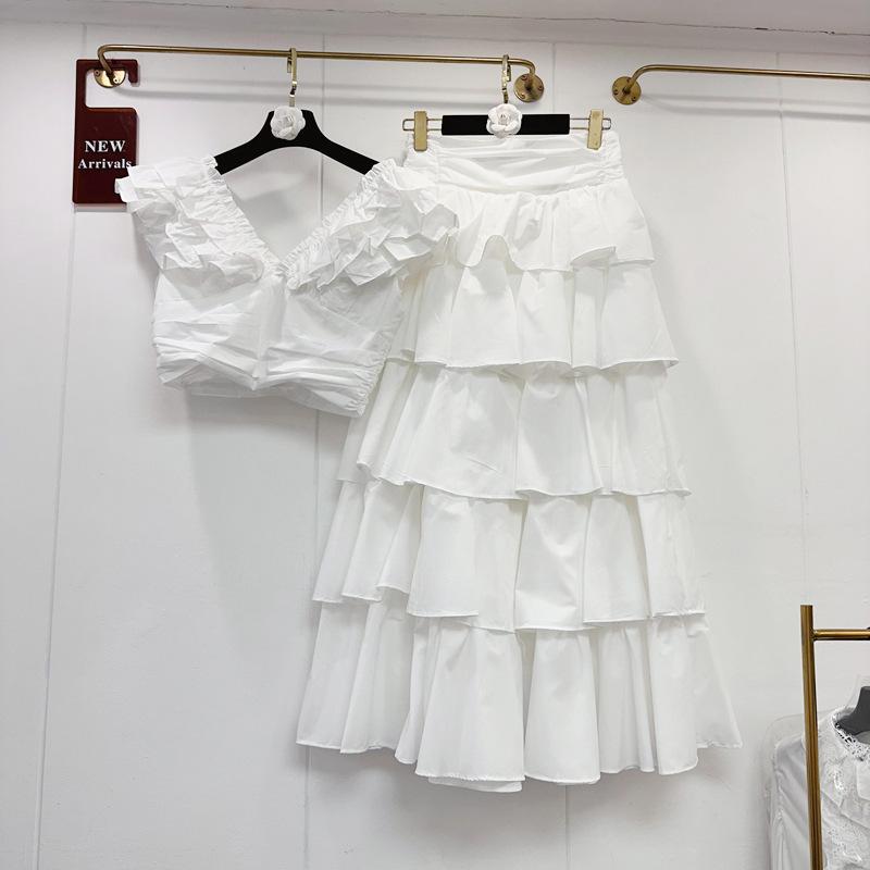 2025 Primavera y Verano Nuevo Estilo Suave Elegante Encaje Top Corto Vestido de Capas de Pastel Cintura Alta Traje de Moda