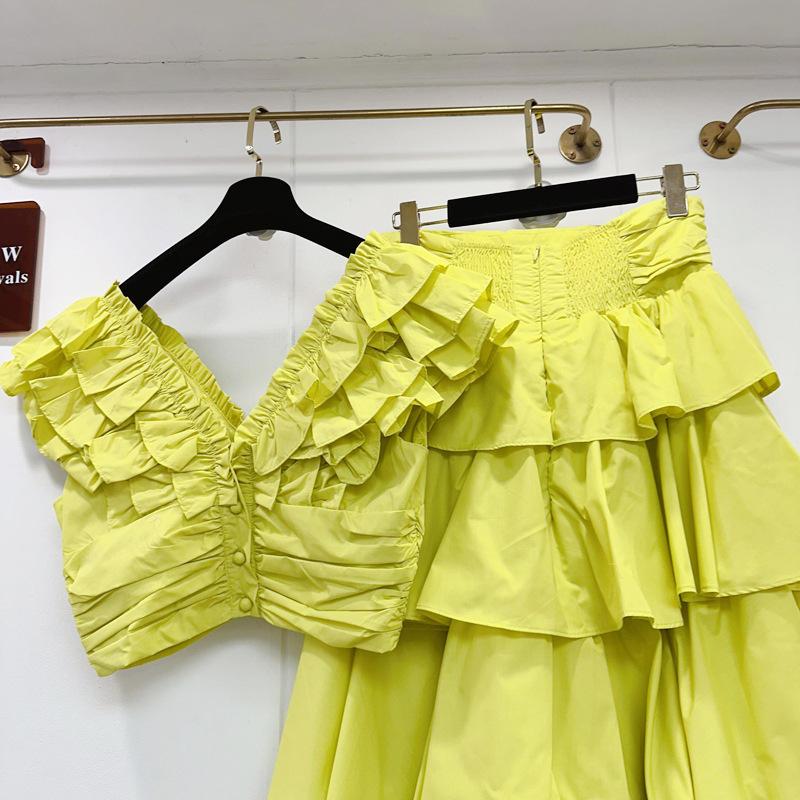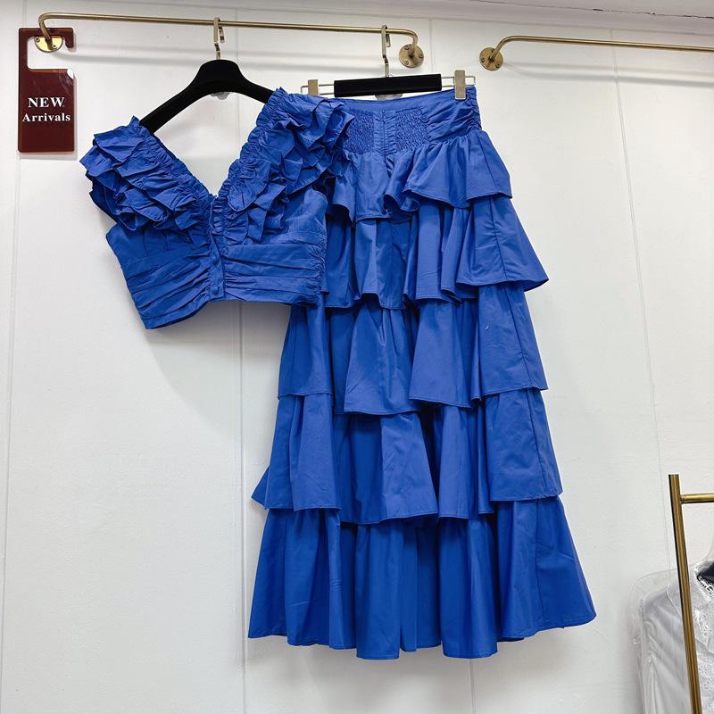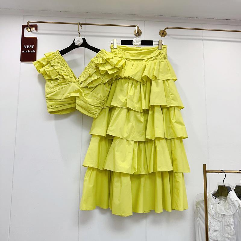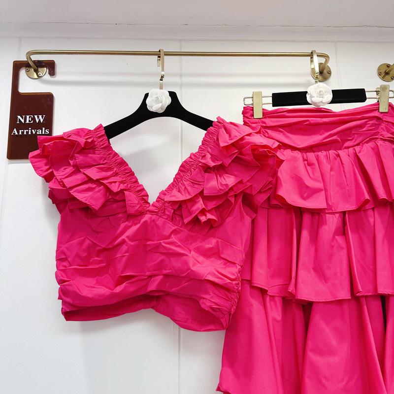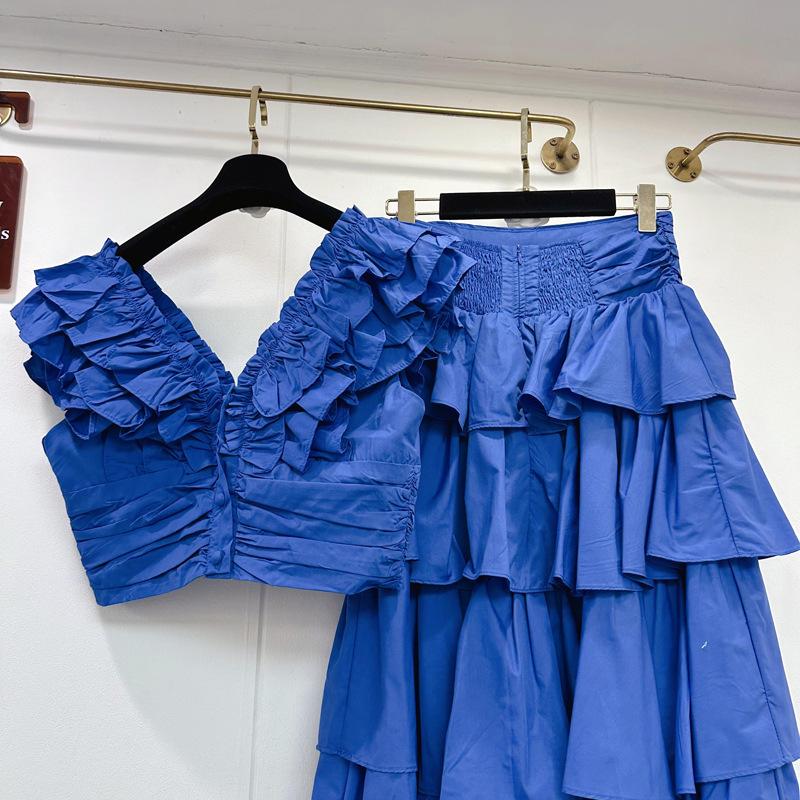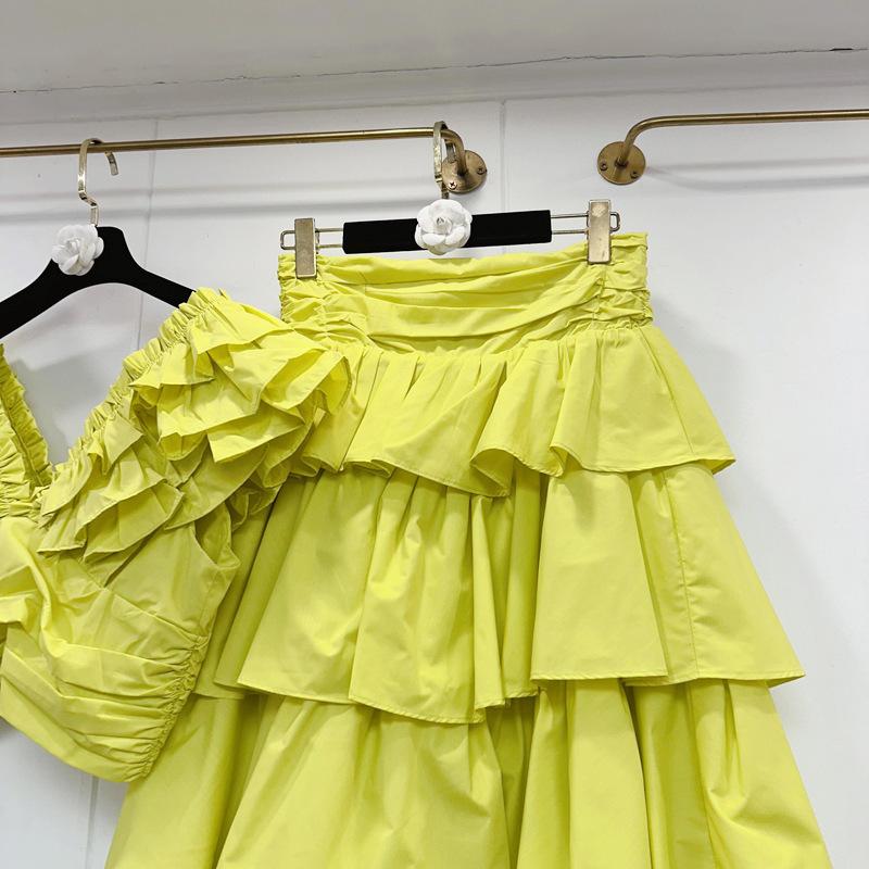 2025 Primavera y Verano Nuevo Estilo Suave Elegante Encaje Top Corto Vestido de Capas de Pastel Cintura Alta Traje de Moda