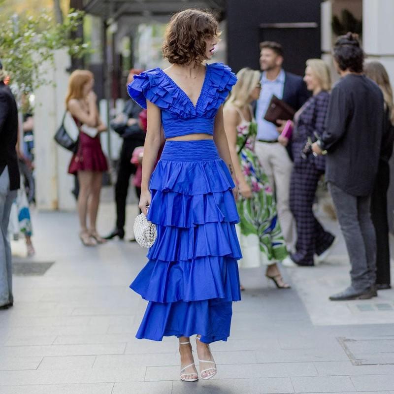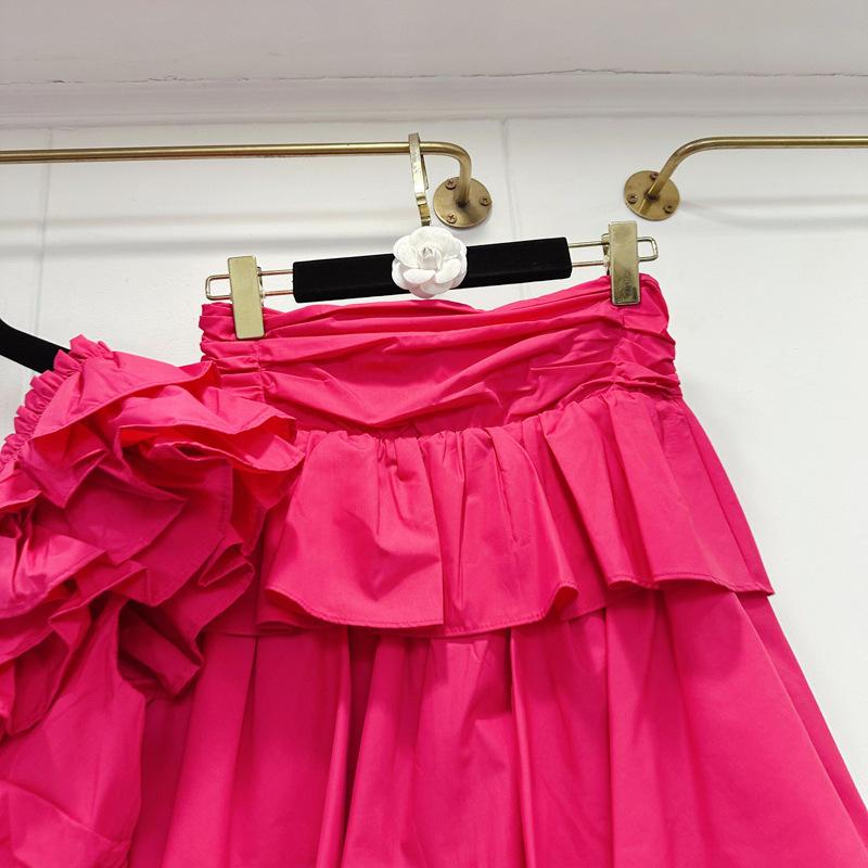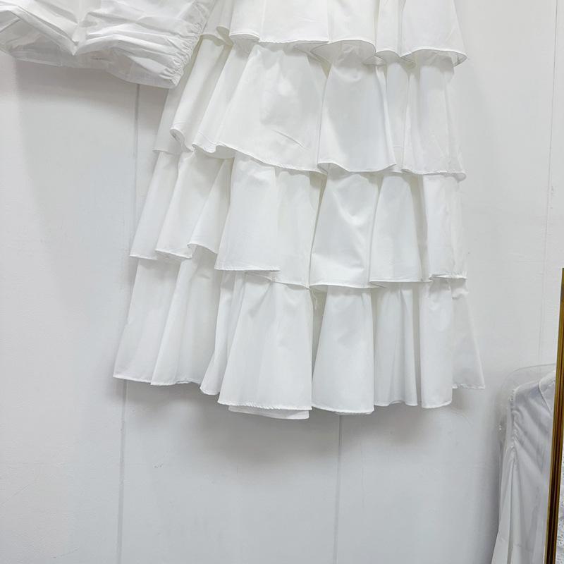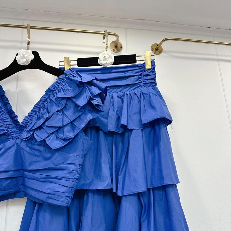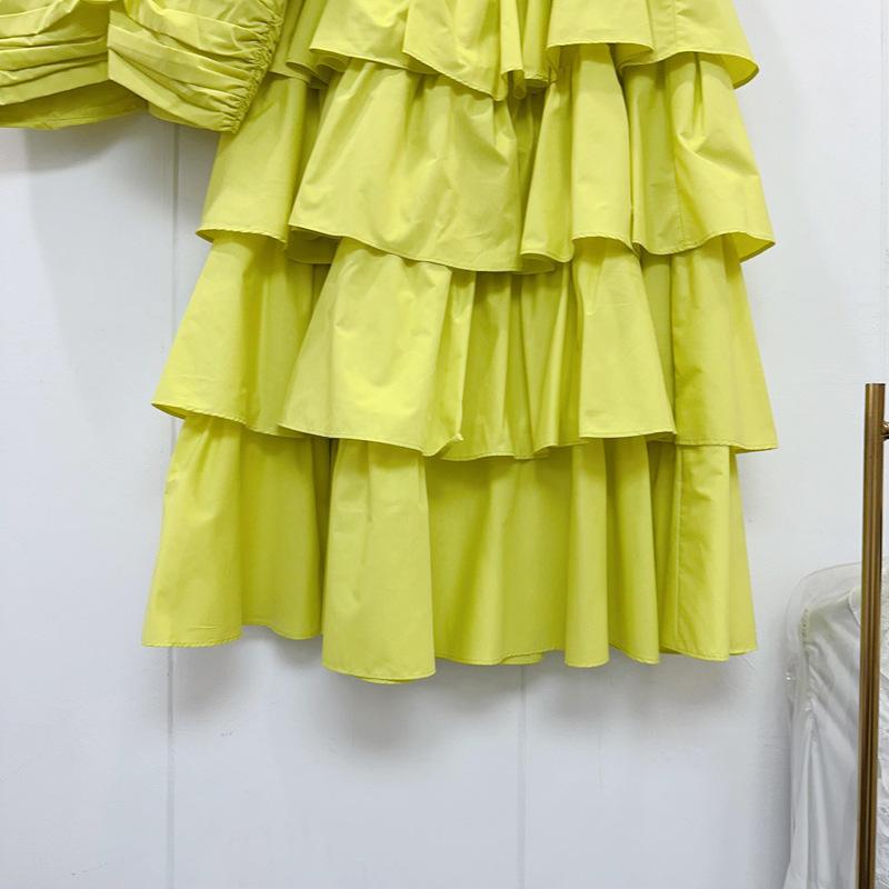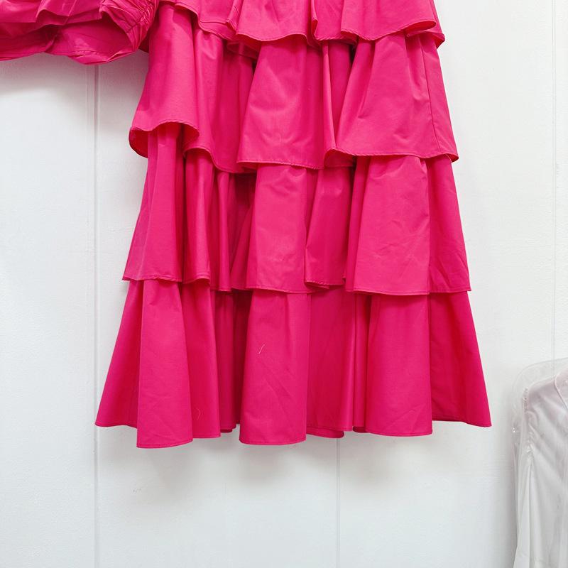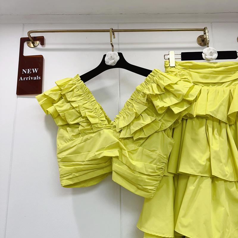 2025 Primavera y Verano Nuevo Estilo Suave Elegante Encaje Top Corto Vestido de Capas de Pastel Cintura Alta Traje de Moda