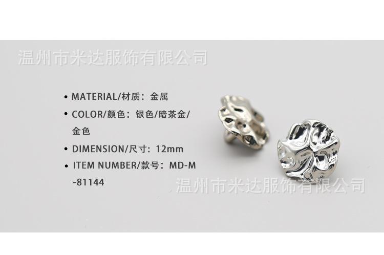 Botón de metal irregular para abrigo, cortavientos, hebilla decorativa, chaqueta de traje, cuello de camisa, exquisito botón combinable.