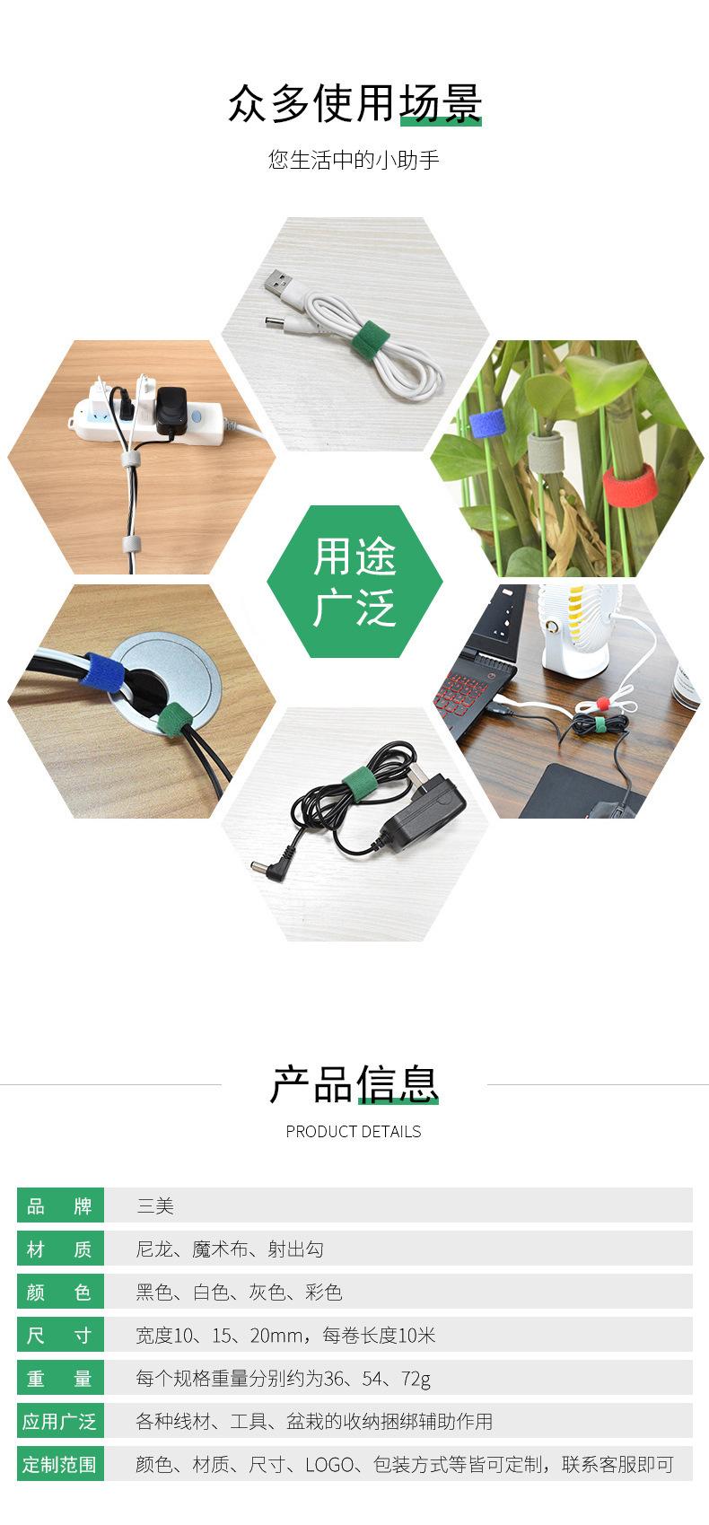 Brida de nailon con velcro para cables, espalda con espalda, para plantas verdes, para almacenamiento de cables de datos, artefacto de acabado, fijación de cables