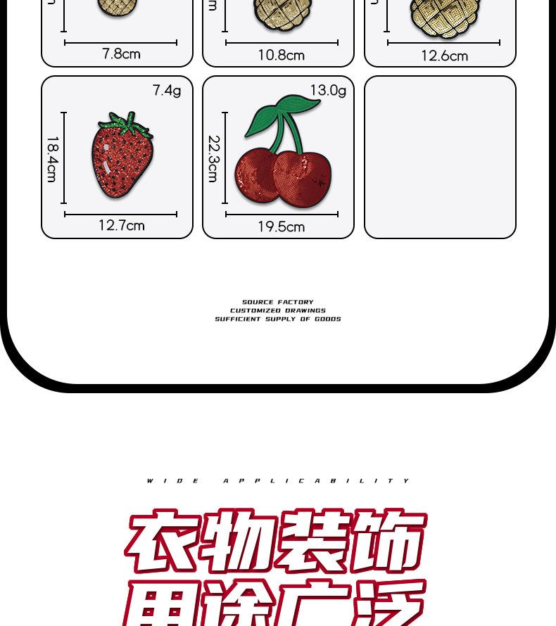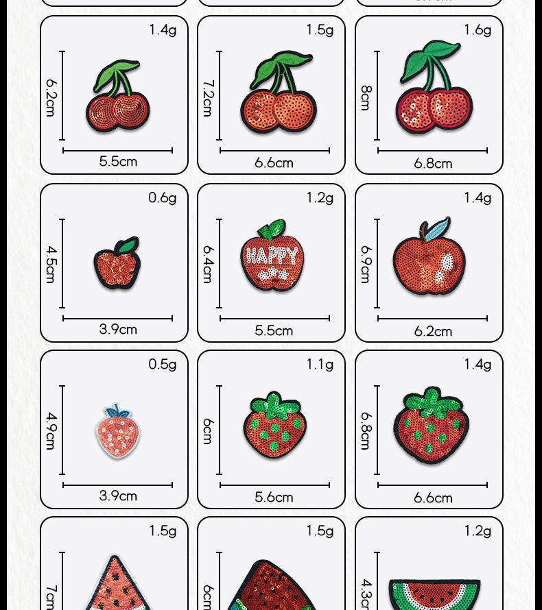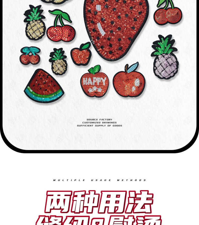 Parche Bordado de Lentejuelas de Fruta de Dibujos Animados Fresa Piña Flor Parche Bordado Accesorios de Ropa