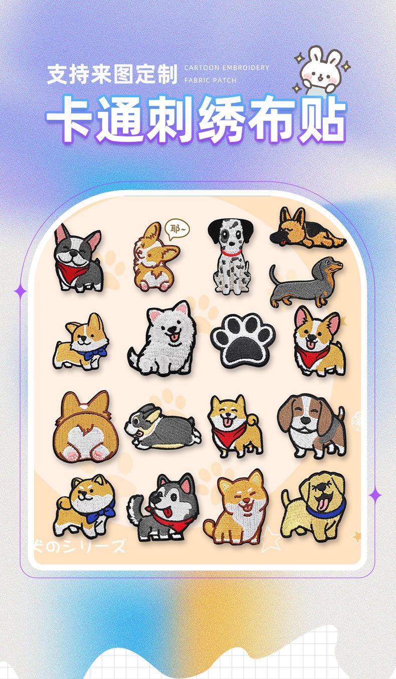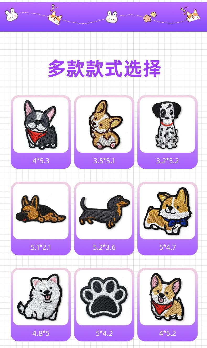 Pegatina de tela bordada para computadora, diseño de cachorro de dibujos animados, bordado, para bolso, ropa, parche decorativo.
