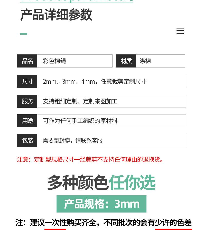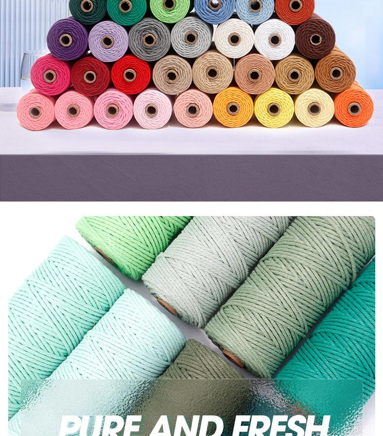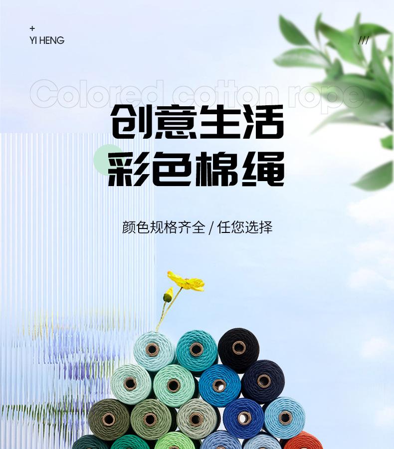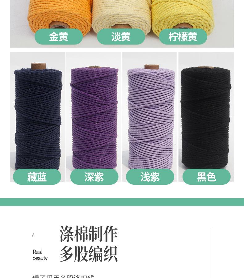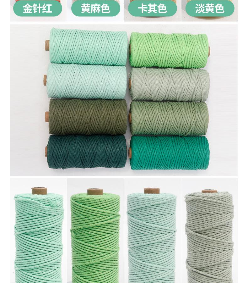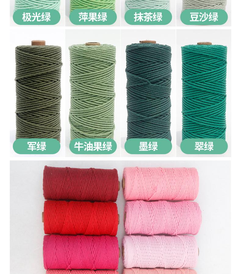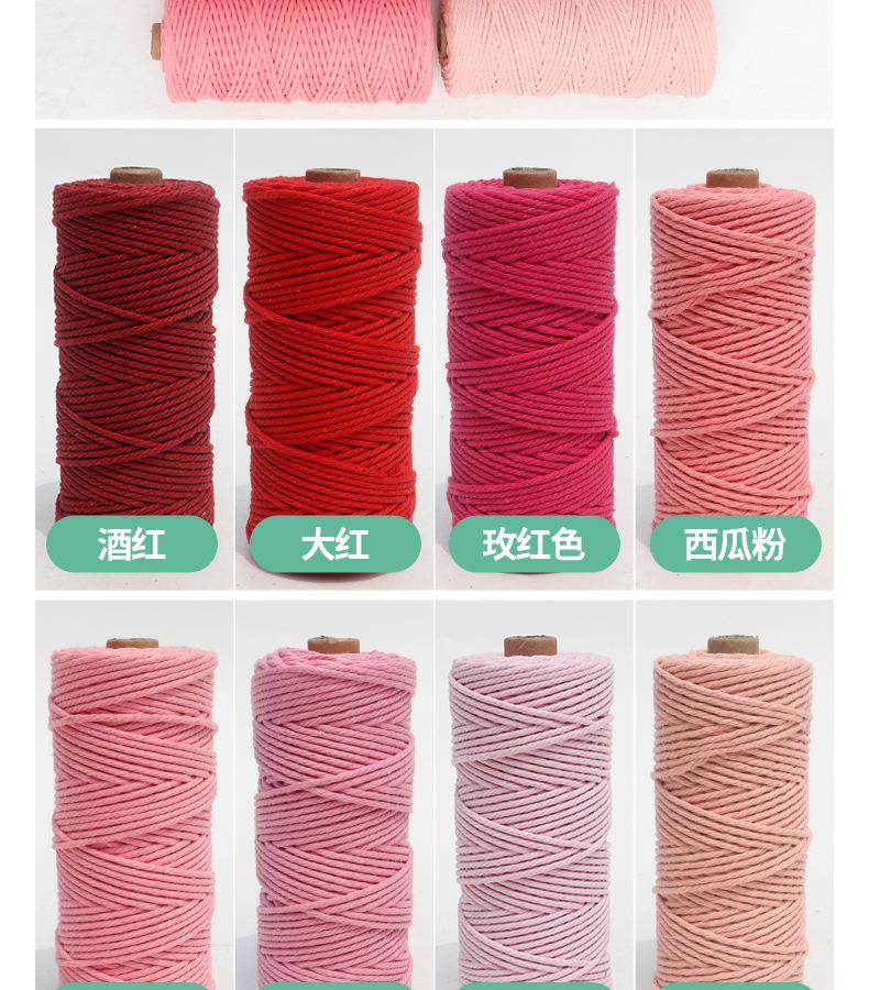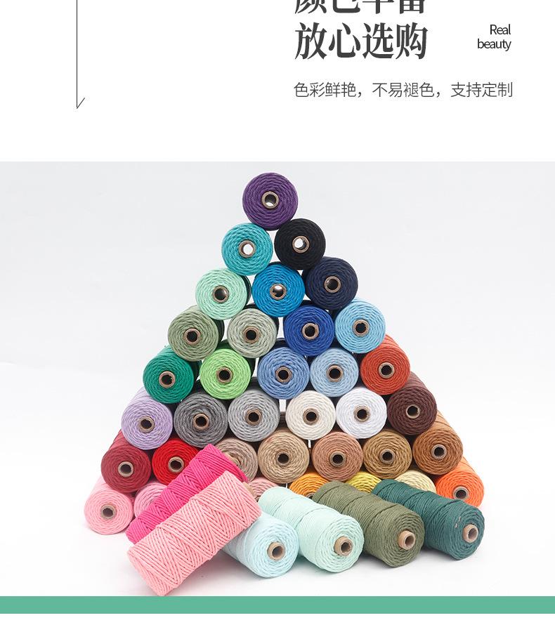 Cuerda de algodón trenzada de 3 mm, colorida, multifilamento, para atar, decorativa, hecha a mano, para hacer tapices y bolsas de malla trenzada.