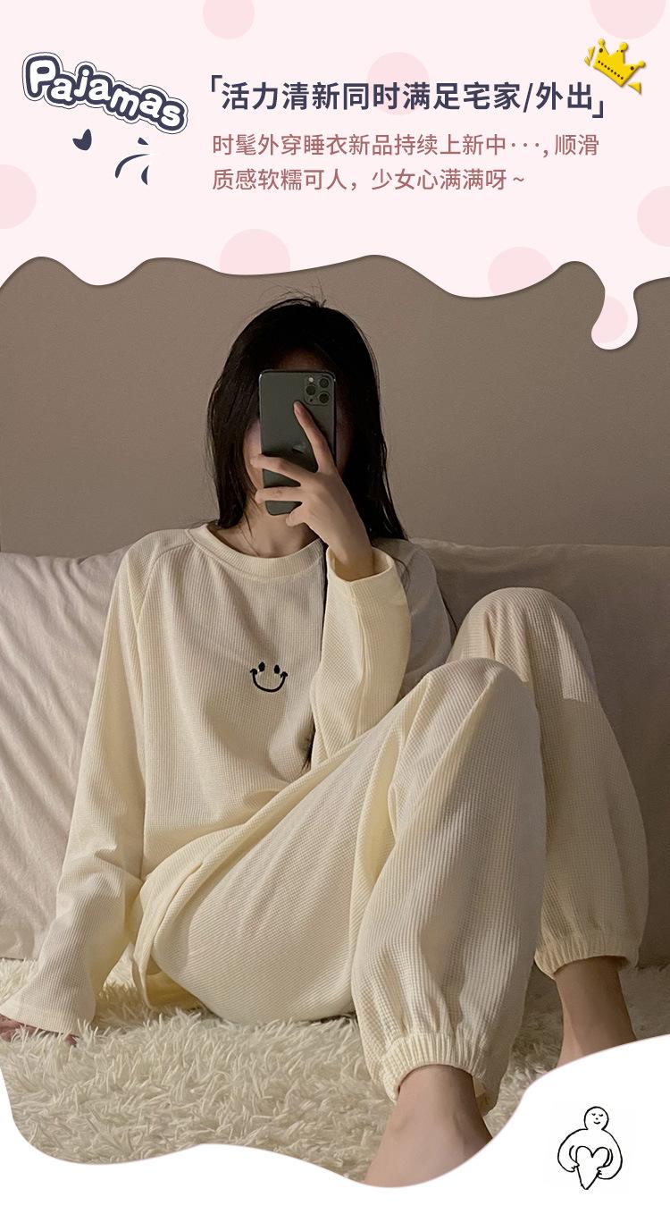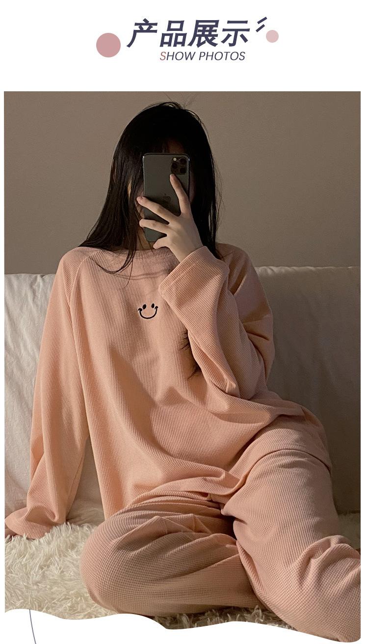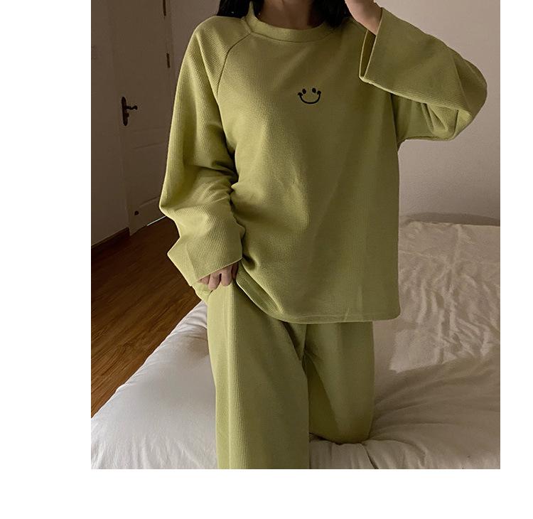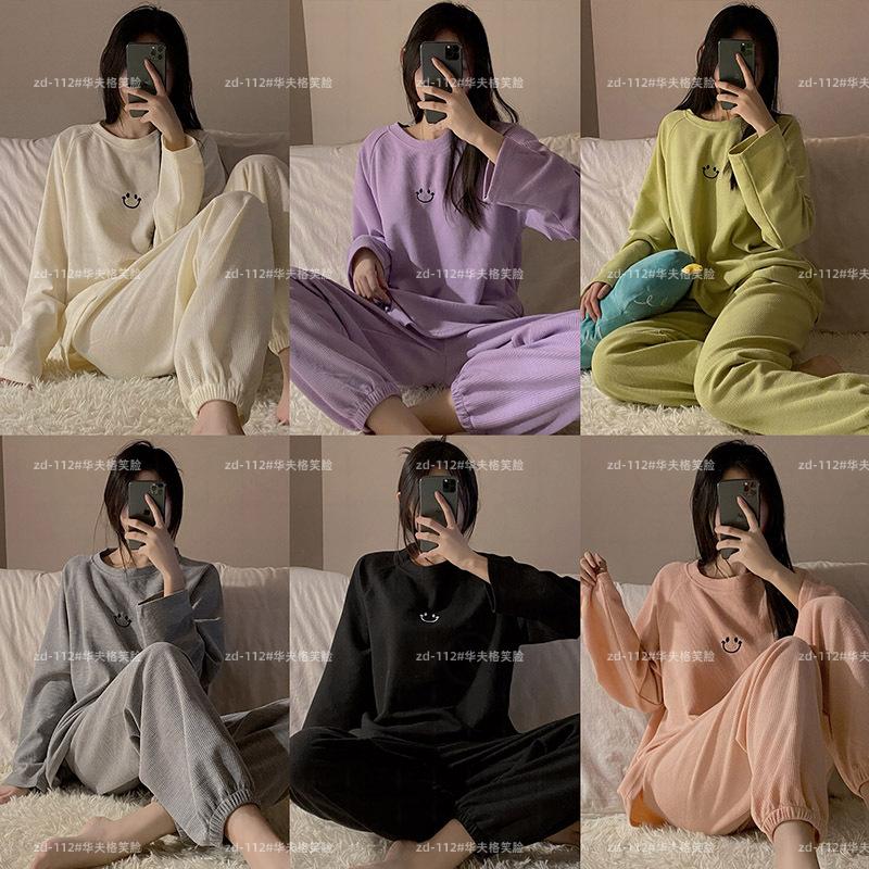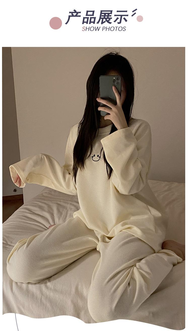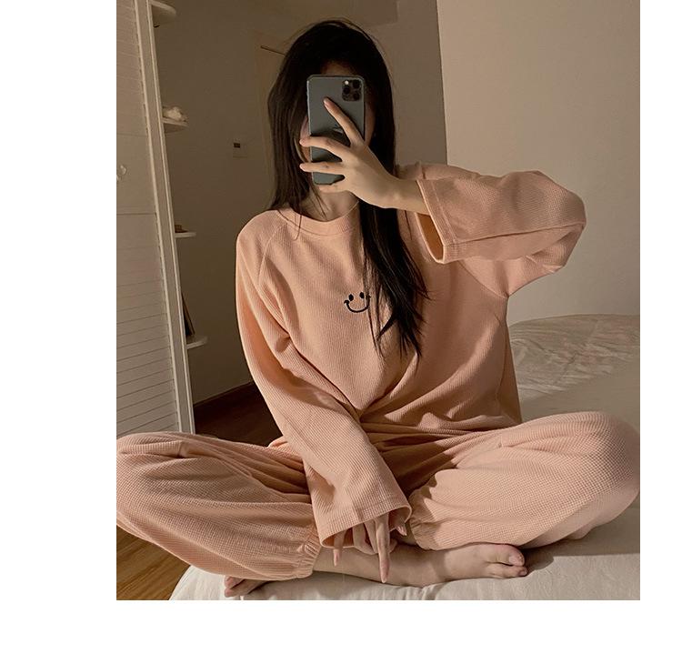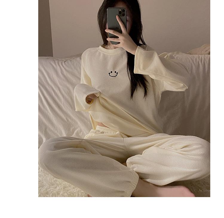 Pijamas de gofre Smiley para mujer, ropa deportiva de manga larga para el hogar, primavera, otoño e invierno, 2023