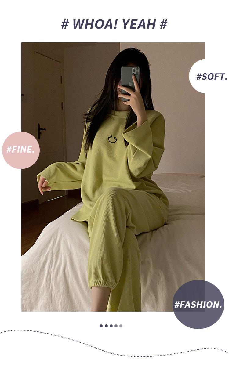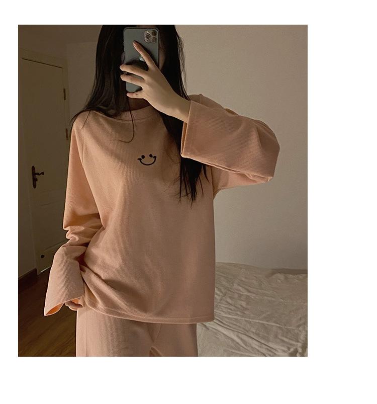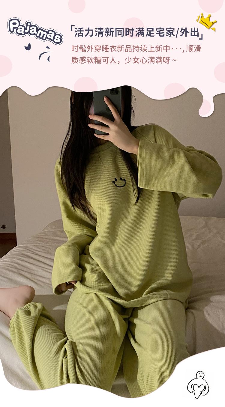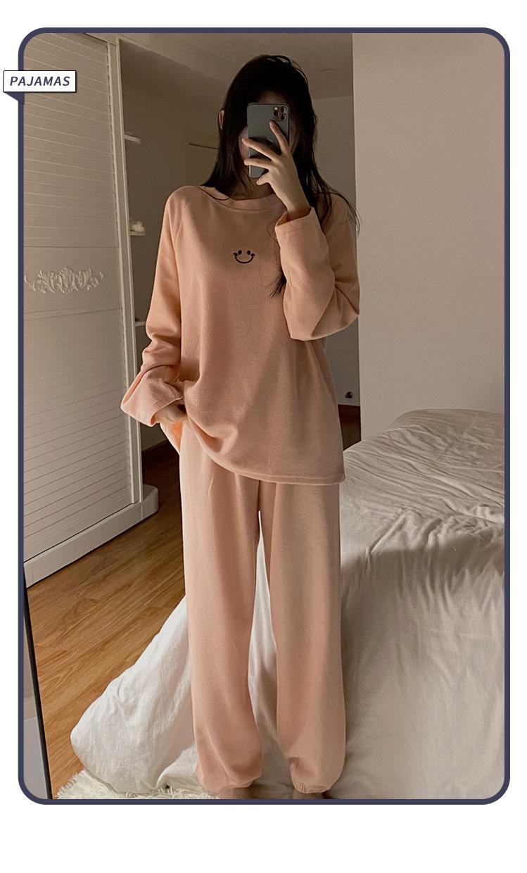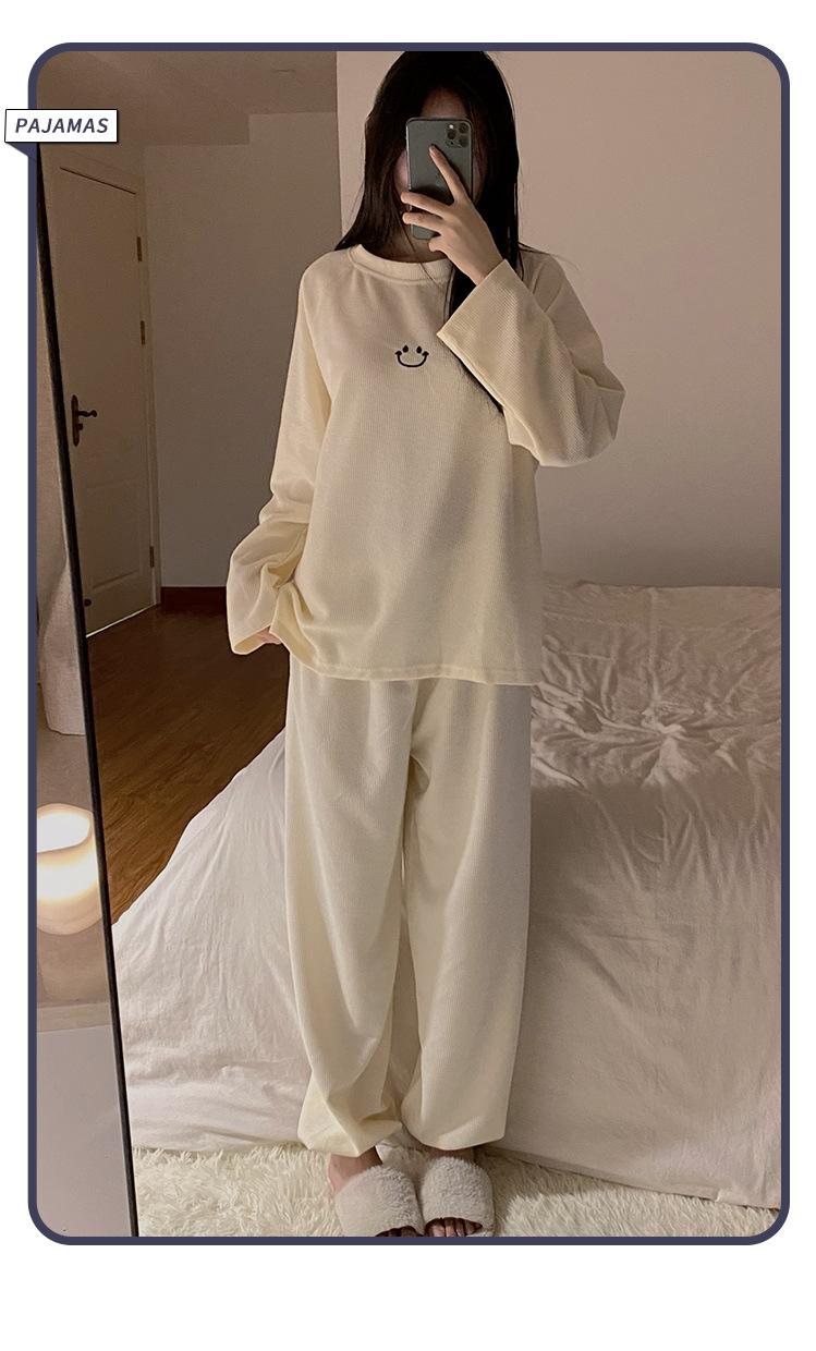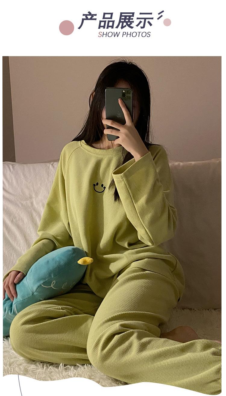 Pijamas de gofre Smiley para mujer, ropa deportiva de manga larga para el hogar, primavera, otoño e invierno, 2023