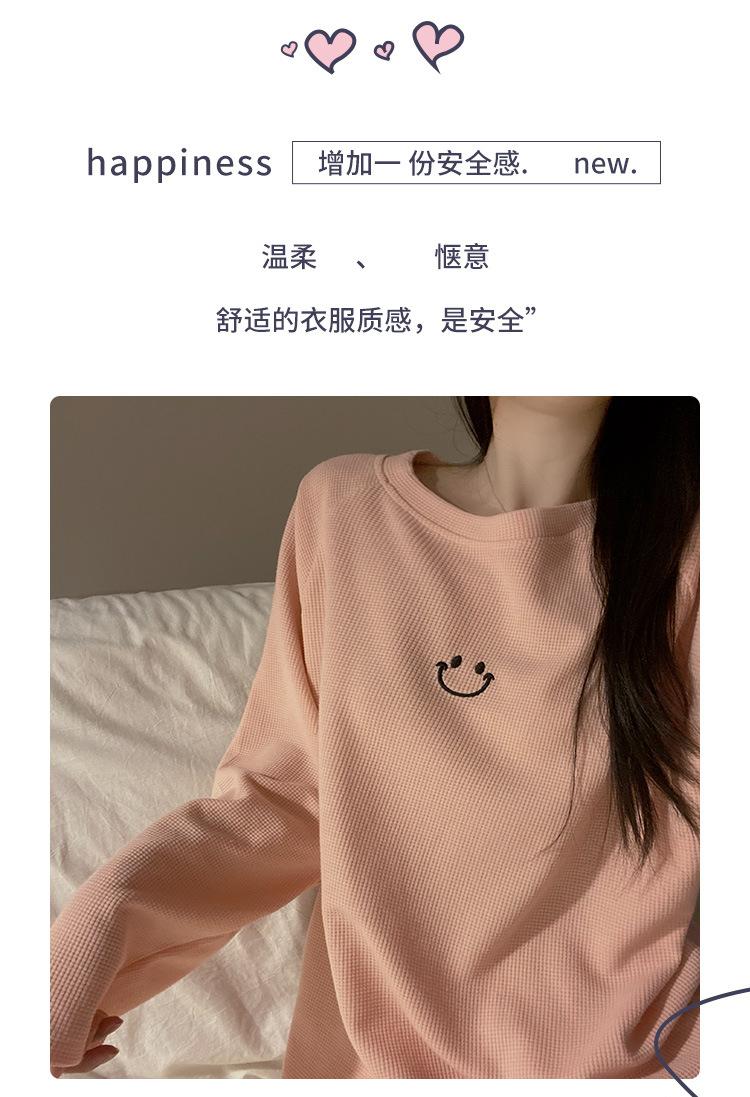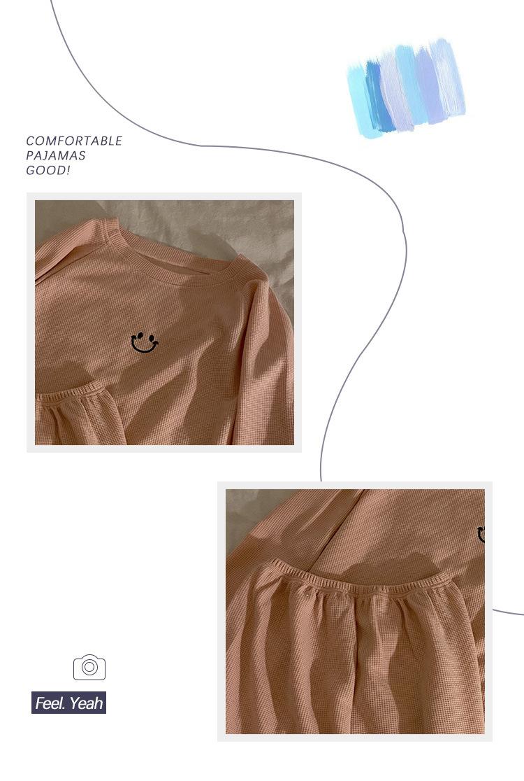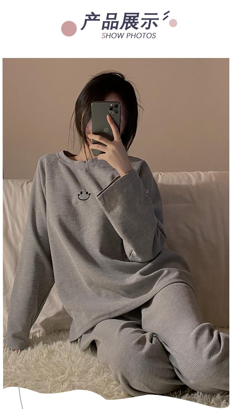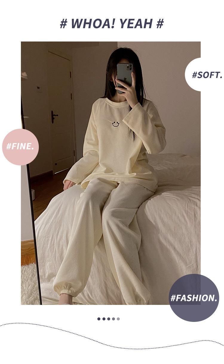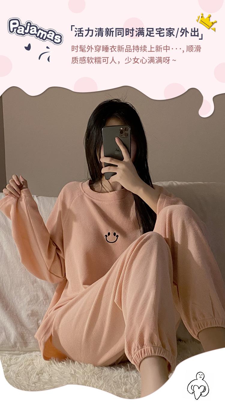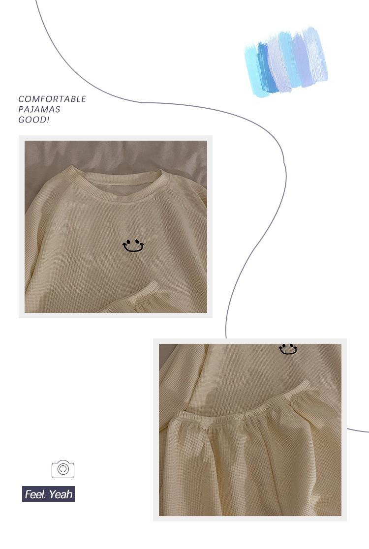 Pijamas de gofre Smiley para mujer, ropa deportiva de manga larga para el hogar, primavera, otoño e invierno, 2023