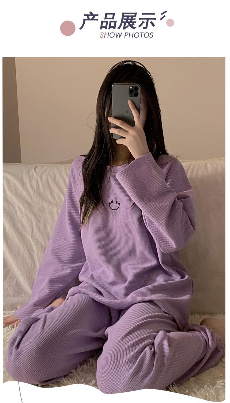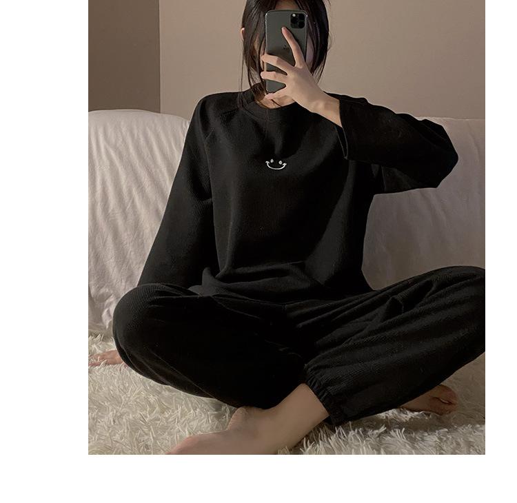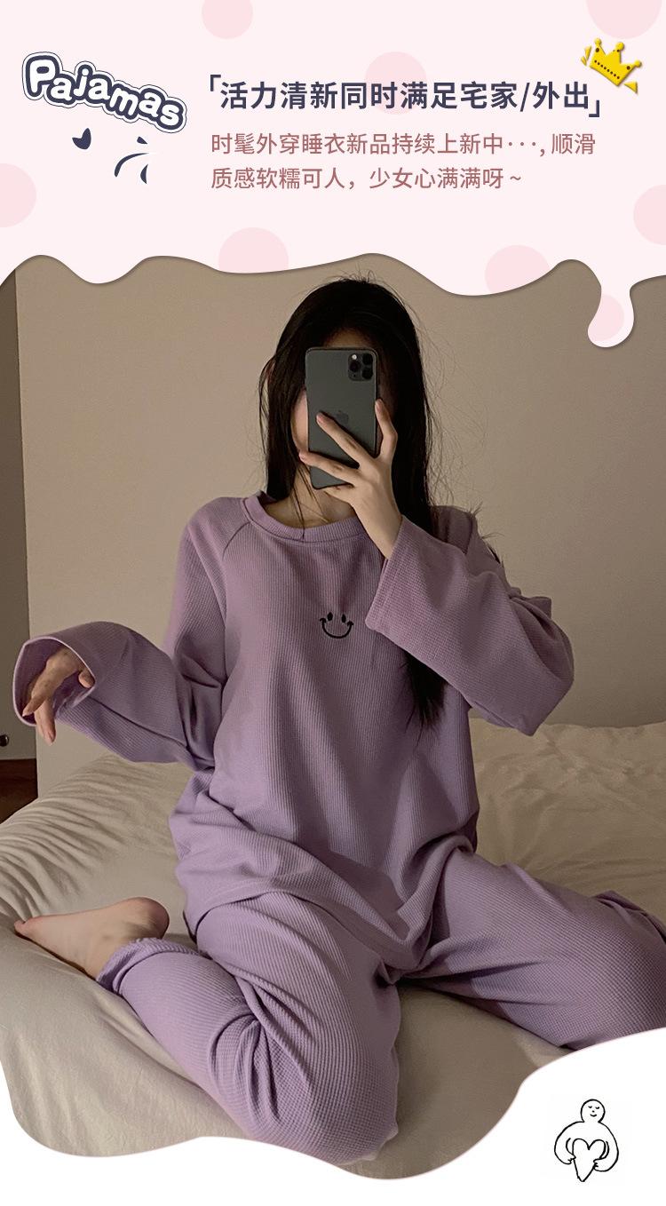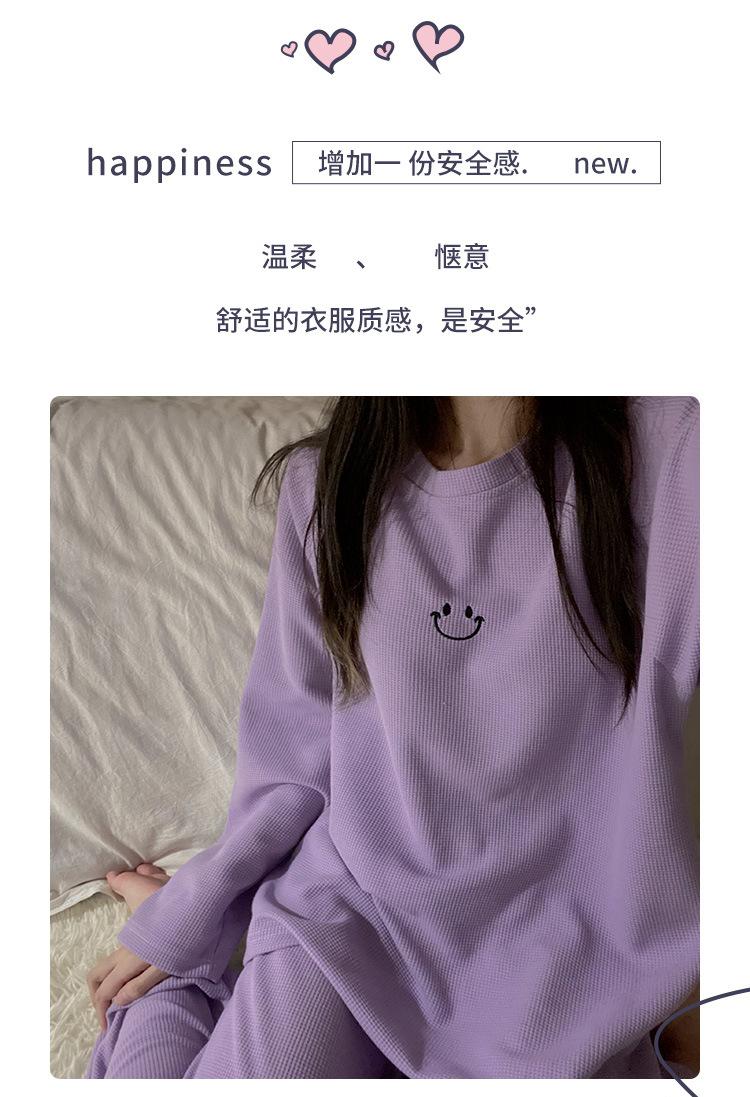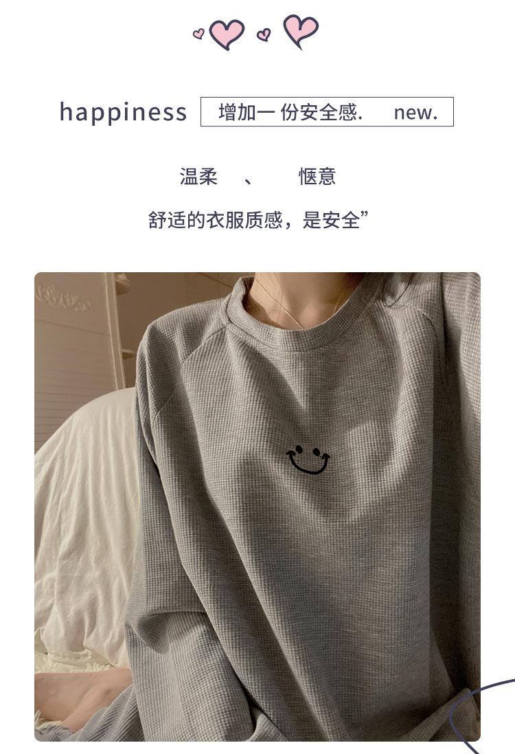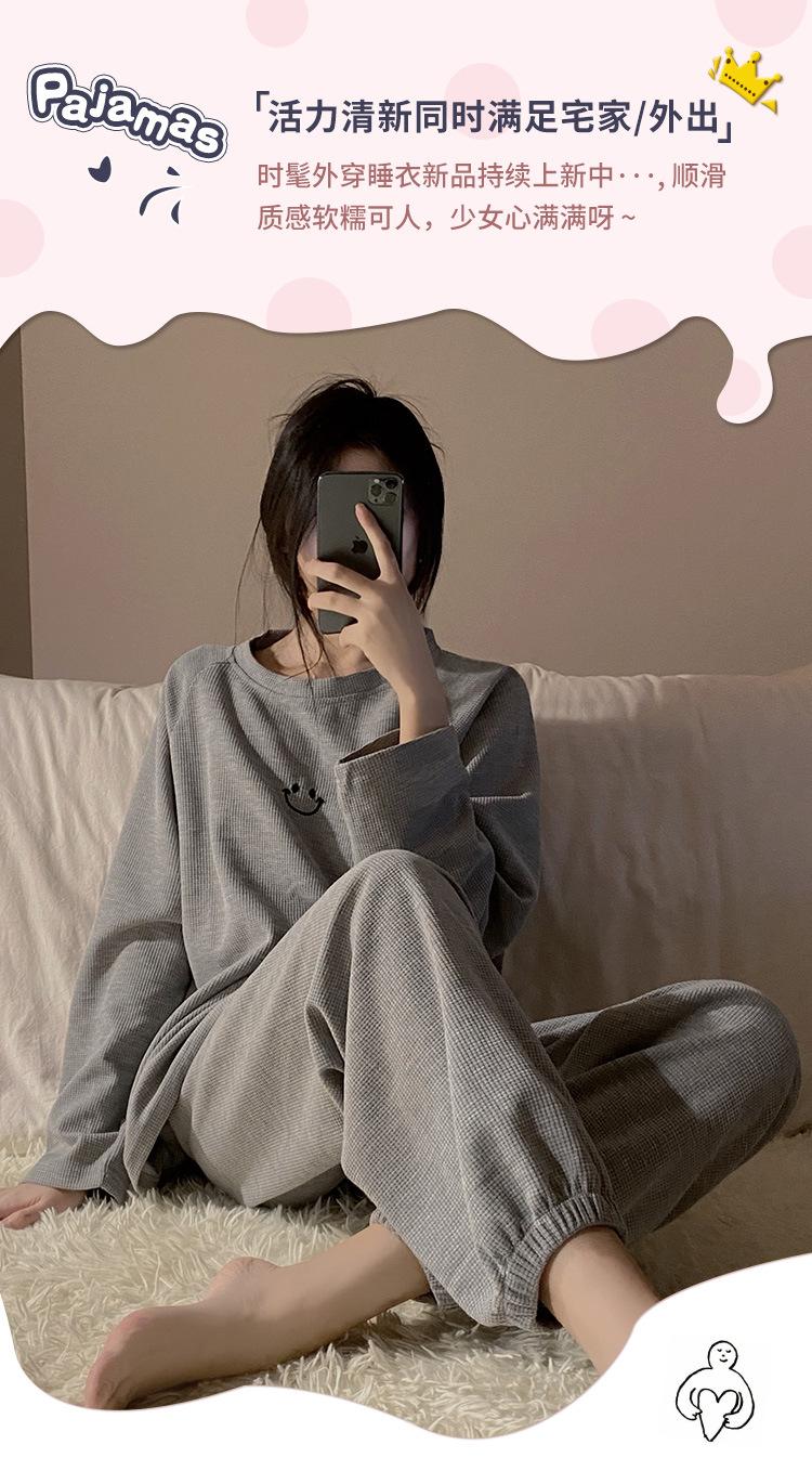Pijamas de gofre Smiley para mujer, ropa deportiva de manga larga para el hogar, primavera, otoño e invierno, 2023