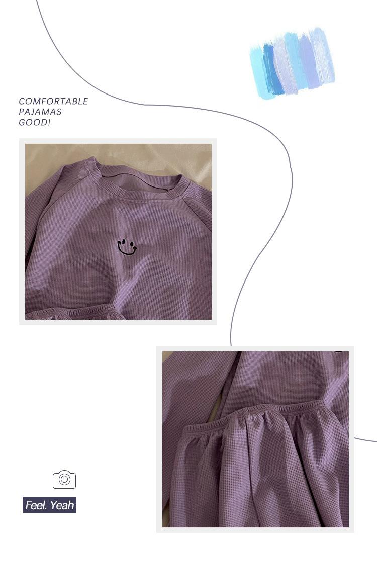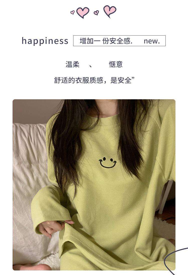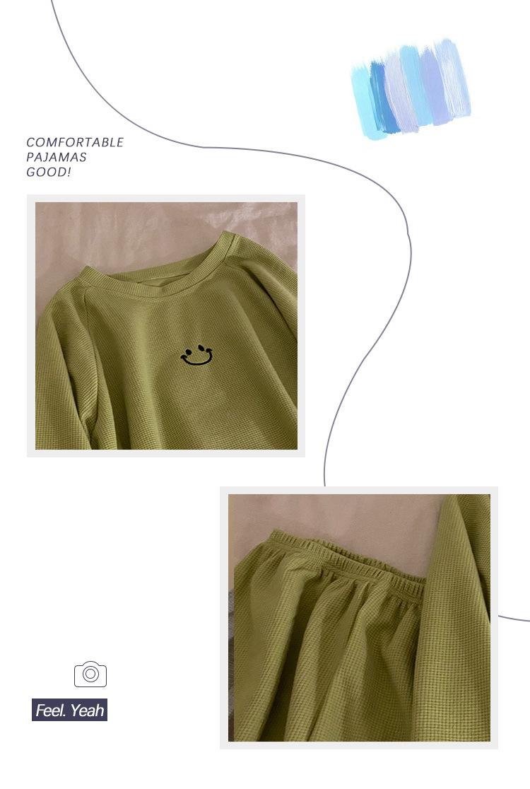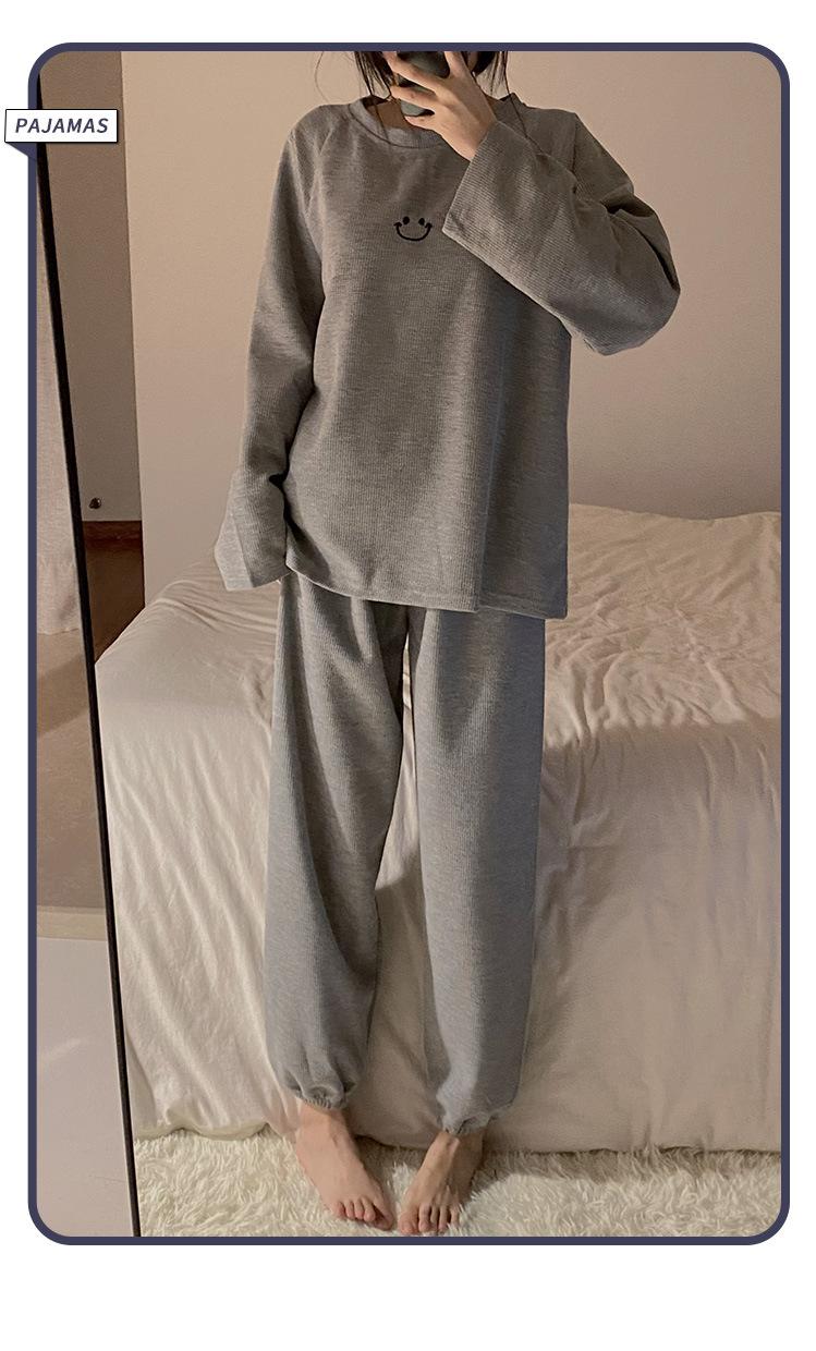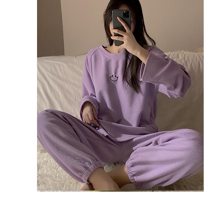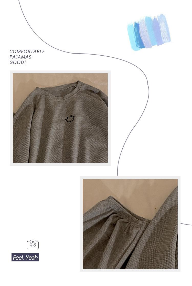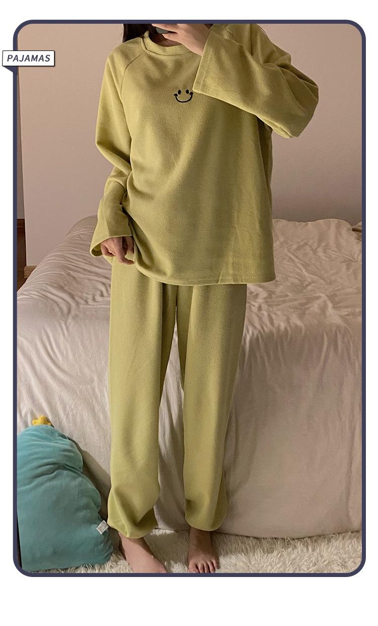 Pijamas de gofre Smiley para mujer, ropa deportiva de manga larga para el hogar, primavera, otoño e invierno, 2023