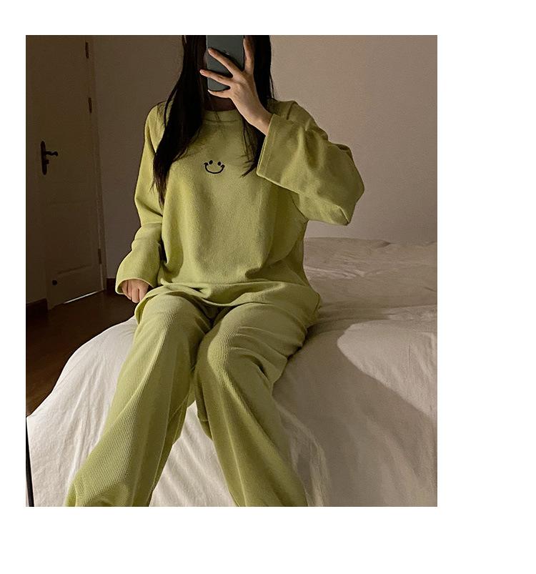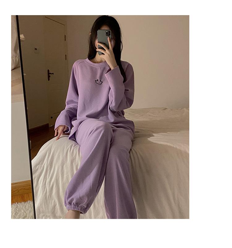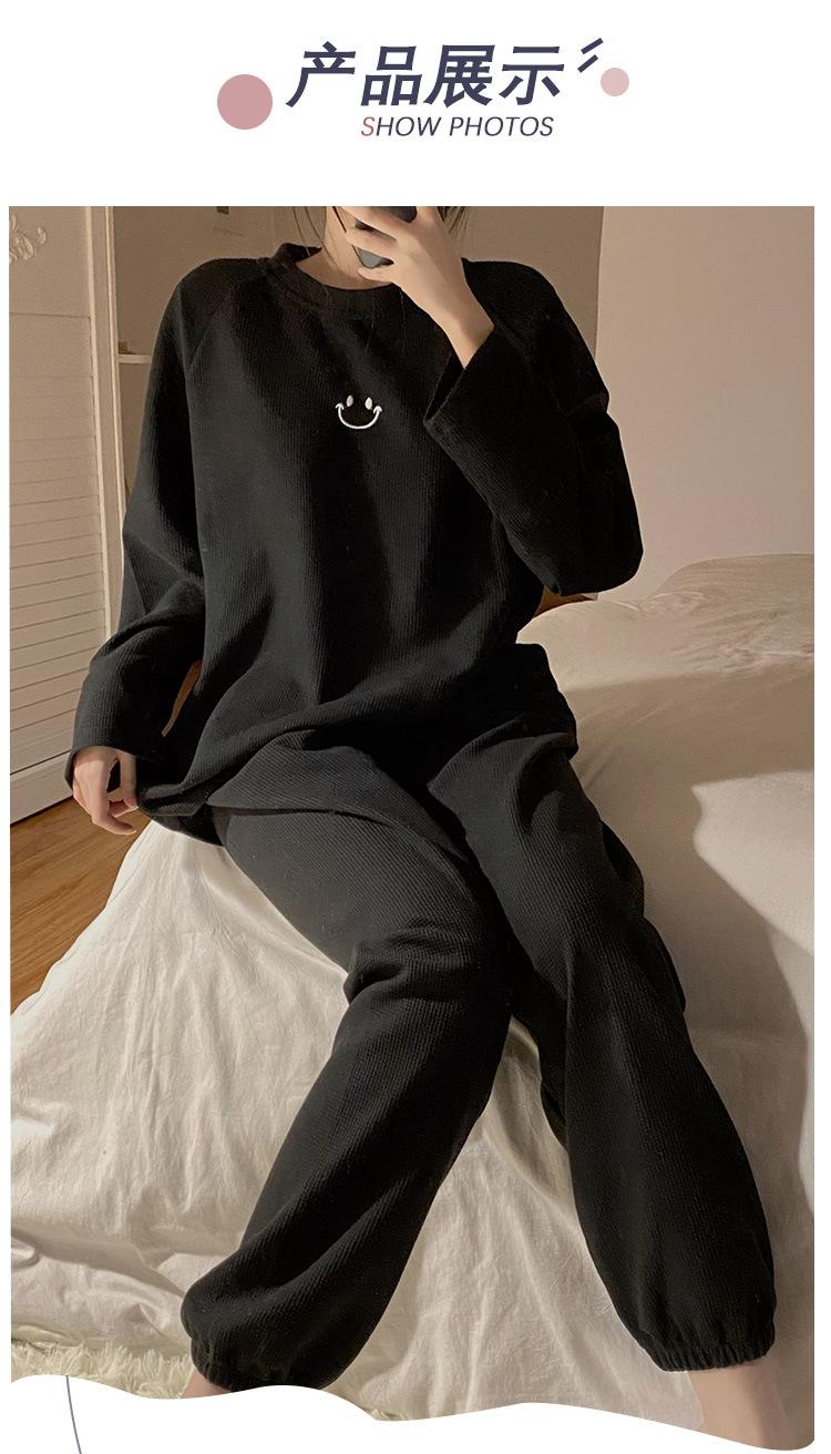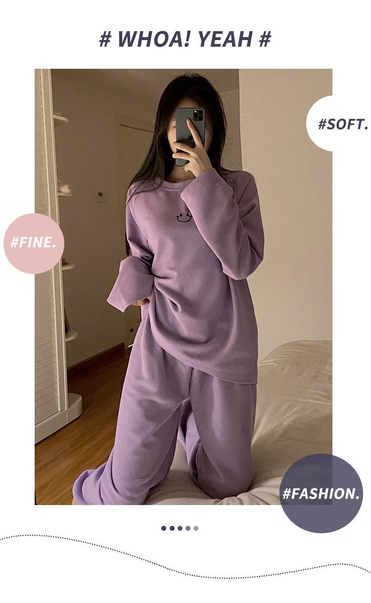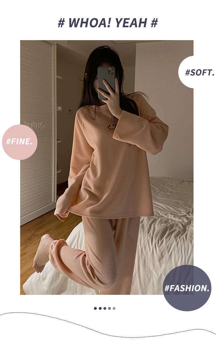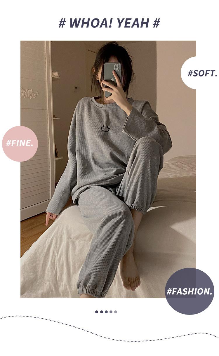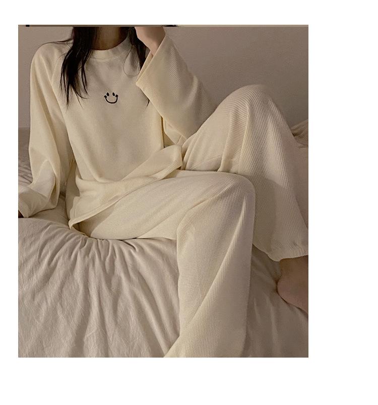 Pijamas de gofre Smiley para mujer, ropa deportiva de manga larga para el hogar, primavera, otoño e invierno, 2023