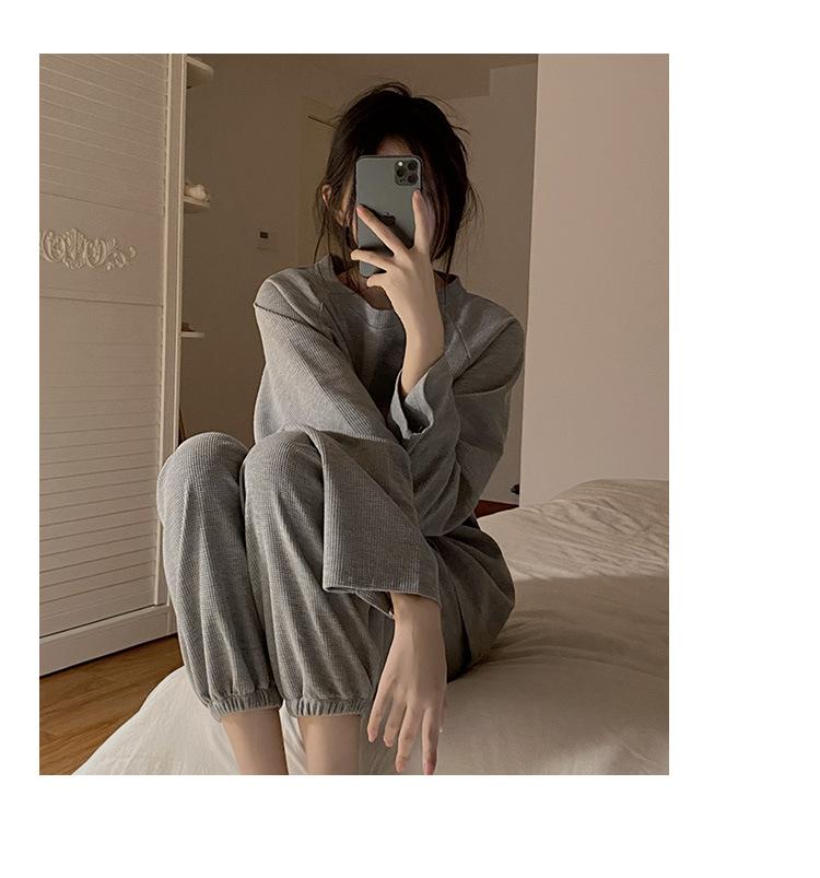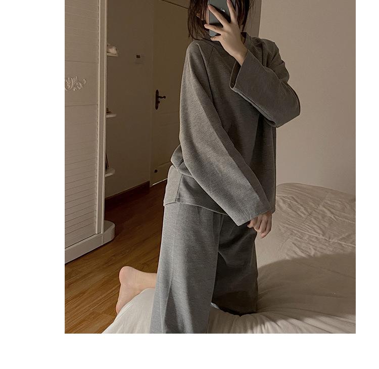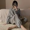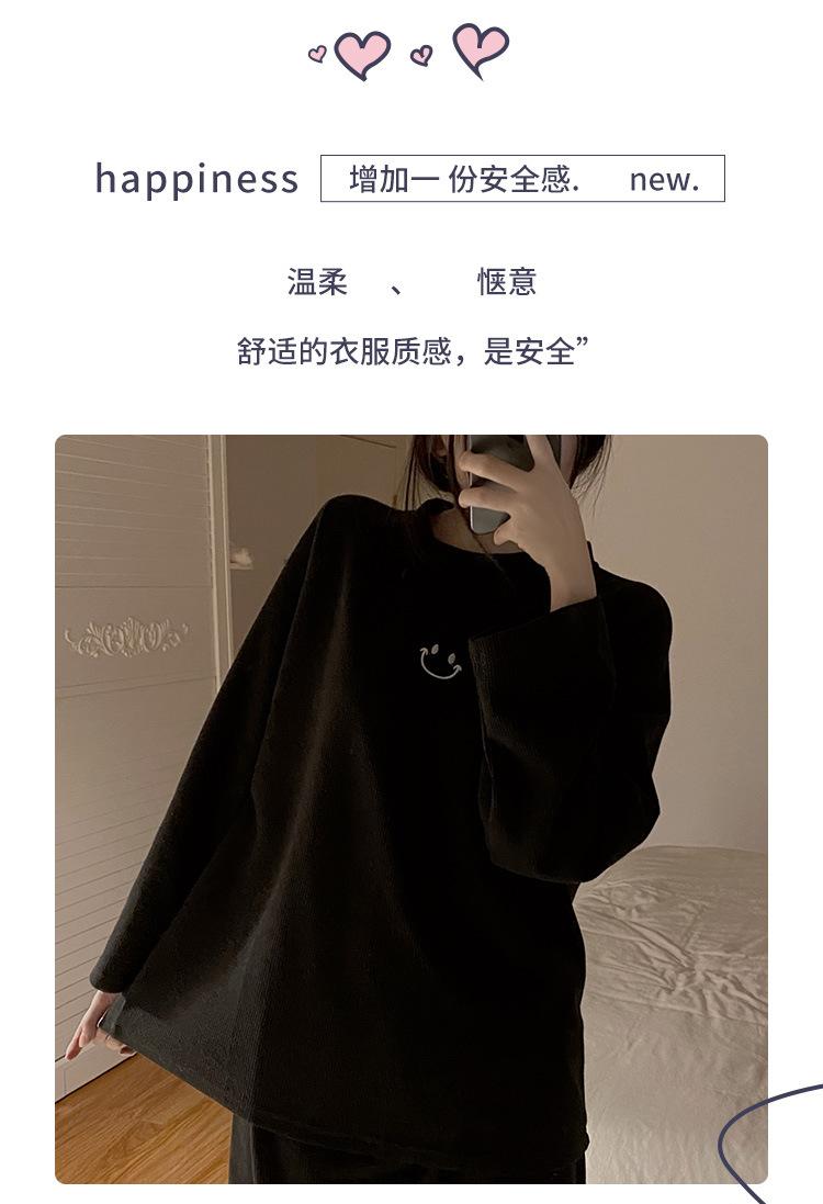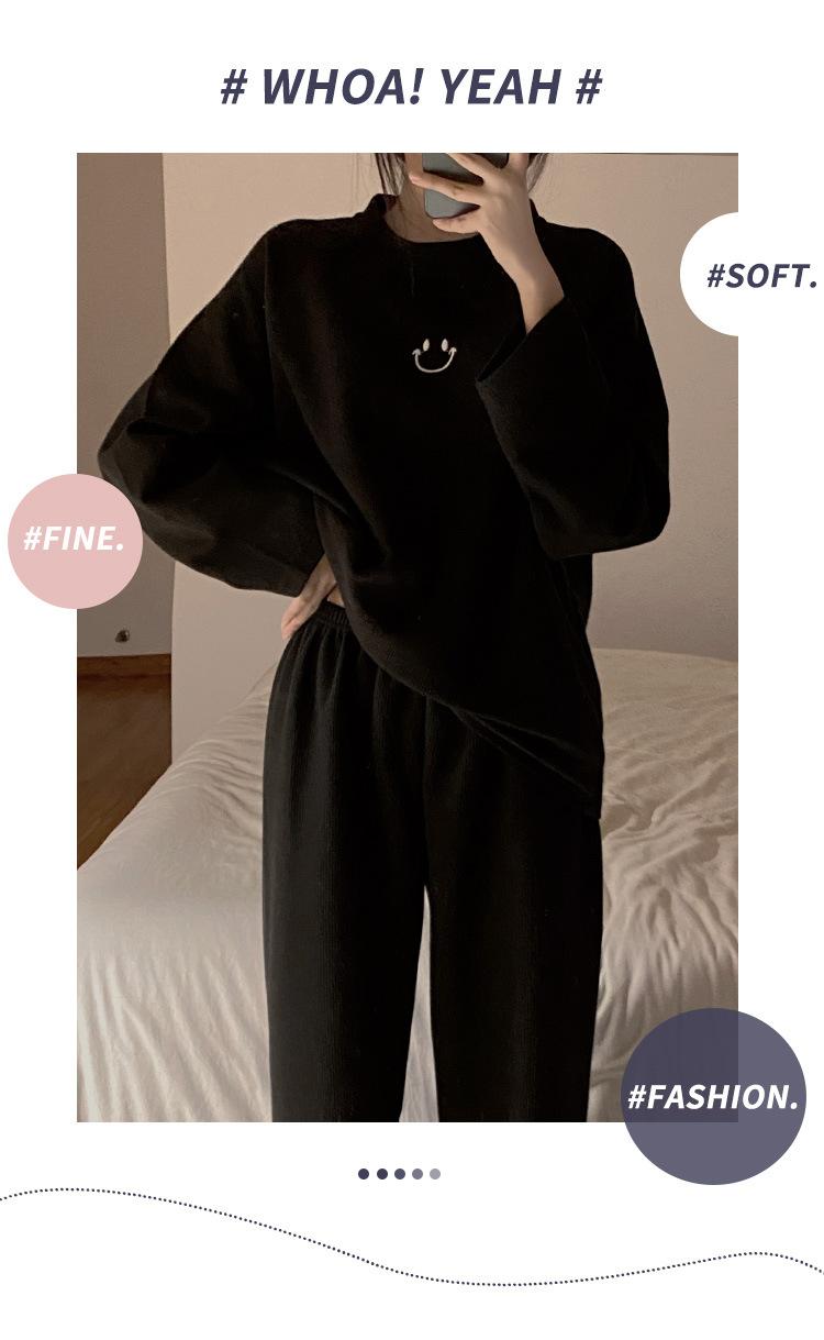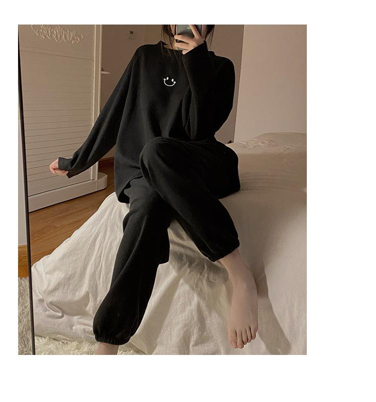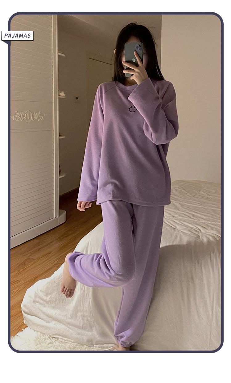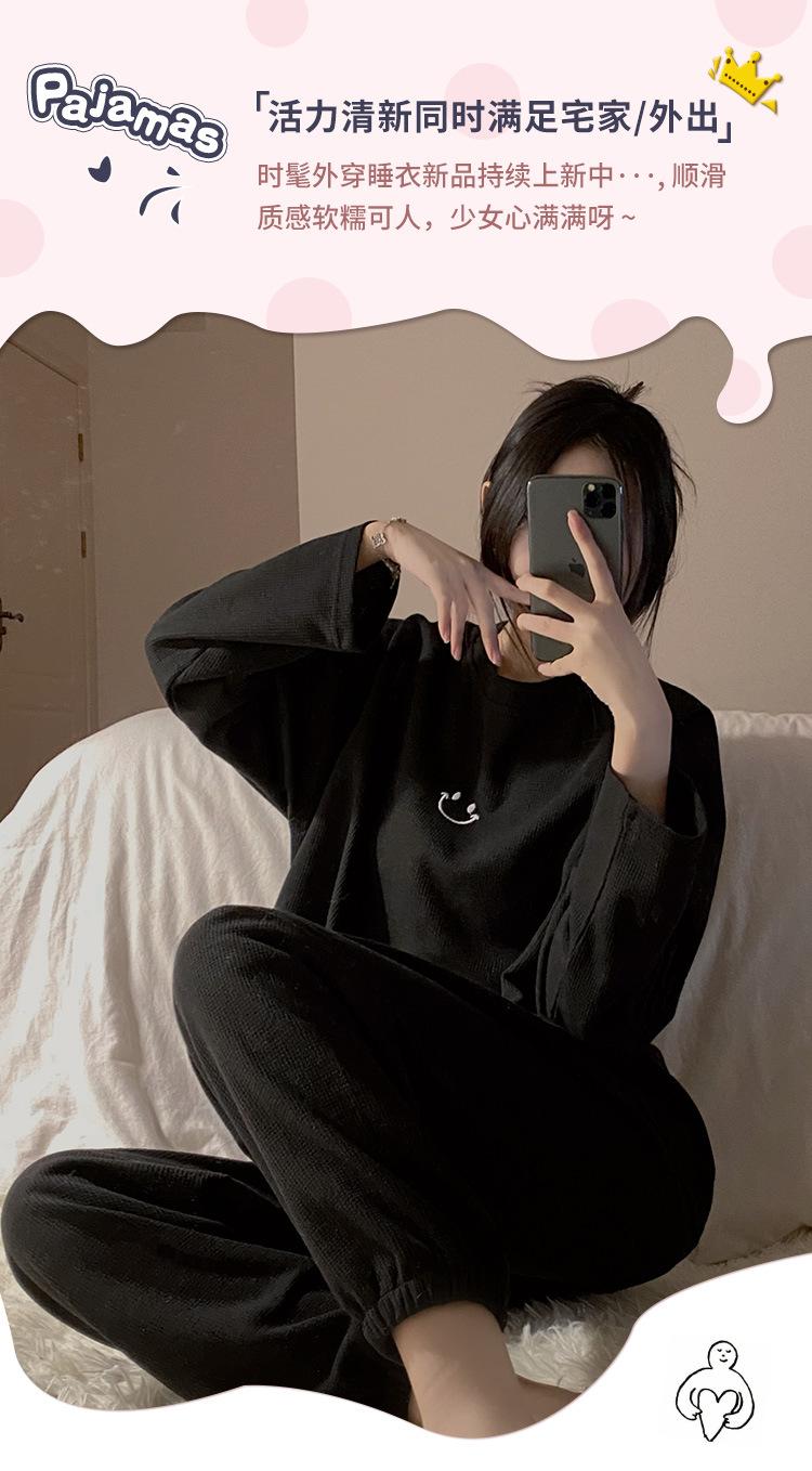 Pijamas de gofre Smiley para mujer, ropa deportiva de manga larga para el hogar, primavera, otoño e invierno, 2023