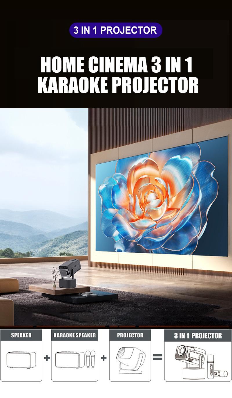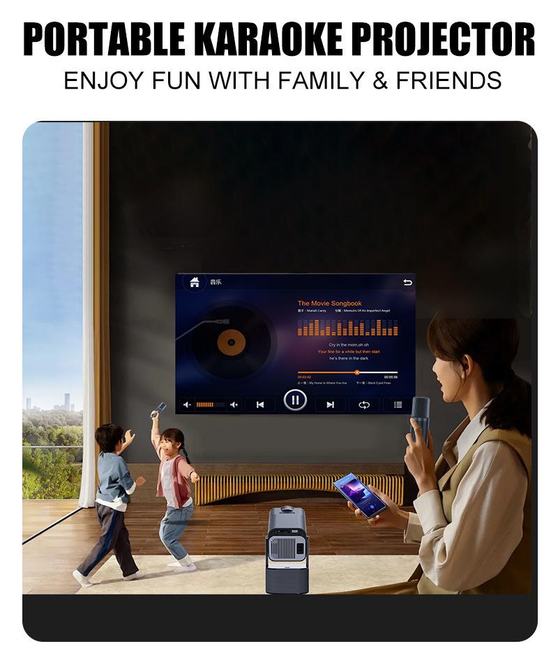 HY320 Proyector KTV tres en uno KTV proyector HD cine en casa con micrófono proyector para cantar