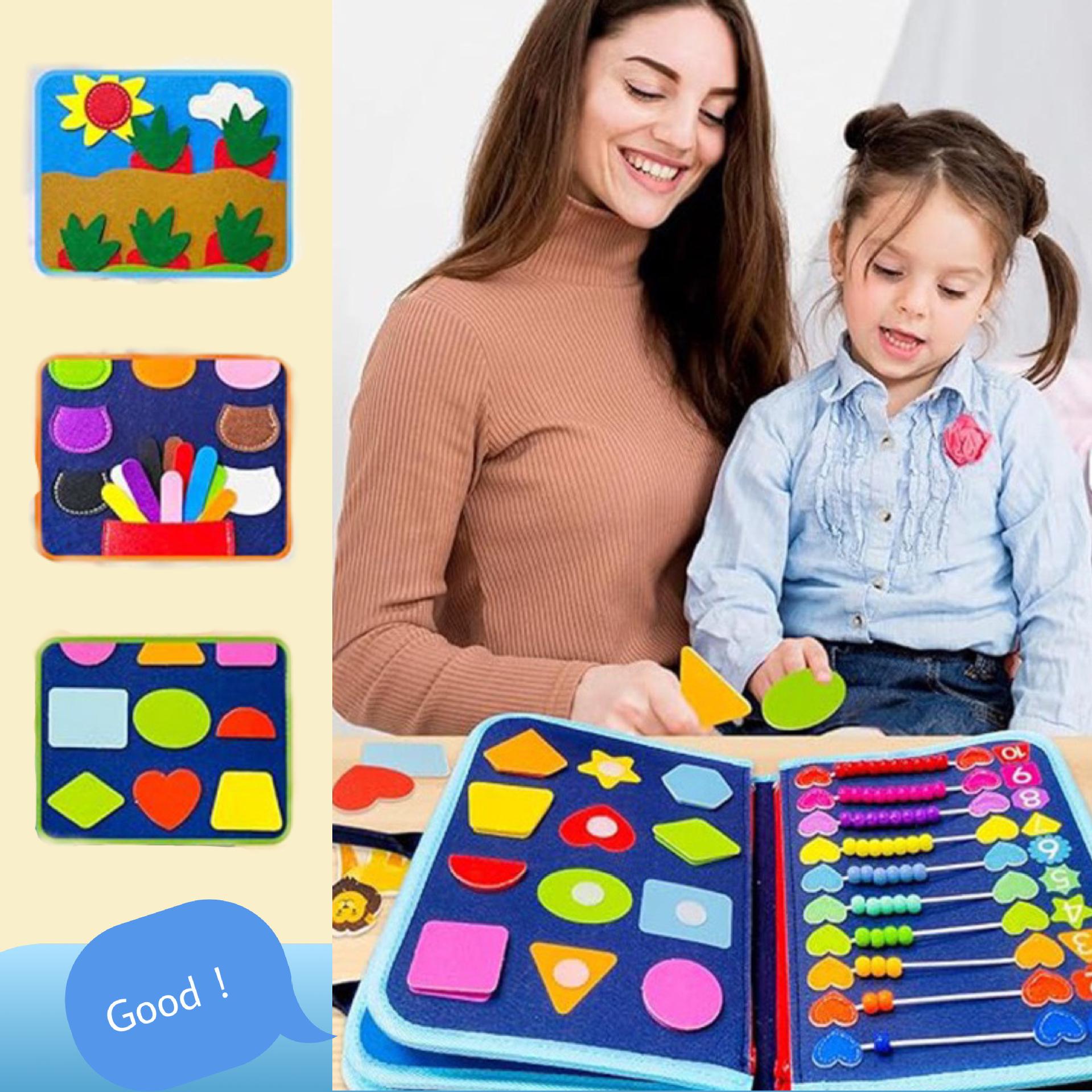 Tablero educativo de aprendizaje portátil con hebilla y cremallera, juguetes de educación temprana con sentido común de la vida, tablero de fieltro para actividades de iluminación infantil.