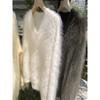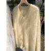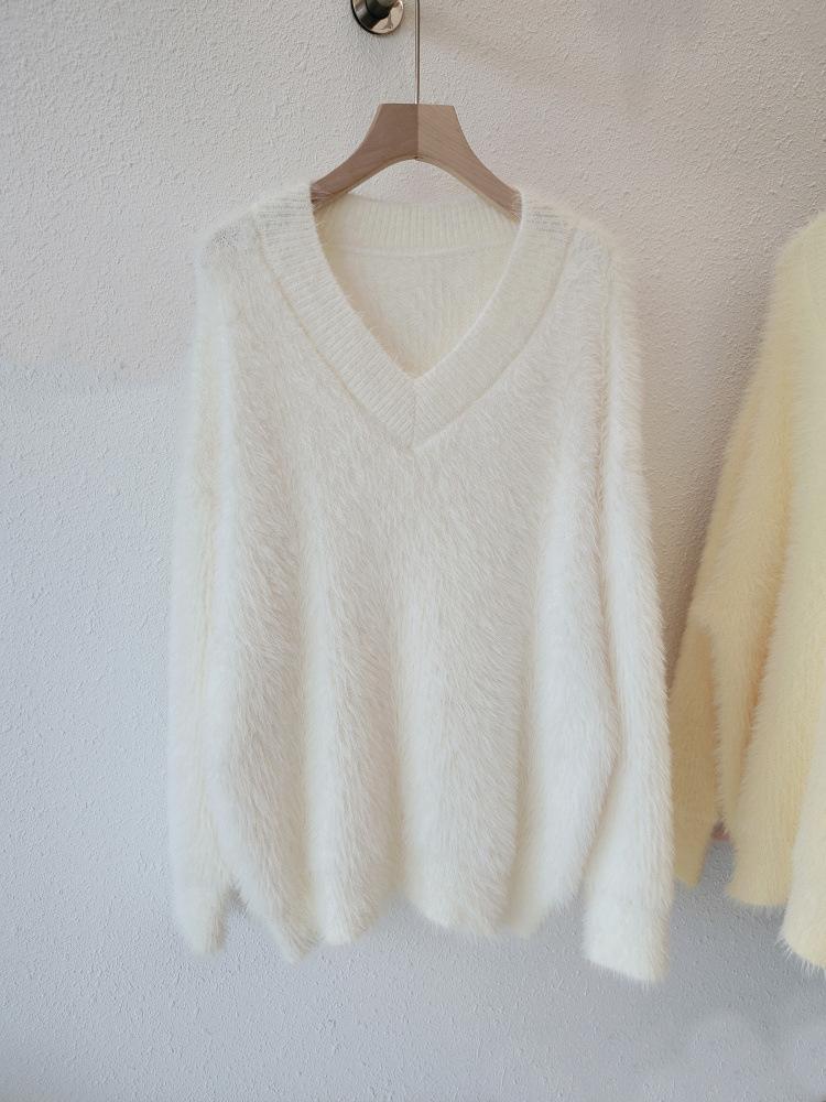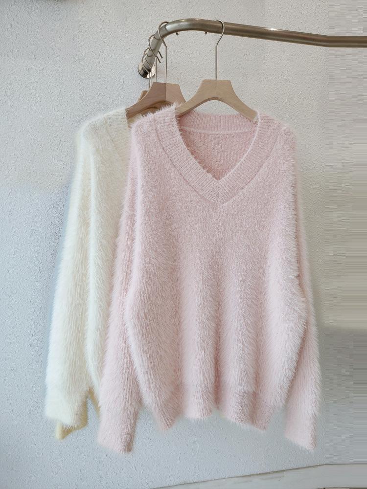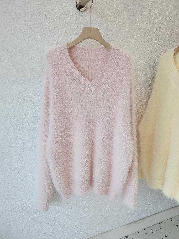 Suéter de felpa de visón sintético para mujer, nuevo, holgado y de estilo informal, de punto grueso con cuello en V, para otoño e invierno.