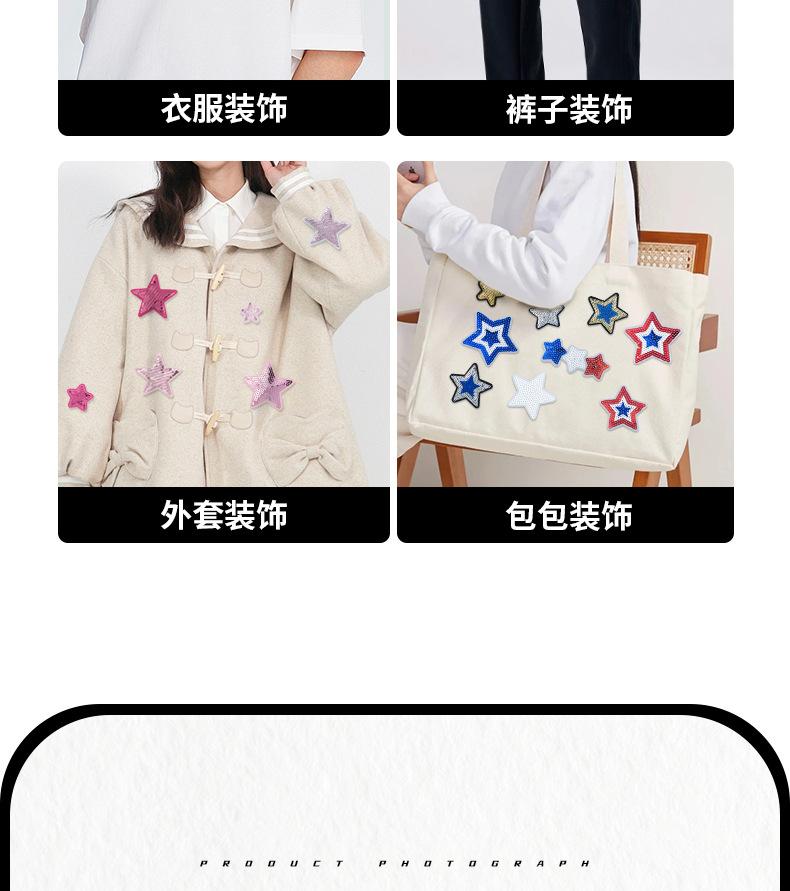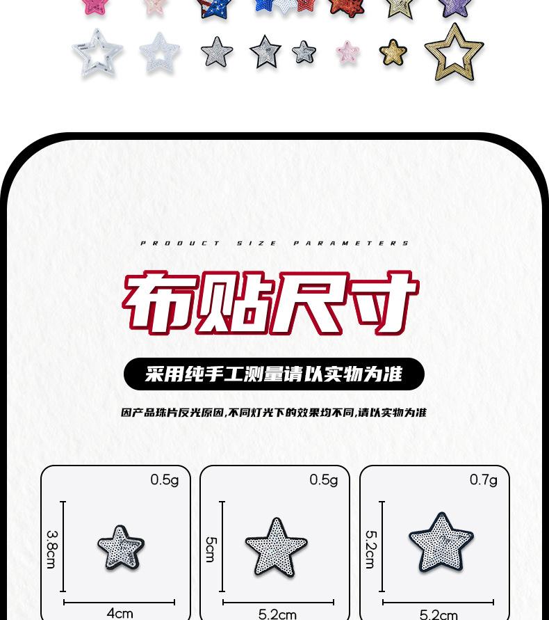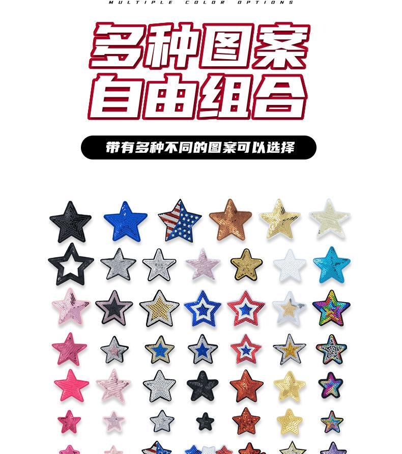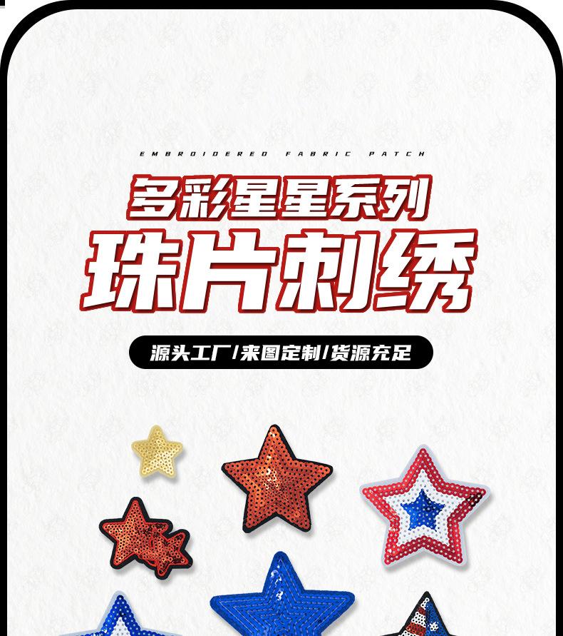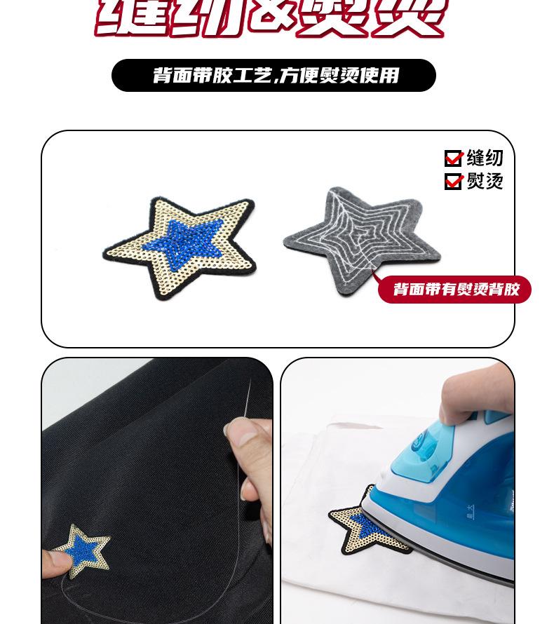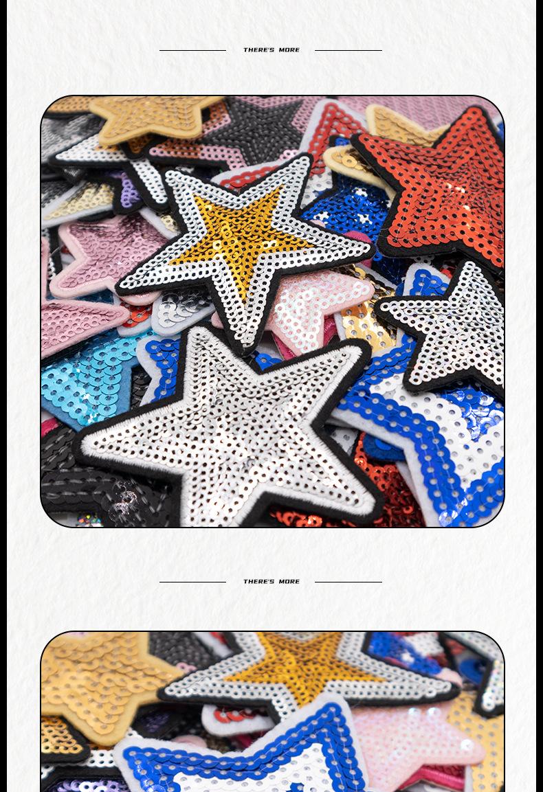 En stock, pegatinas de tela con bordado de lentejuelas de la serie de estrellas de cinco puntas, accesorios para prendas, bolsos, sombreros, parches de estrella, bordado de cuentas