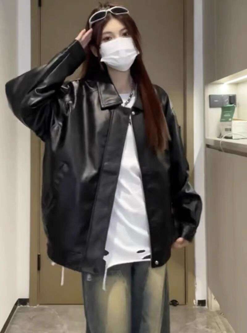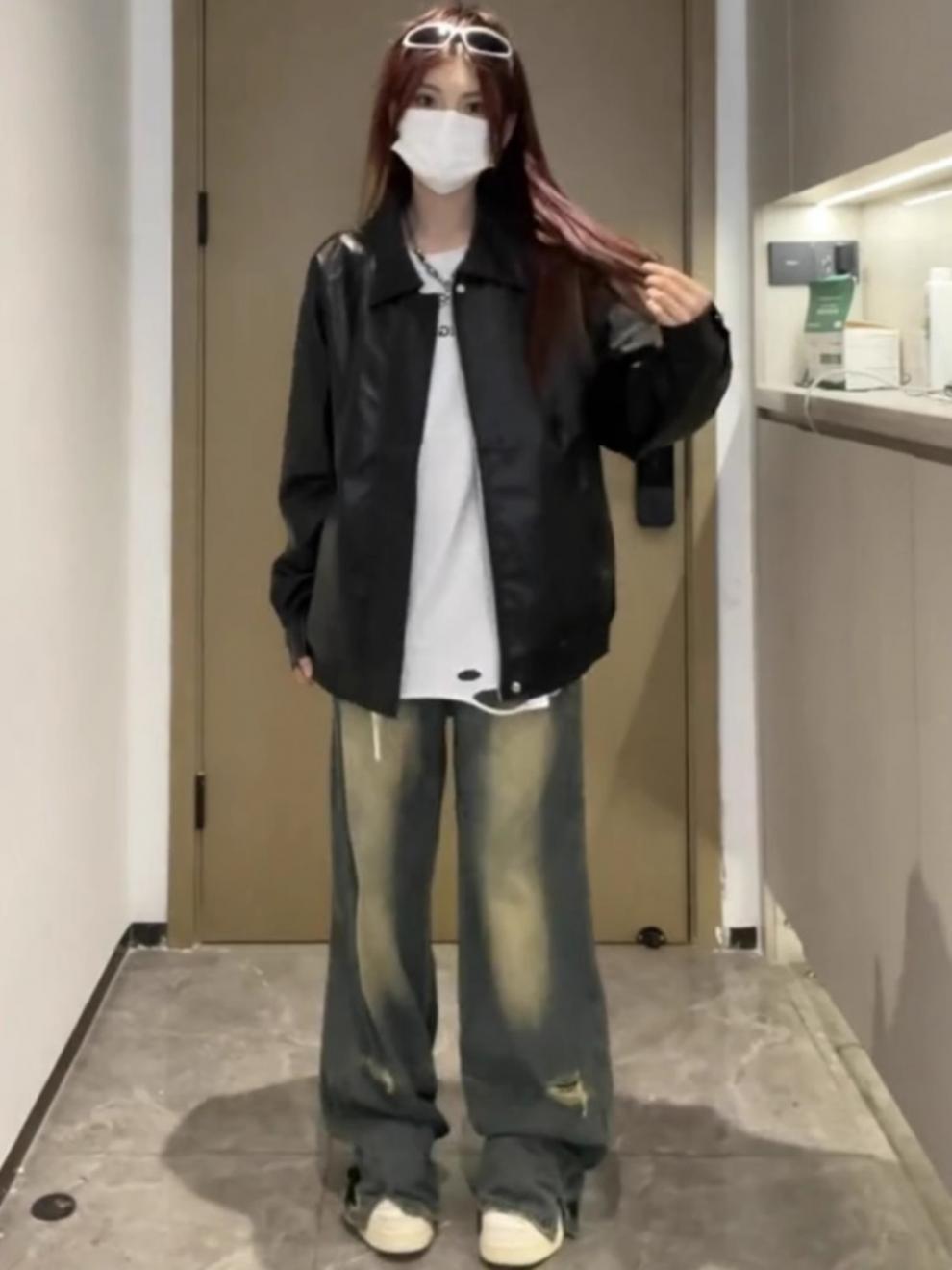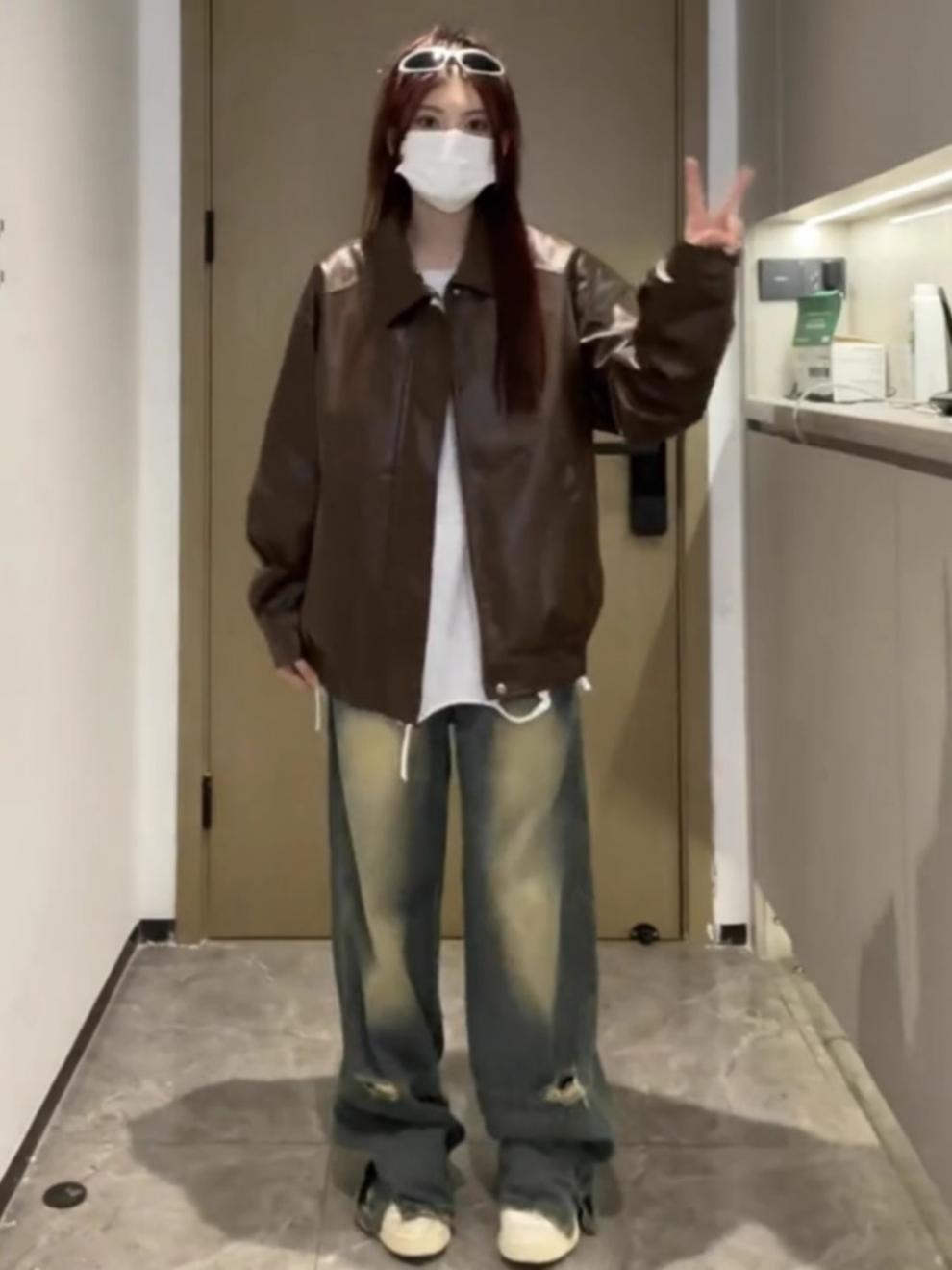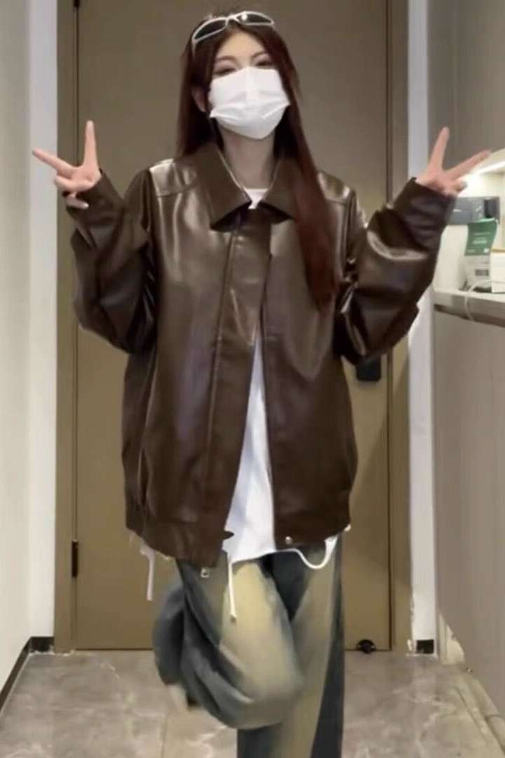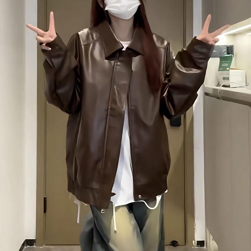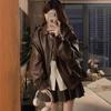 Abrigo de Cuero Marrón Retro Estilo Americano para Mujer Primavera y Otoño Nuevo 2024 Spice Girls Top Maillard de Alta Gama