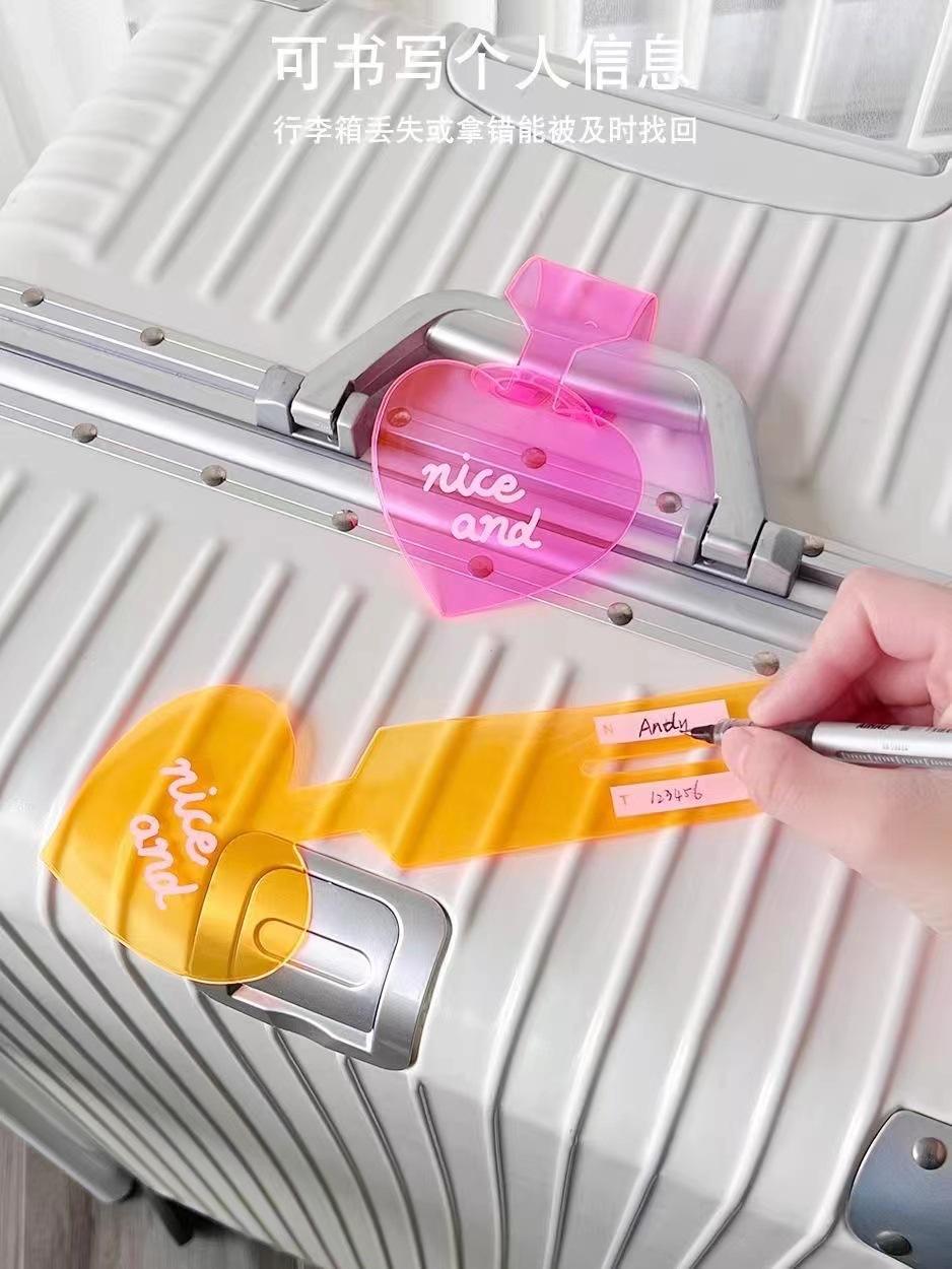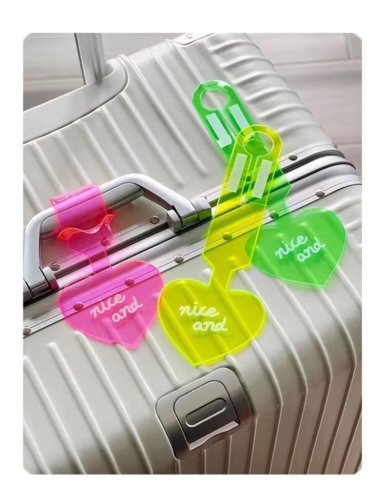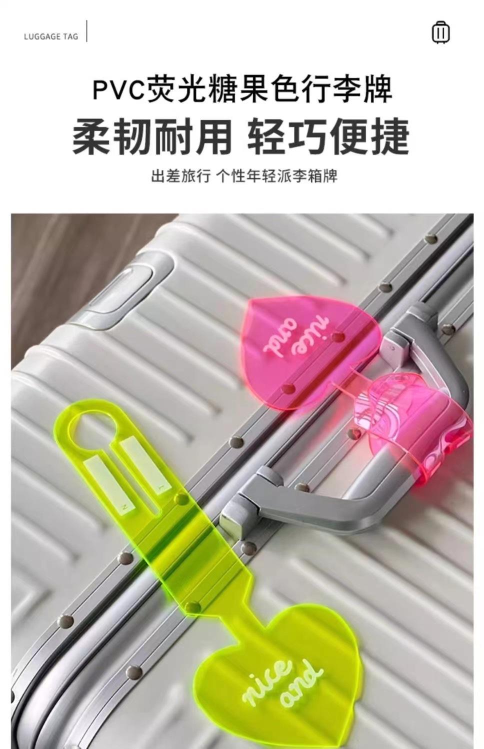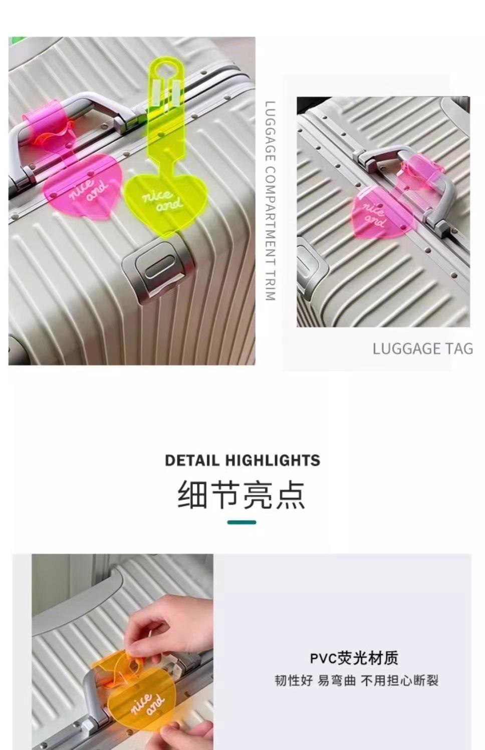 Etiqueta de Equipaje de Corazón Fluorescente de PVC Etiqueta de Maleta Tarjeta de Embarque Maleta Documentada Etiqueta de Identificación Anti-Pérdida