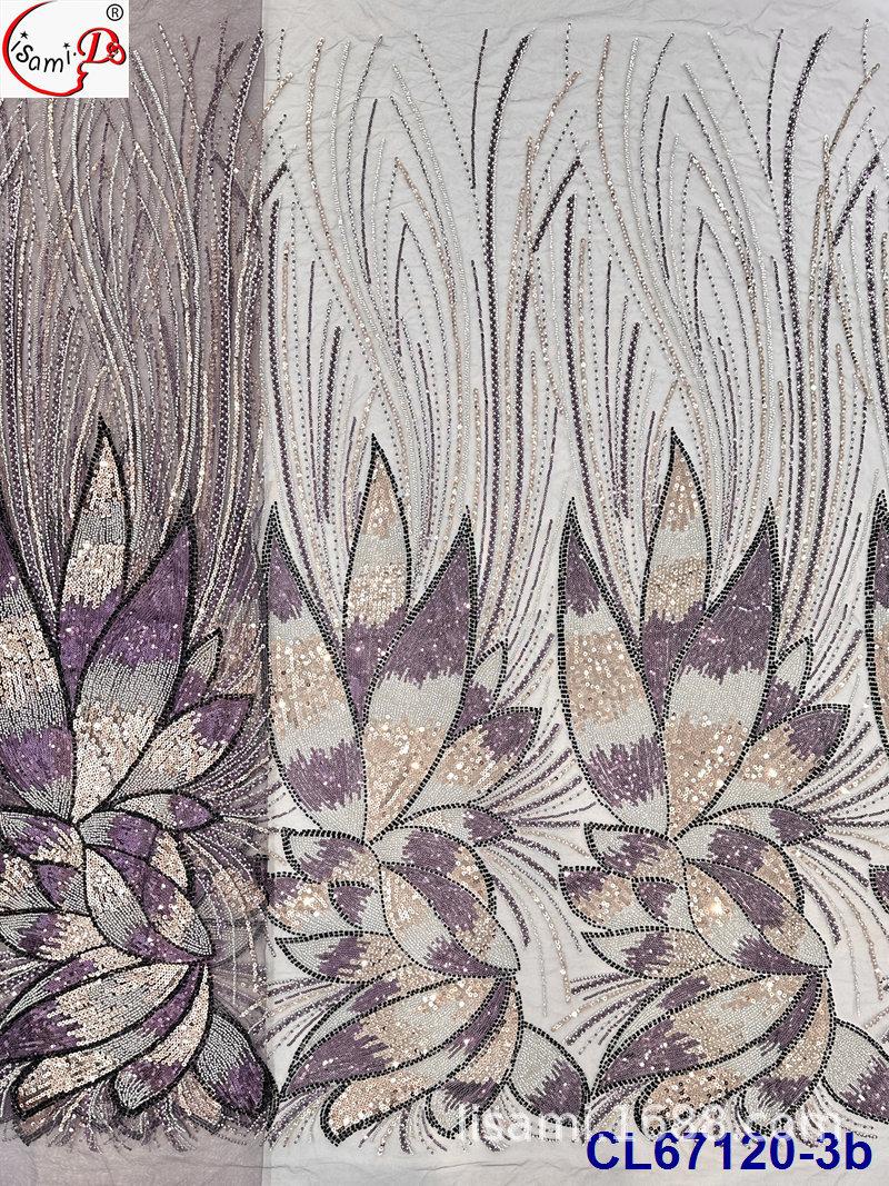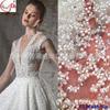 Vestido de novia francés con encaje bordado de lentejuelas y flores grandes.
