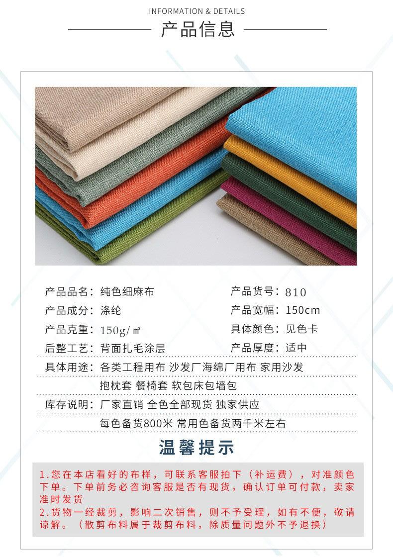 Suministros del Fabricante Color Puro Lino Fino Imitación Lino Tela para Sofá Cojín Almohada Equipaje Bolso Suave Tela Algodón y Lino