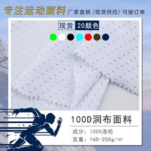 | Venta directa de fábrica de tela elástica de poliéster-amoníaco con agujeros pequeños de 180 g, malla pequeña, absorción y secado rápido, para camisetas deportivas, tejido de trama. |