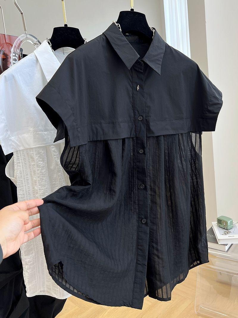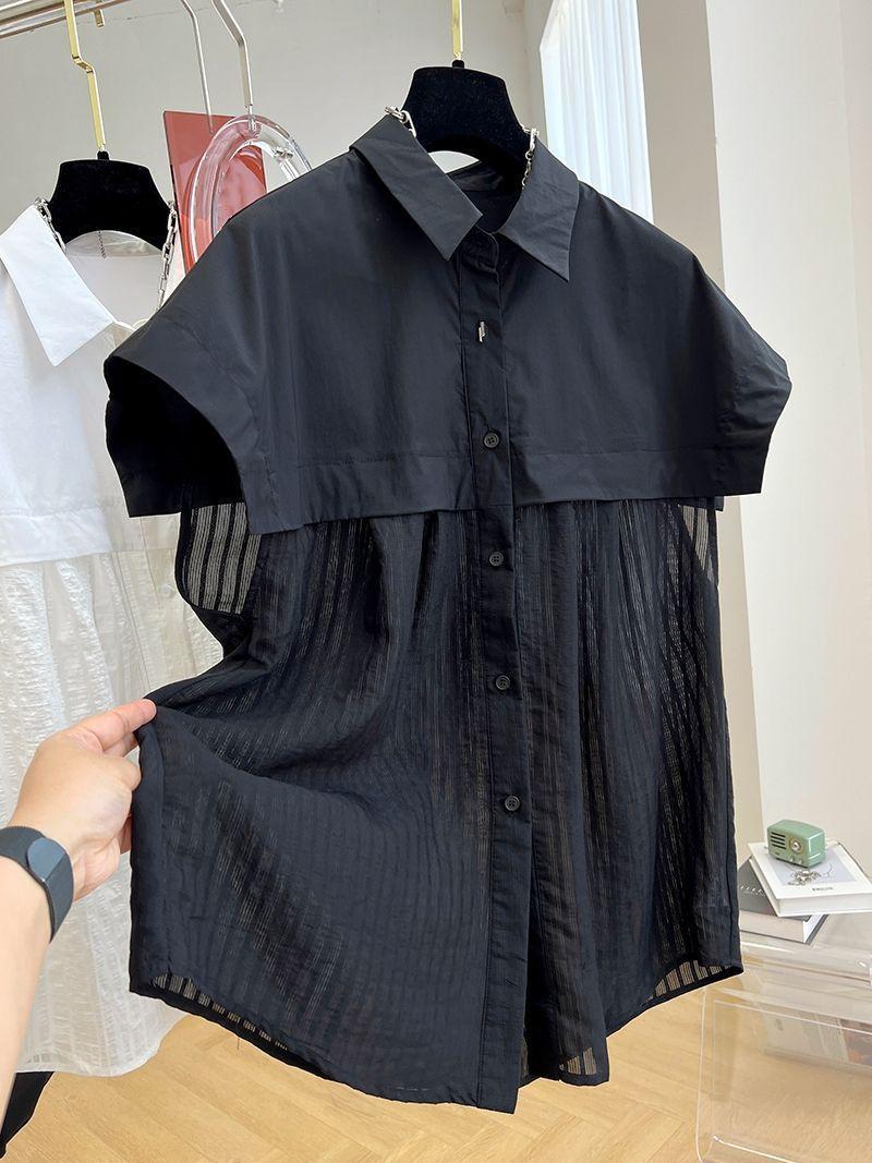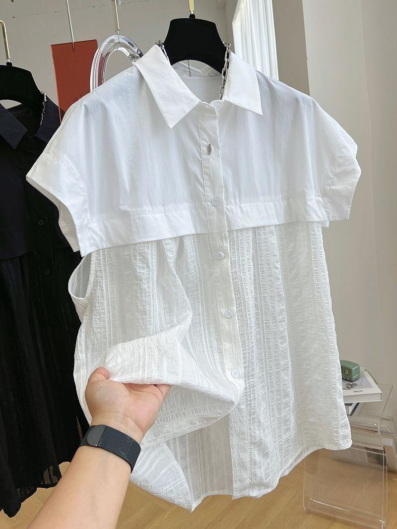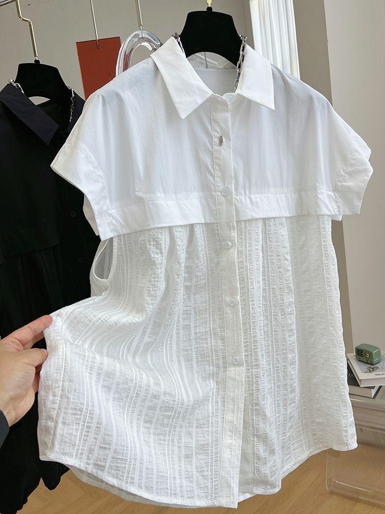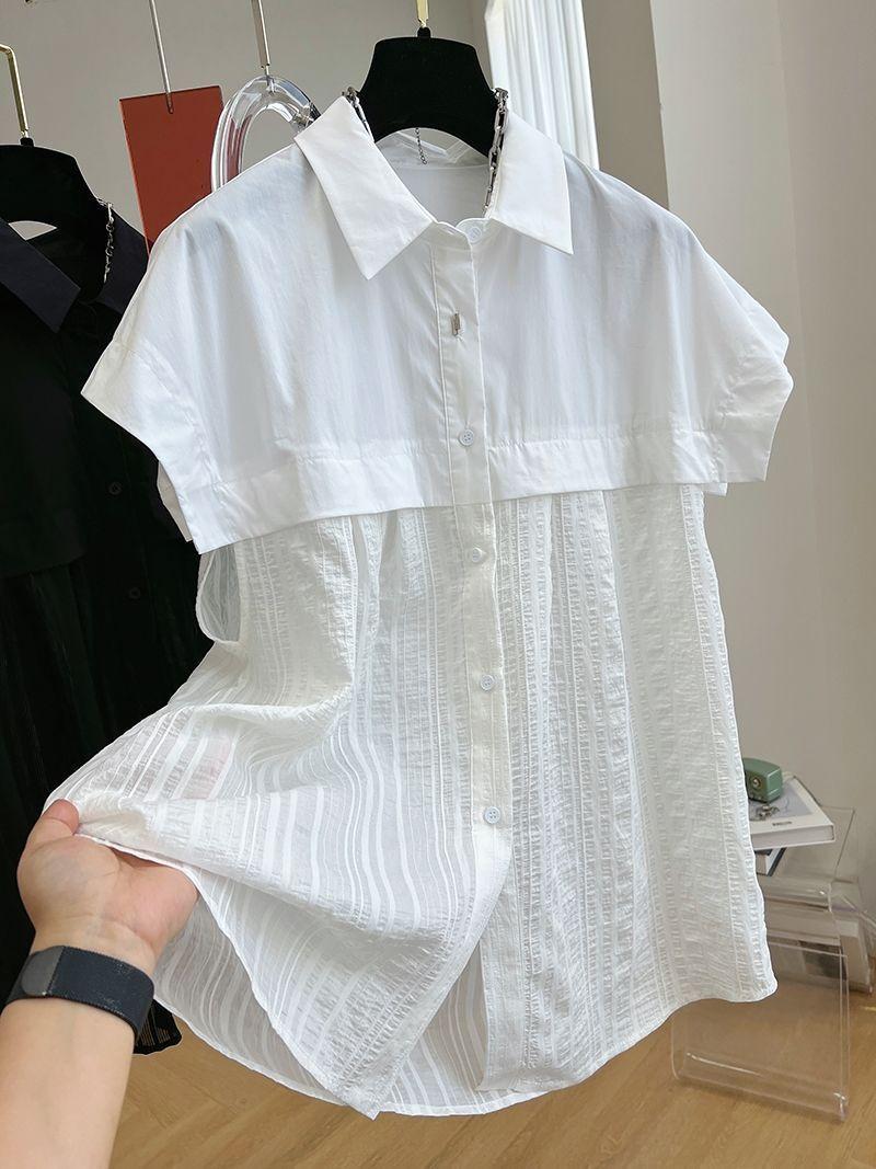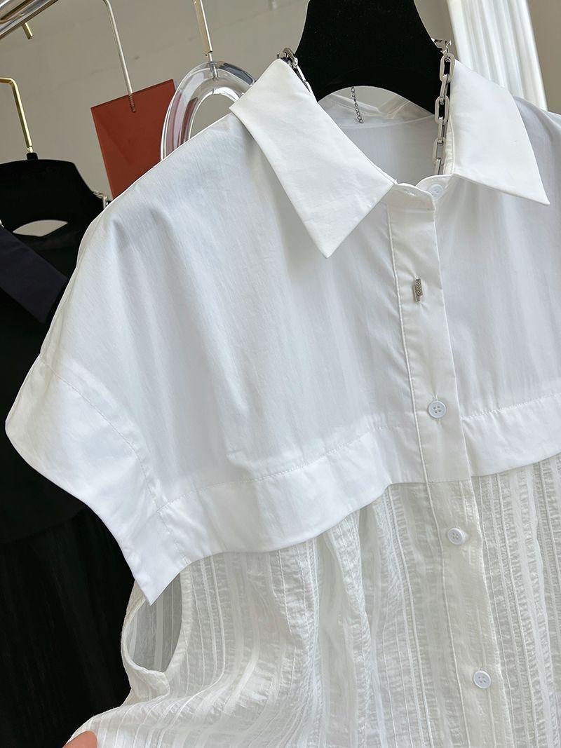 Camisa de manga corta con chaleco y hombros descubiertos para mujer, diseño europeo de alta gama, con sentido de nicho, costuras de verano, top francés fino, camisa pequeña