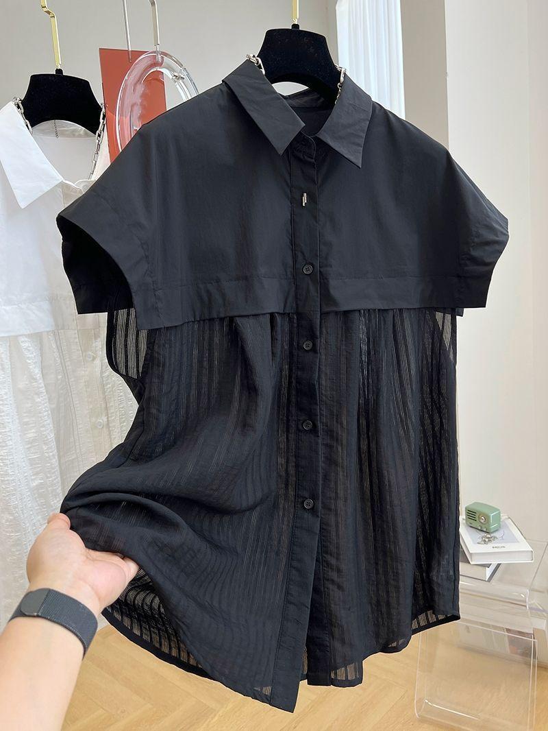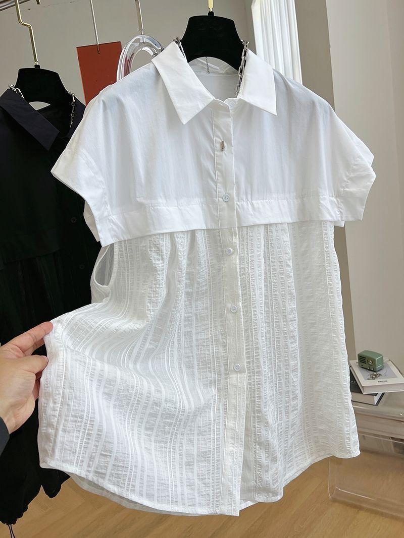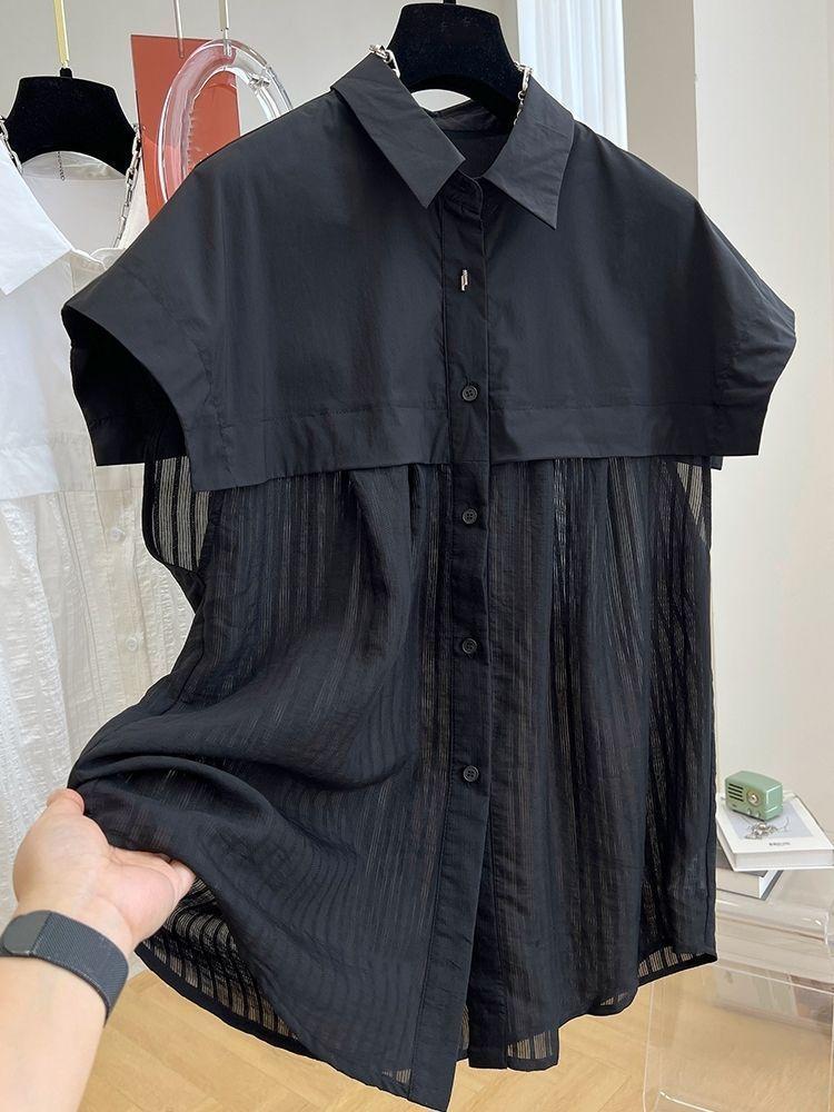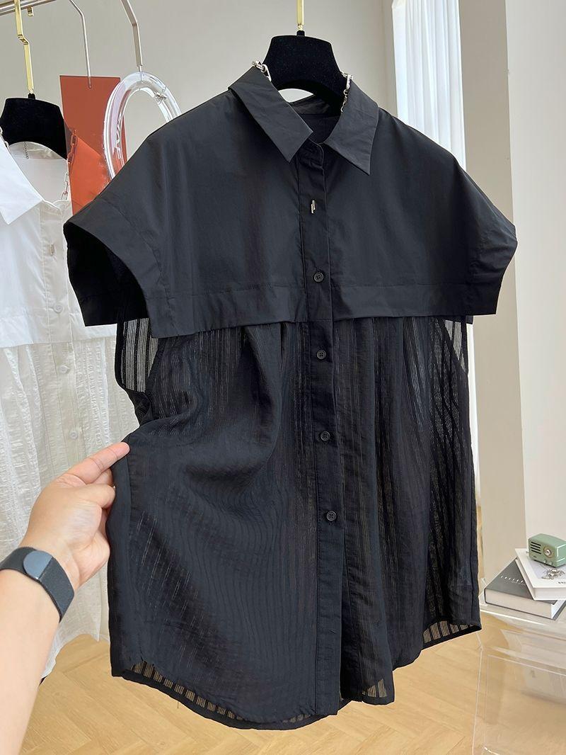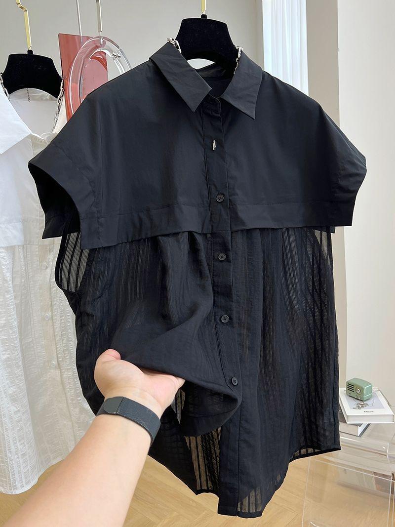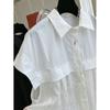 Camisa de manga corta con chaleco y hombros descubiertos para mujer, diseño europeo de alta gama, con sentido de nicho, costuras de verano, top francés fino, camisa pequeña