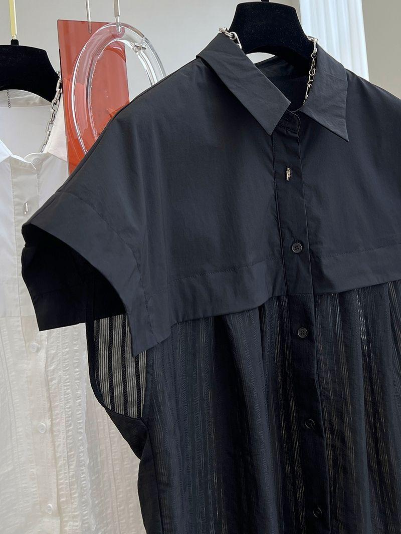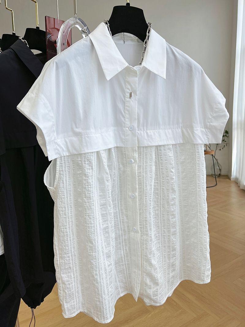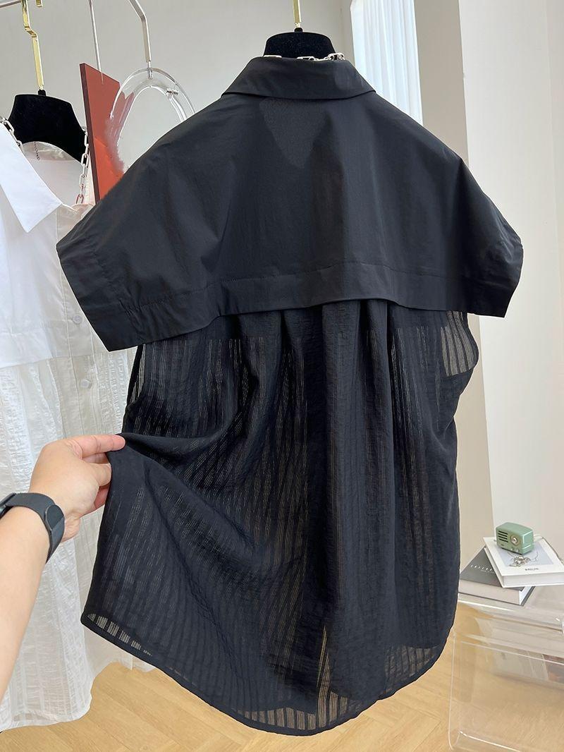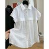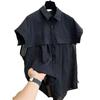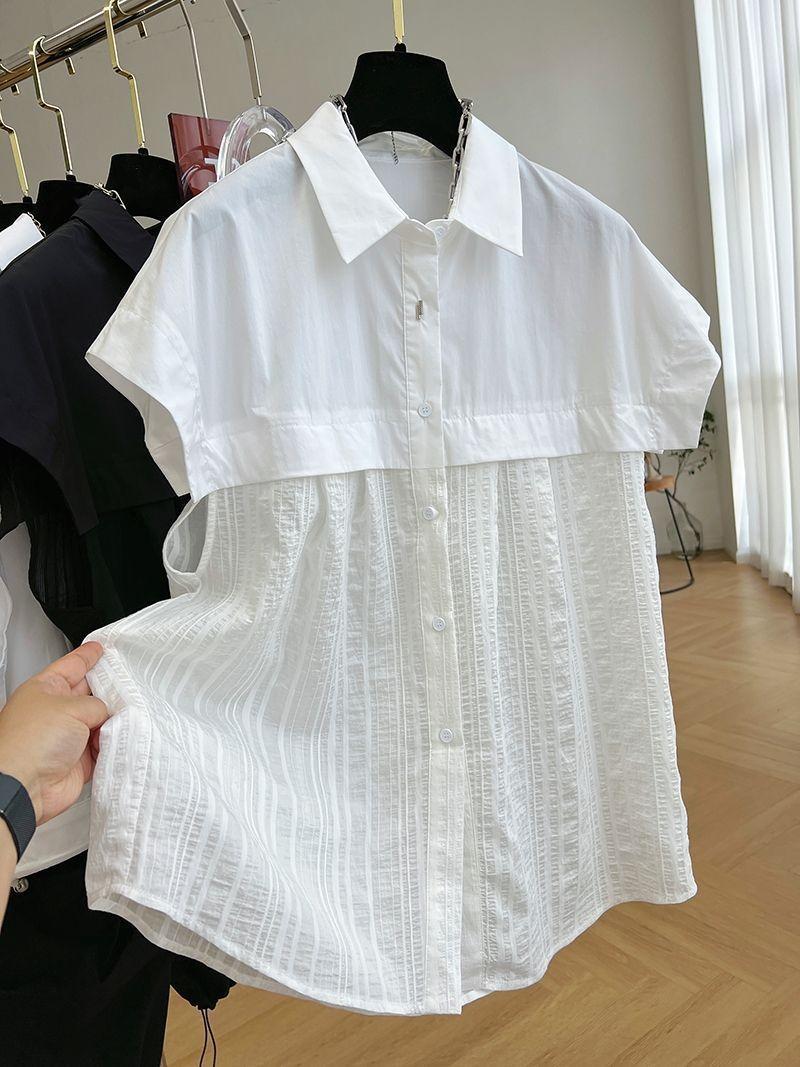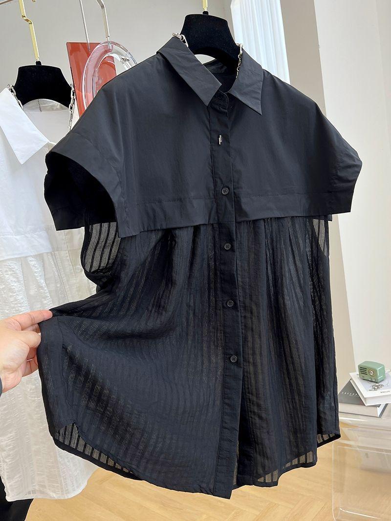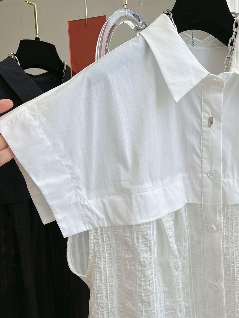 Camisa de manga corta con chaleco y hombros descubiertos para mujer, diseño europeo de alta gama, con sentido de nicho, costuras de verano, top francés fino, camisa pequeña
