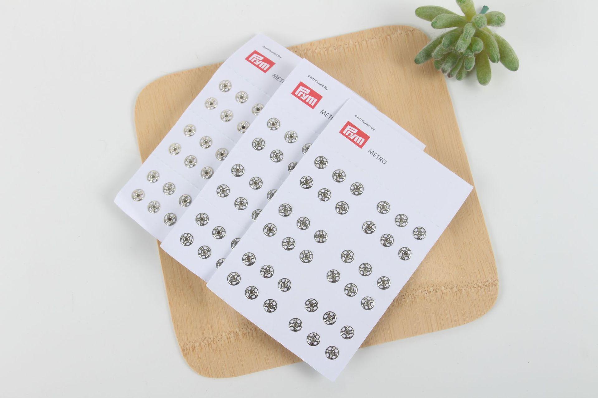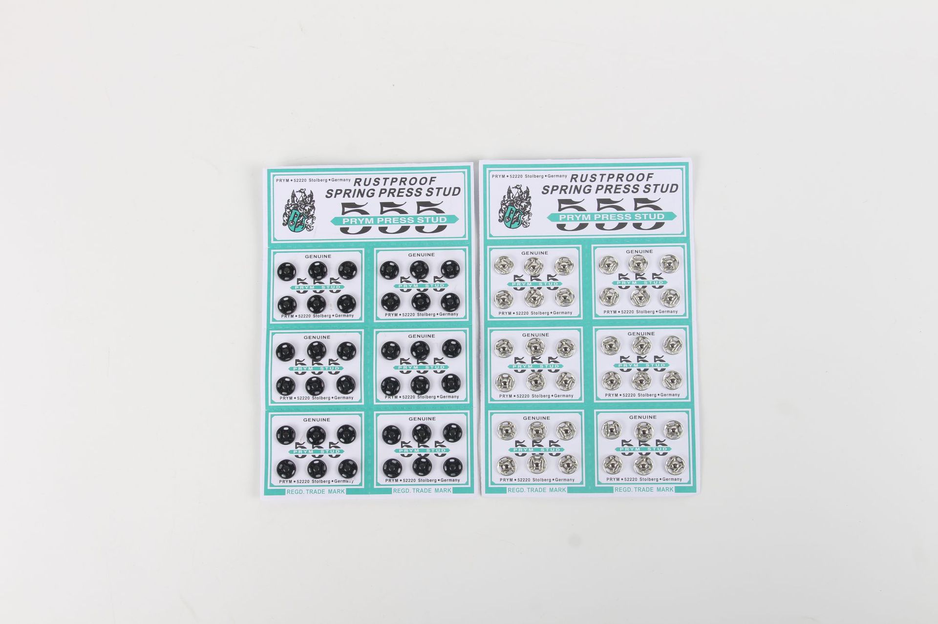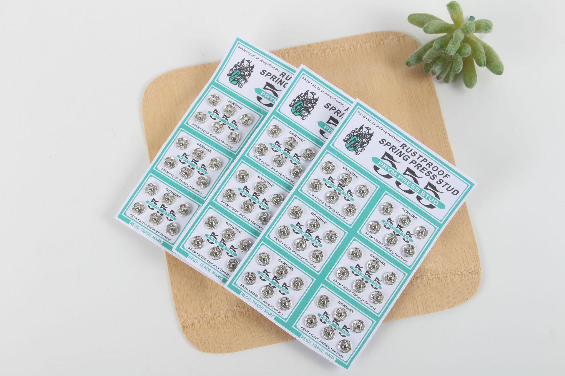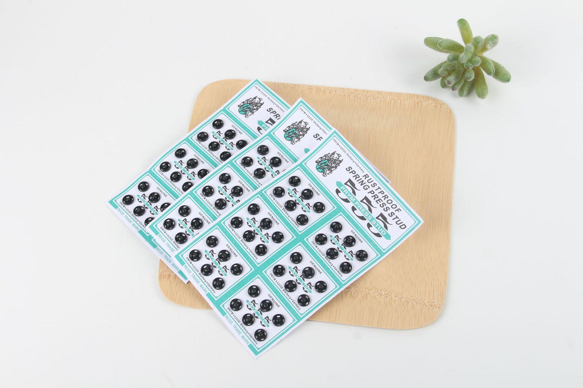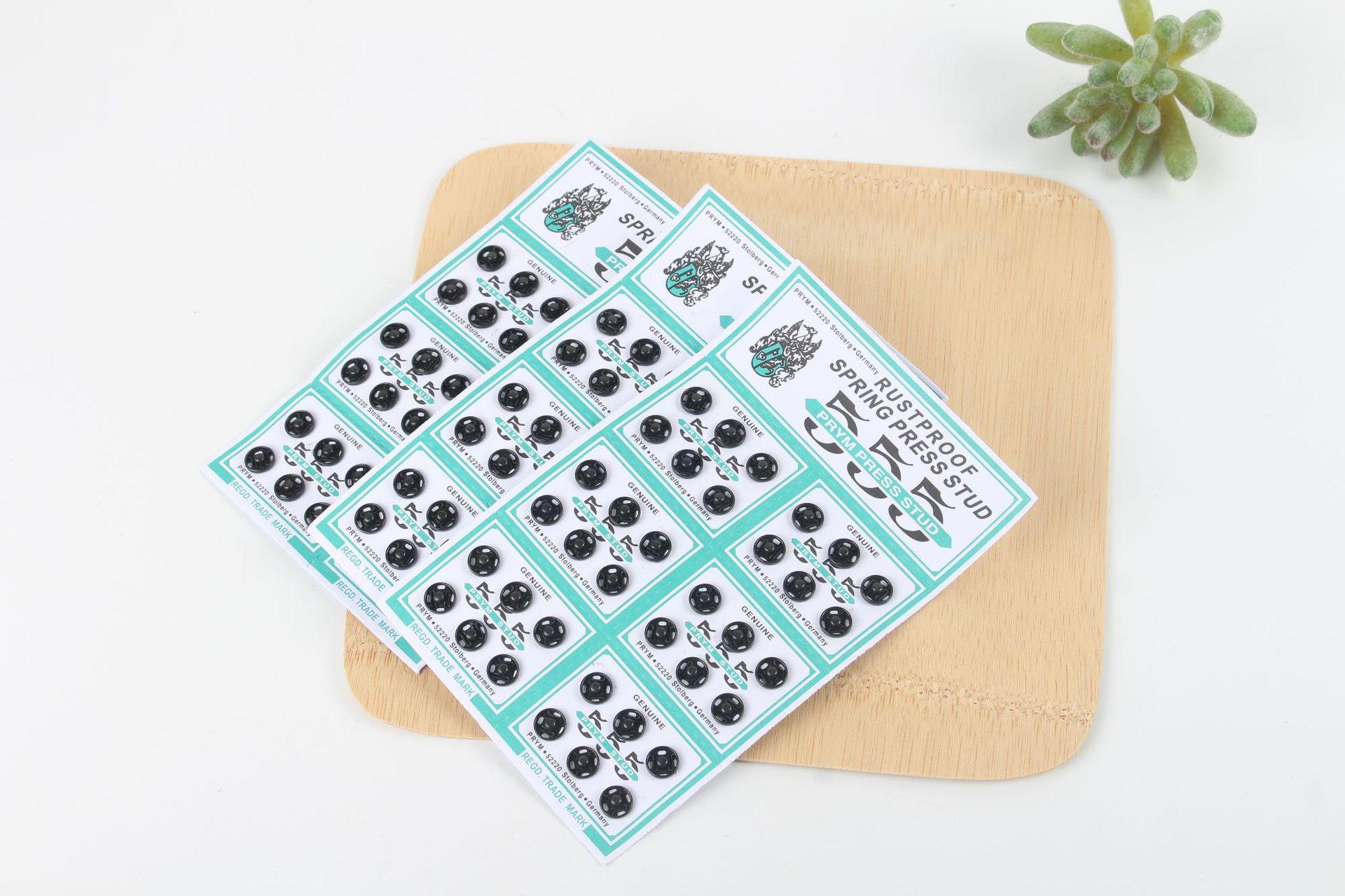 Botones a presión: también conocidos como botones de presión, se usan en abrigos, suéteres y botones interiores. También se conocen como botones ocultos o botones para mochilas que se cierran con un solo clic. Son prácticos, rápidos e invisibles.