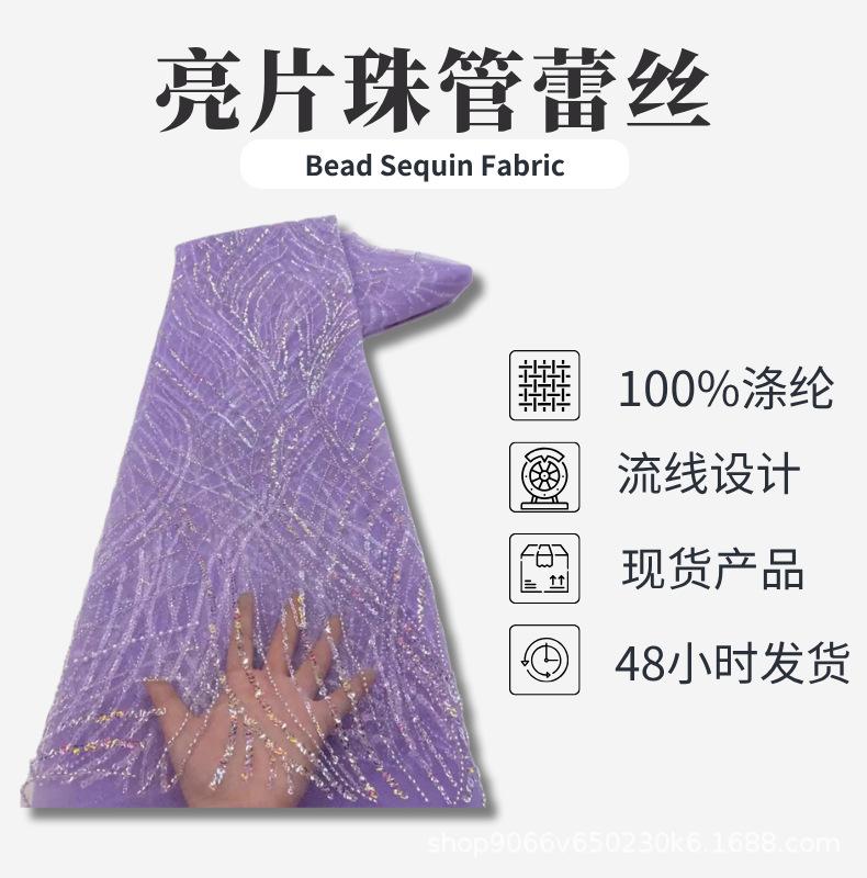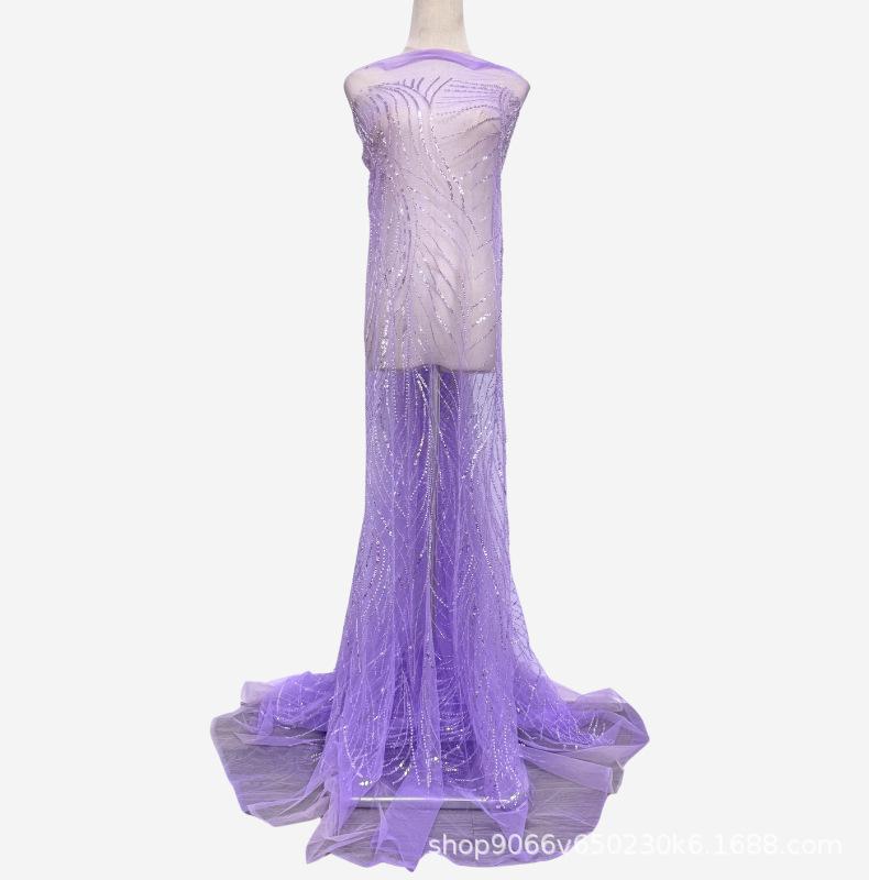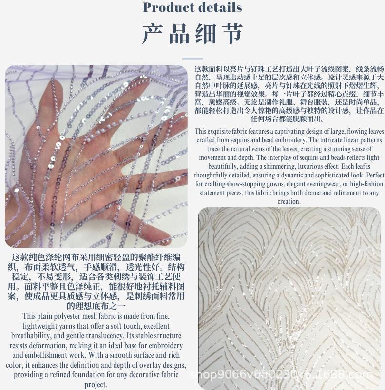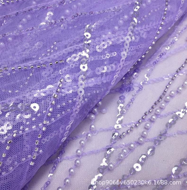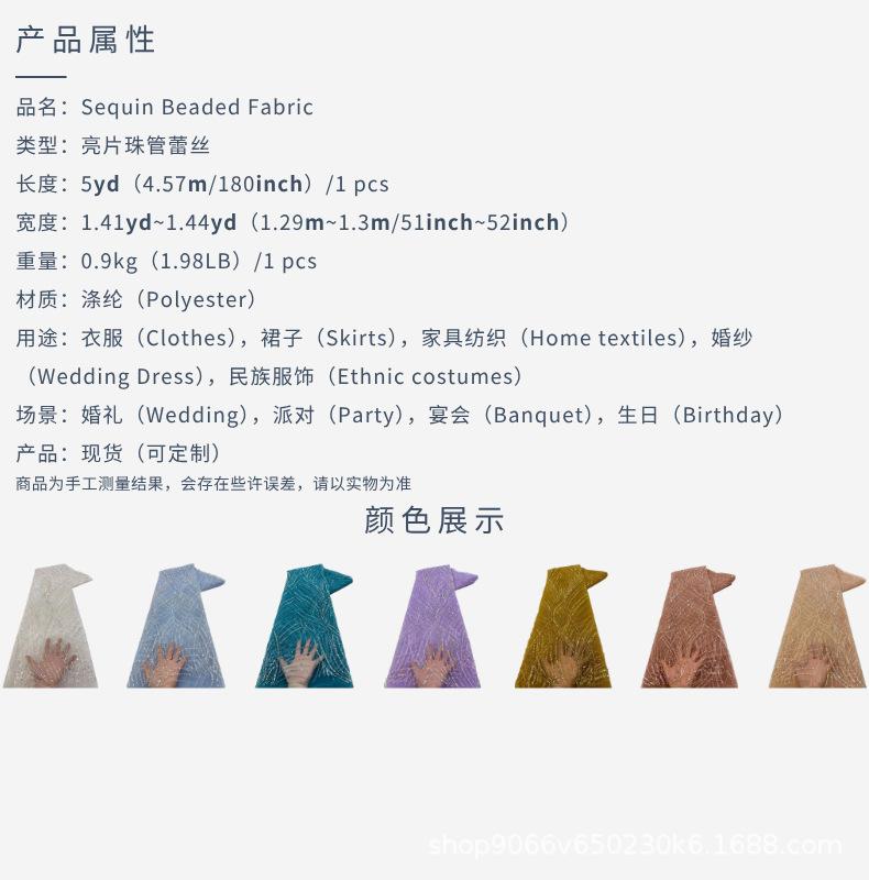 Encaje de Malla Geométrico Clásico Cuentas de Arroz Lentejuelas Bordado Cuentas Tubo Cuentas Bordado Tela Vestido Encaje Tejido de Malla