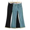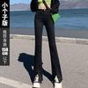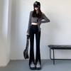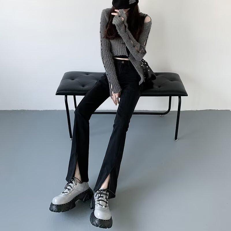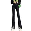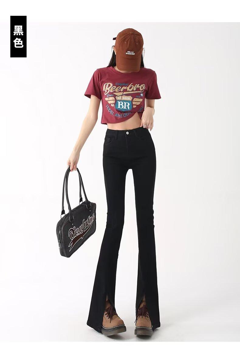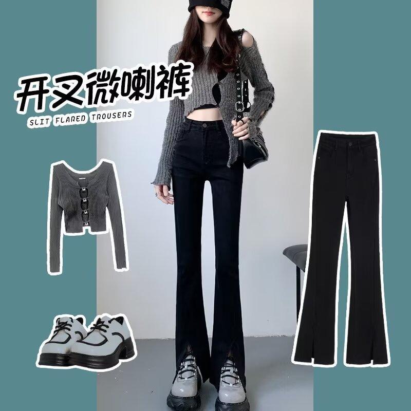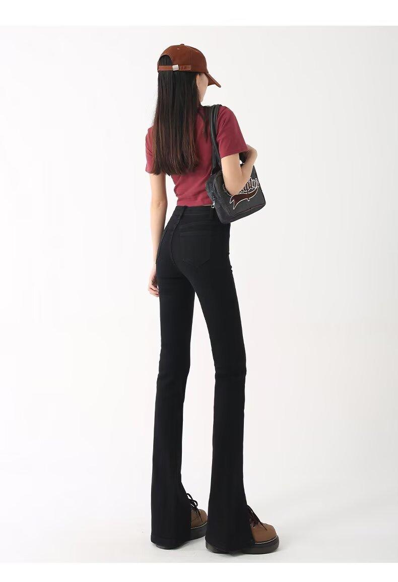 Pantalones vaqueros de color sólido con abertura para primavera y otoño, ligeramente acampanados, de cintura alta, nuevos para mujer, adelgazantes, elásticos, hasta el suelo, con abertura, acampanados de herradura