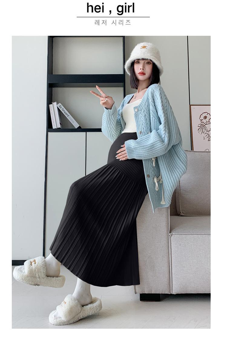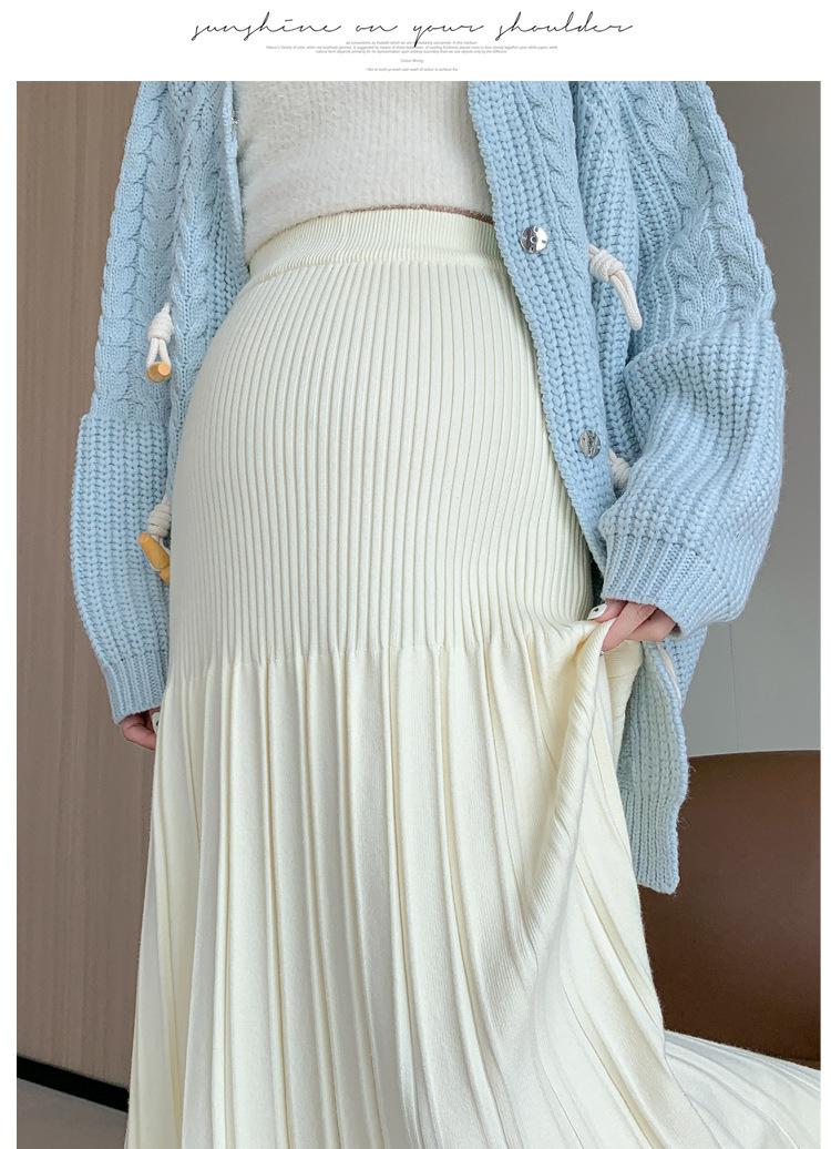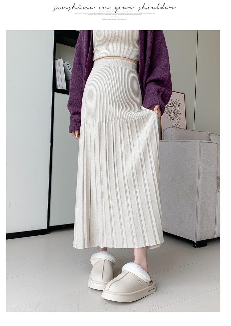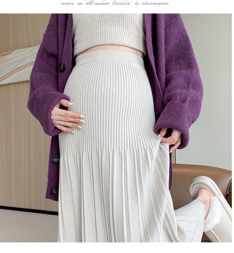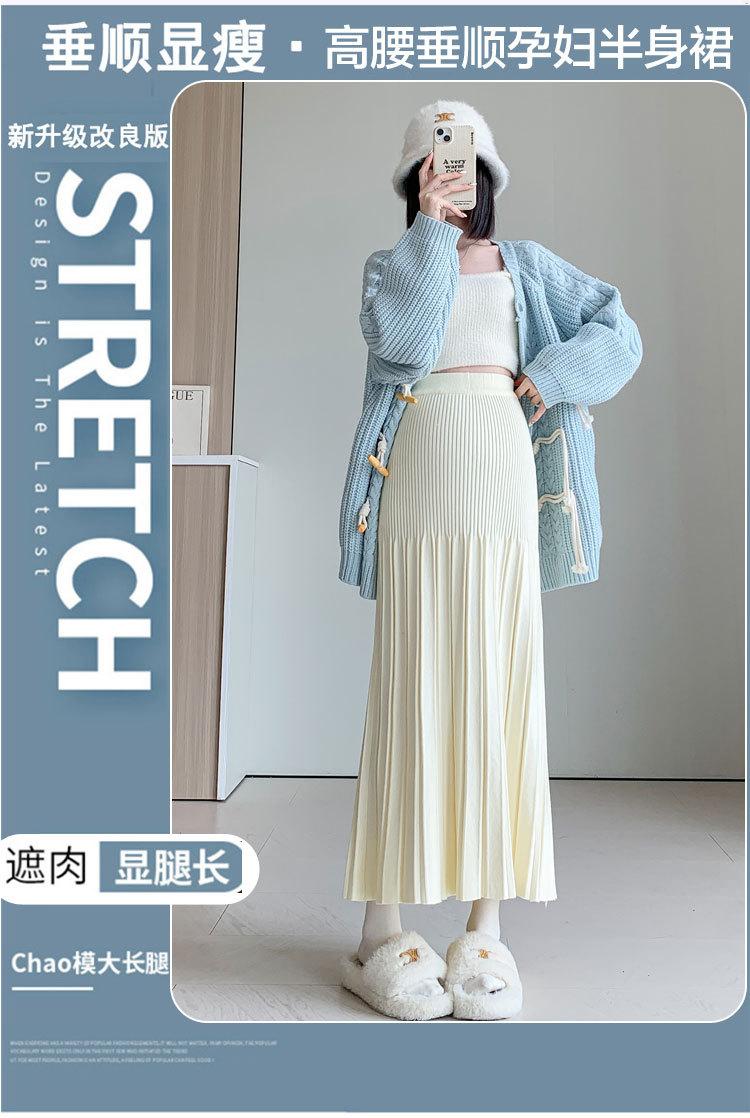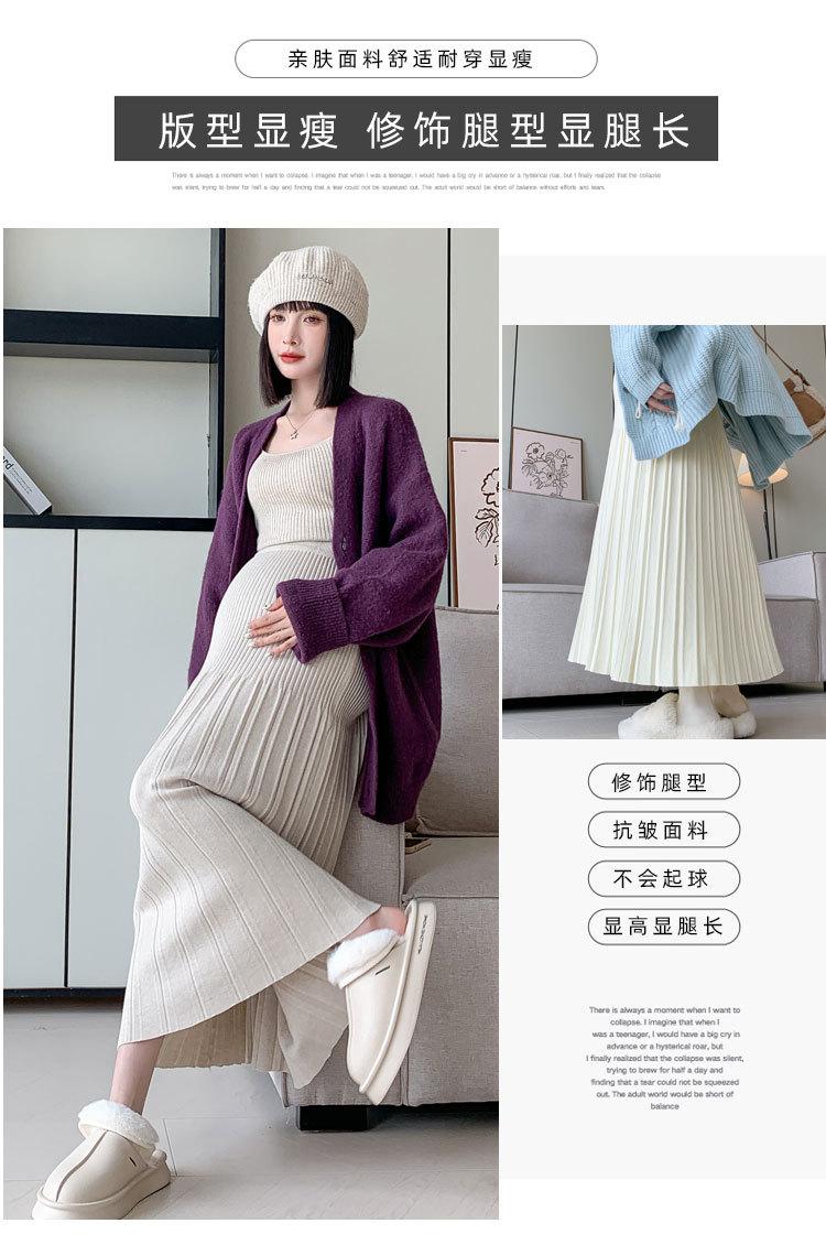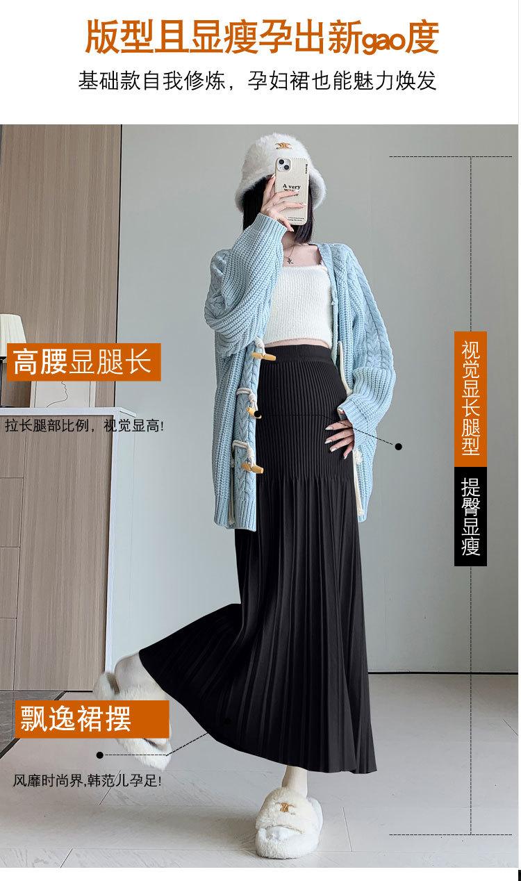 En stock Maternidad Otoño e Invierno Nueva Falda de Punto Falda Plisada Casual Adelgazante Suelta Mujeres Embarazadas Falda de Línea A