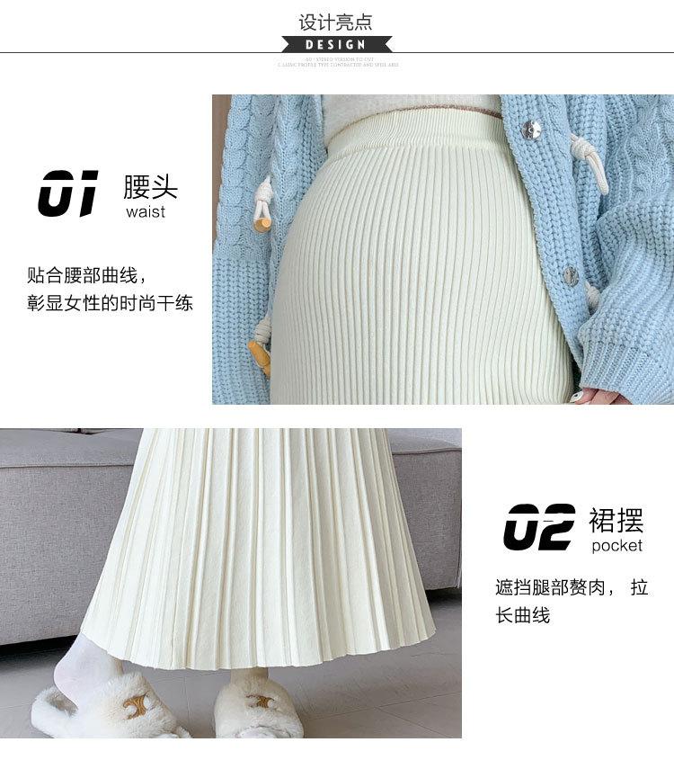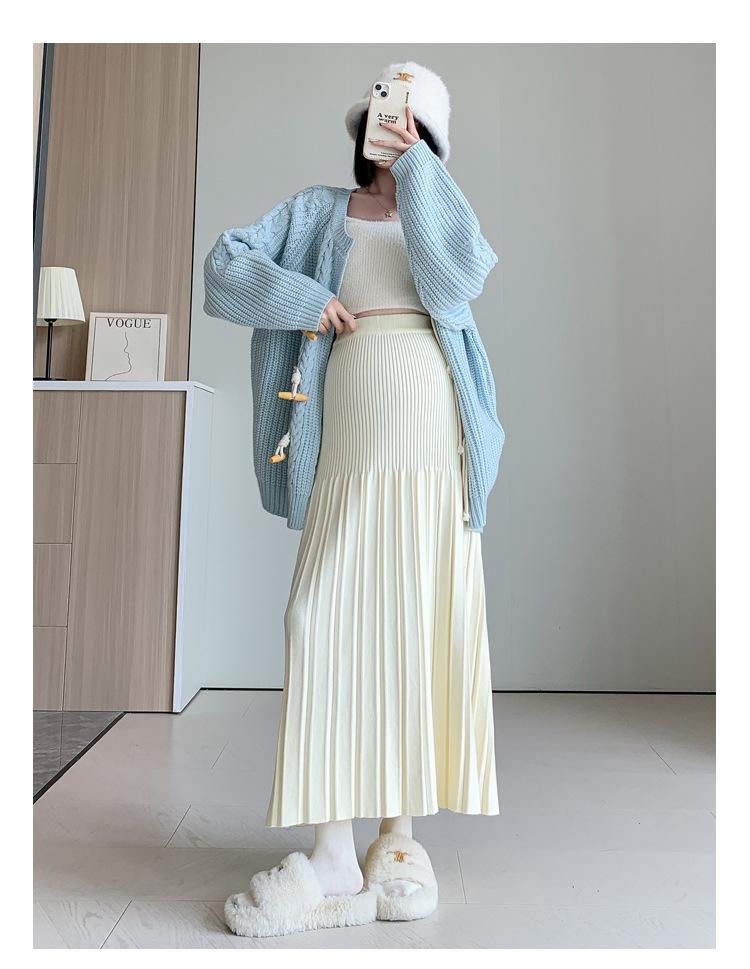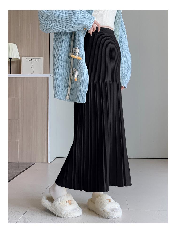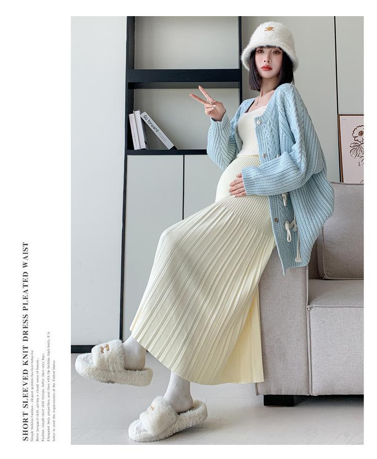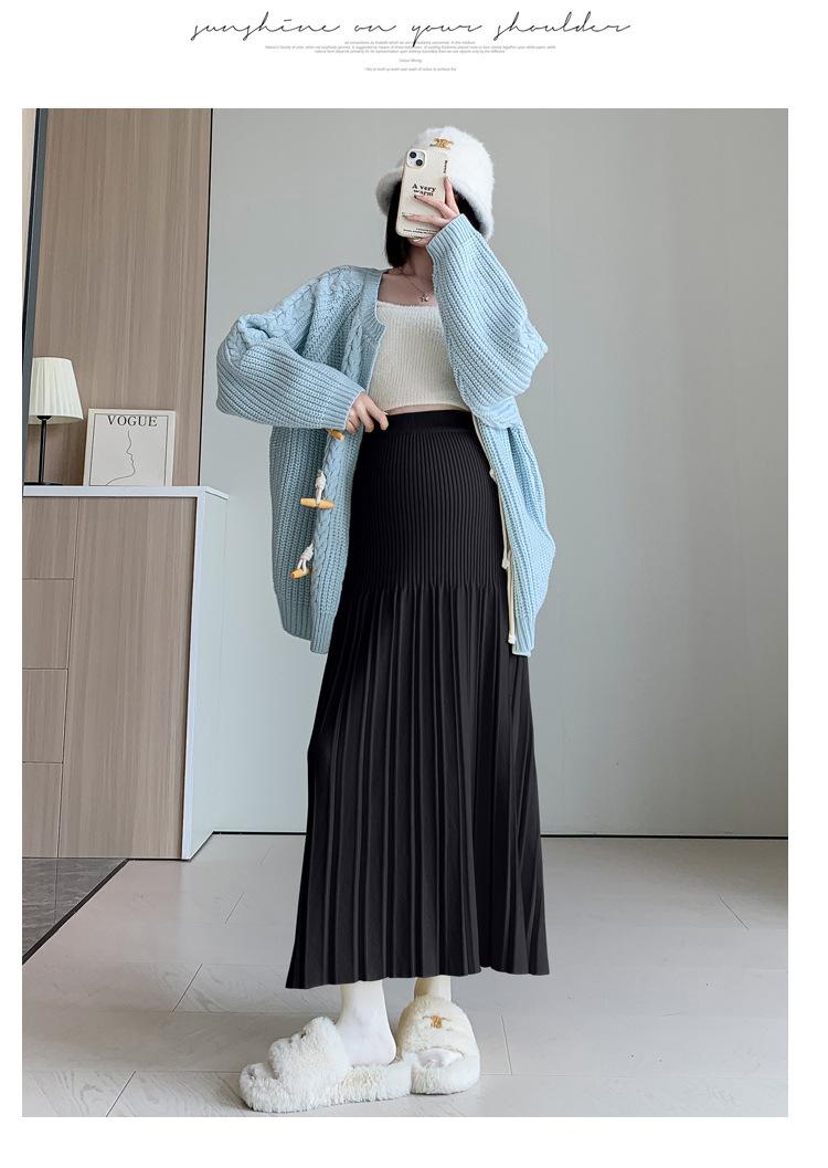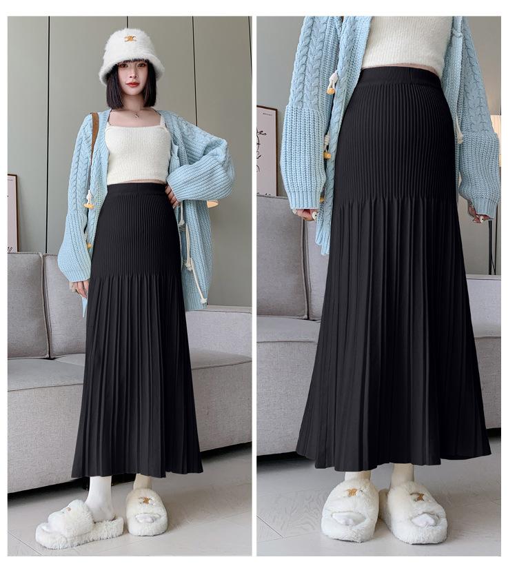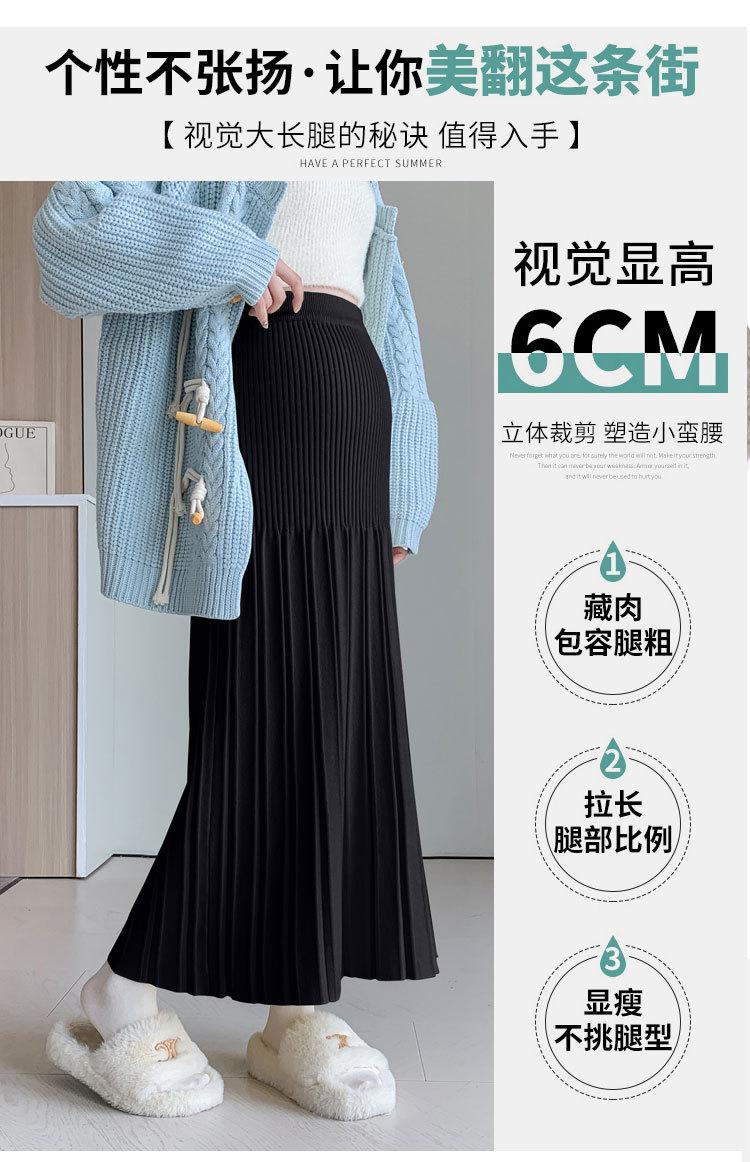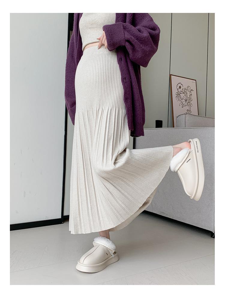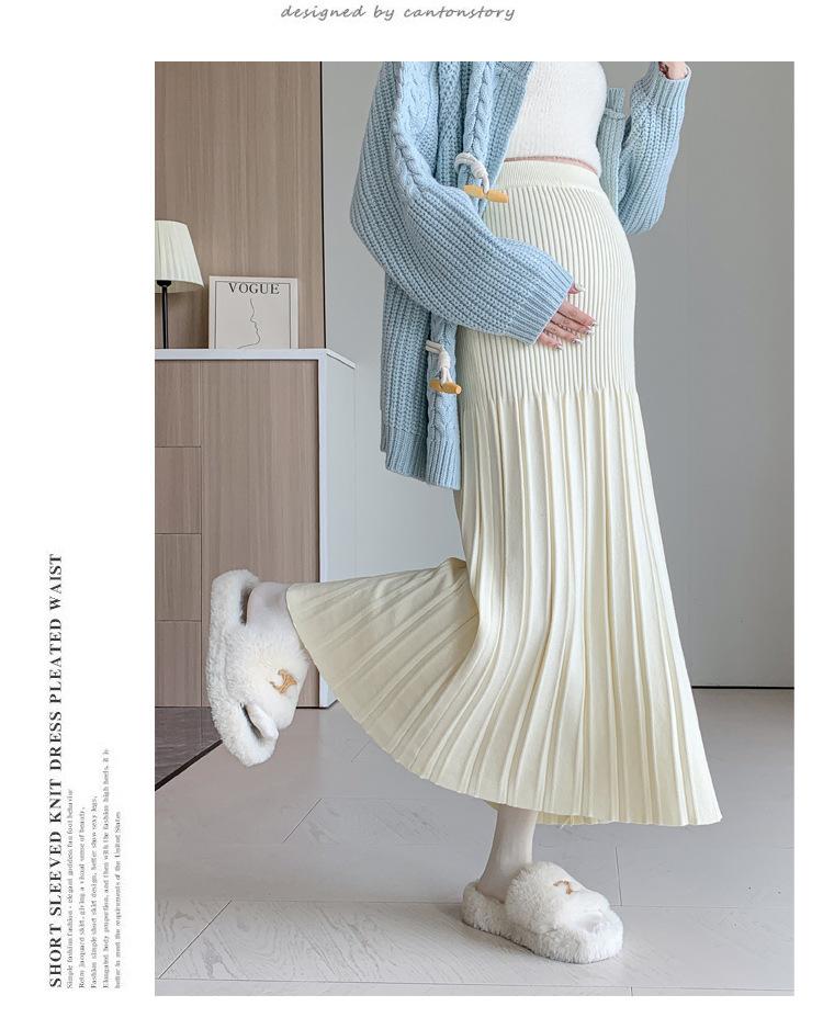 En stock Maternidad Otoño e Invierno Nueva Falda de Punto Falda Plisada Casual Adelgazante Suelta Mujeres Embarazadas Falda de Línea A