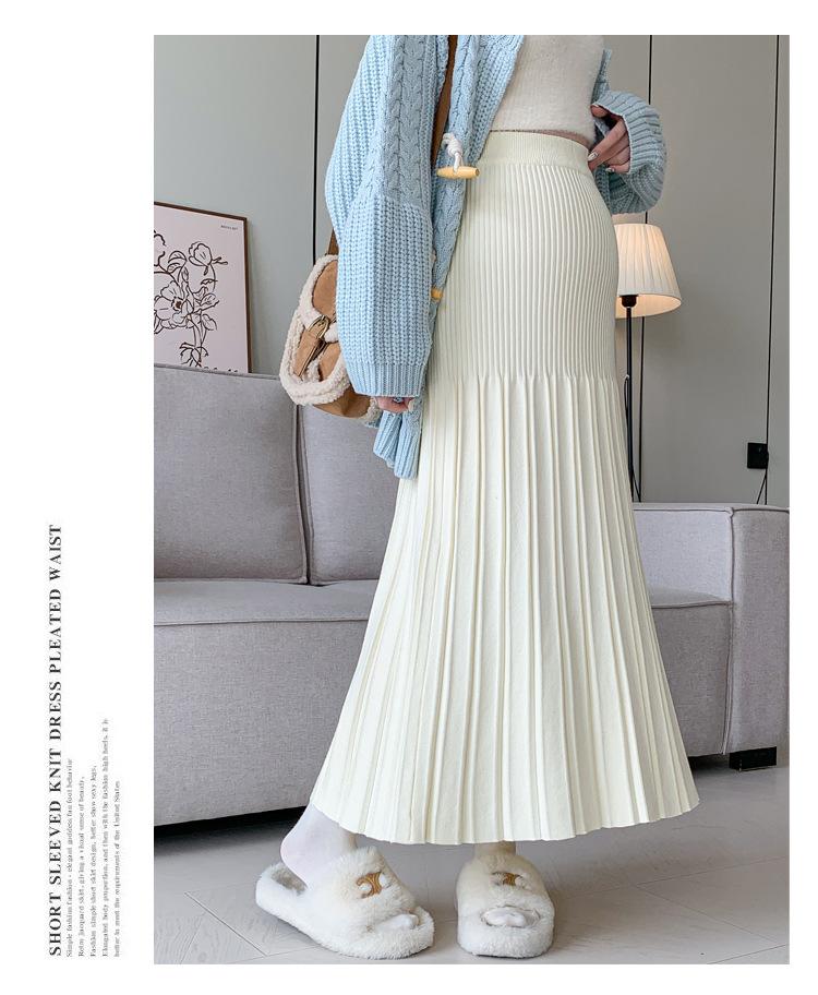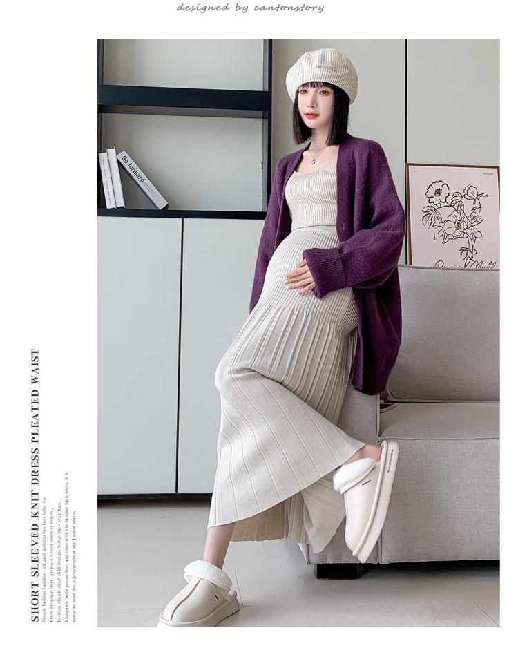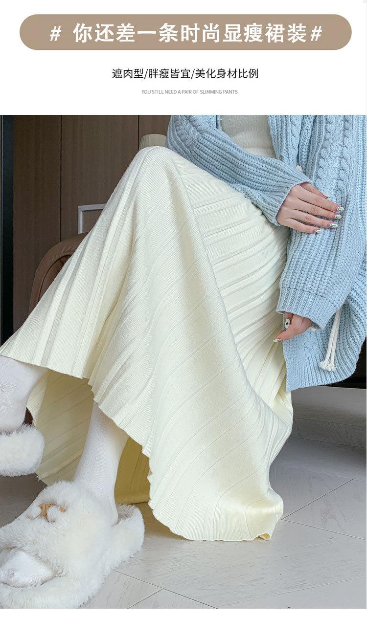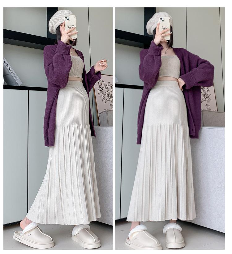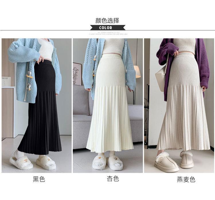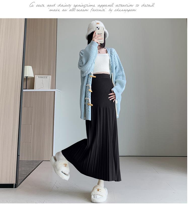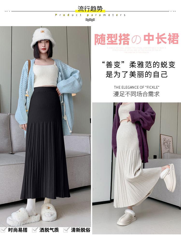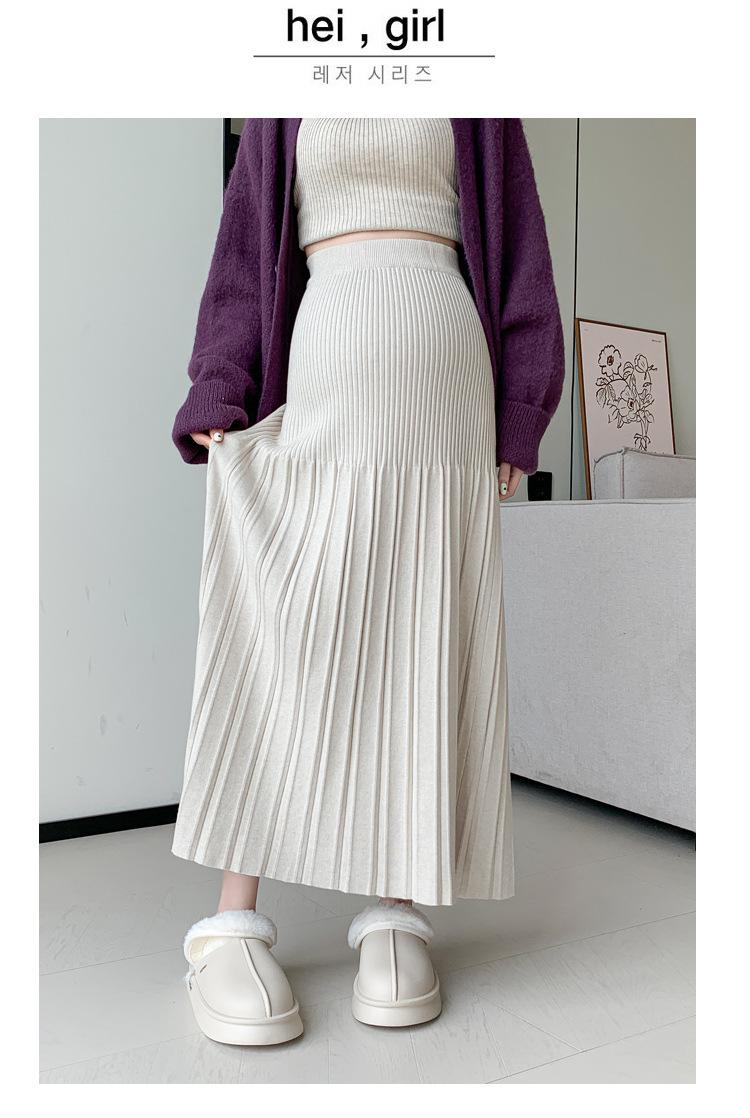 En stock Maternidad Otoño e Invierno Nueva Falda de Punto Falda Plisada Casual Adelgazante Suelta Mujeres Embarazadas Falda de Línea A