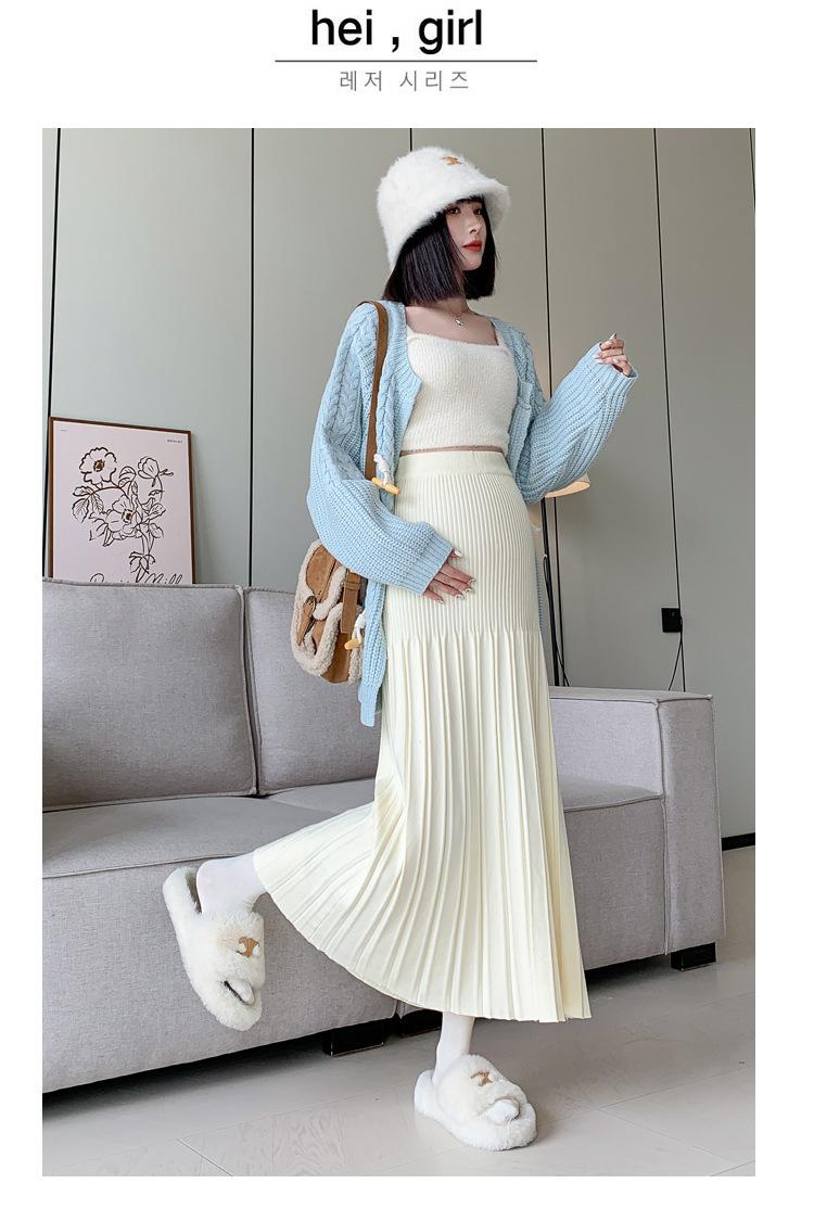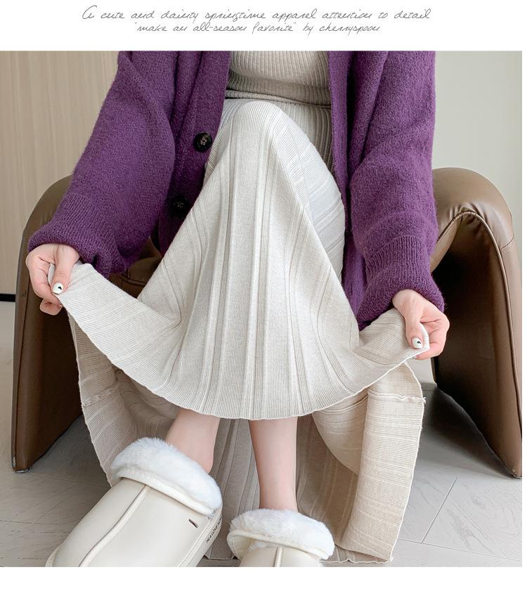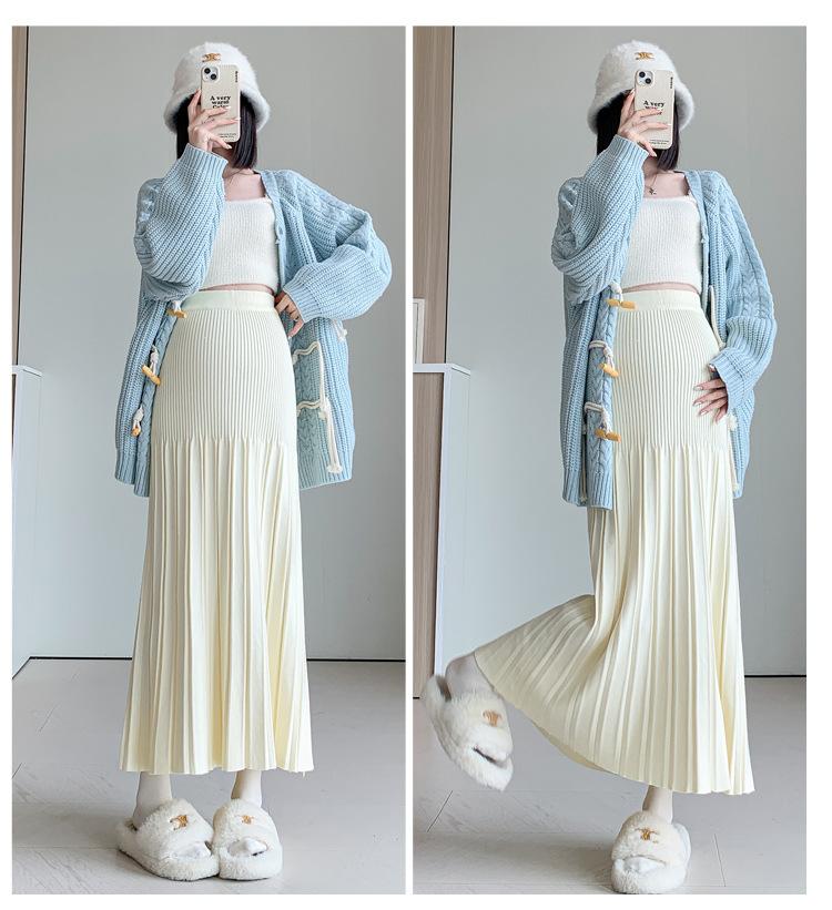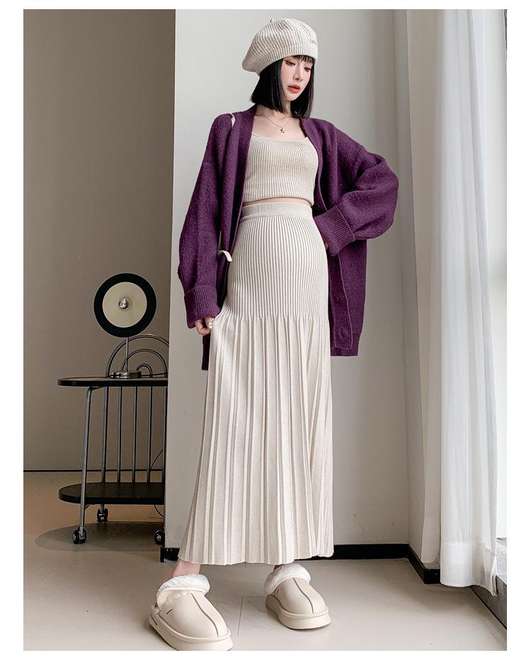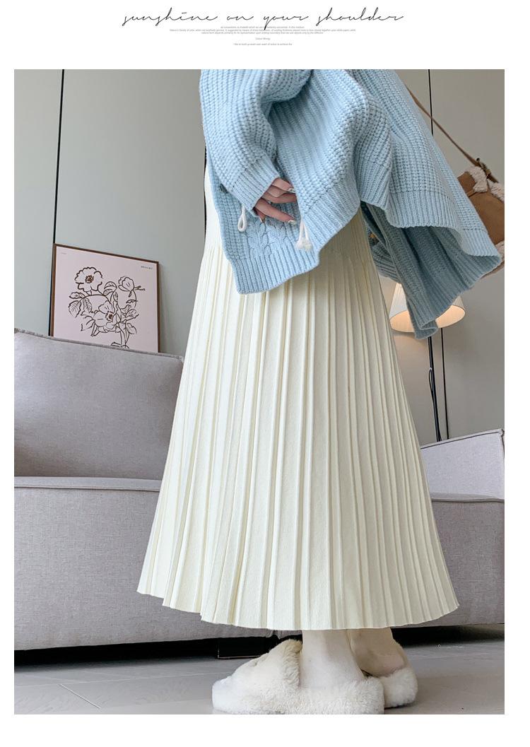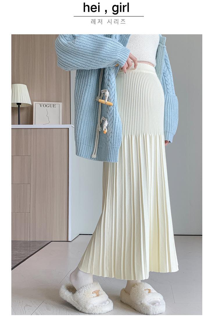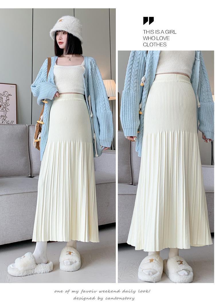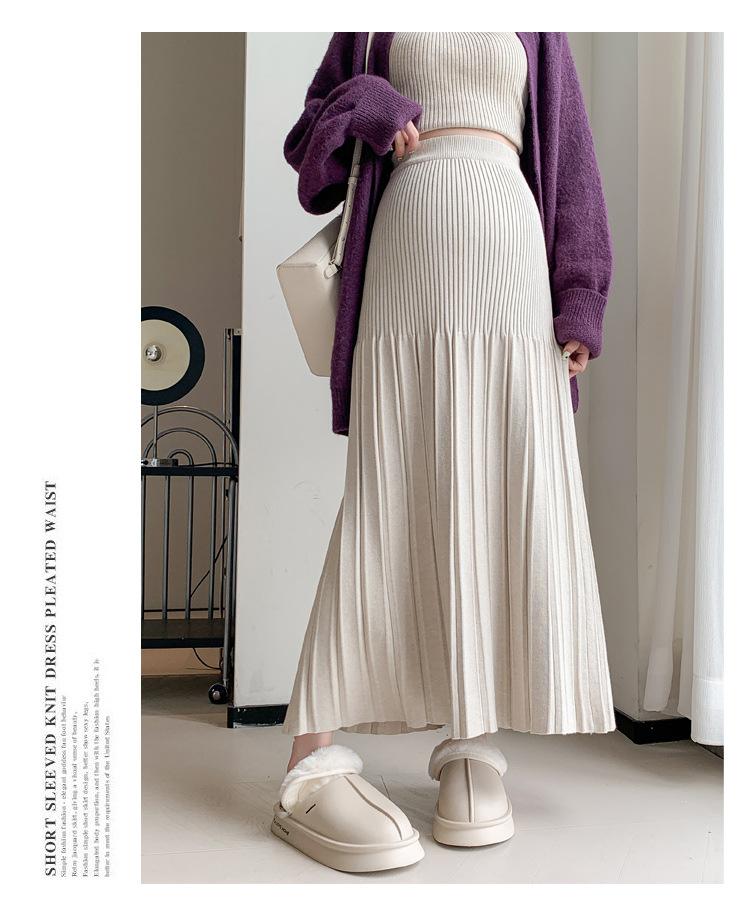 En stock Maternidad Otoño e Invierno Nueva Falda de Punto Falda Plisada Casual Adelgazante Suelta Mujeres Embarazadas Falda de Línea A