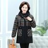 Ropa de invierno para mujeres de mediana edad y mayores, abrigo acolchado de algodón, chaqueta acolchada de algodón cálida con forro polar de longitud media, chaqueta acolchada de algodón a cuadros de estilo occidental para madres