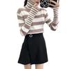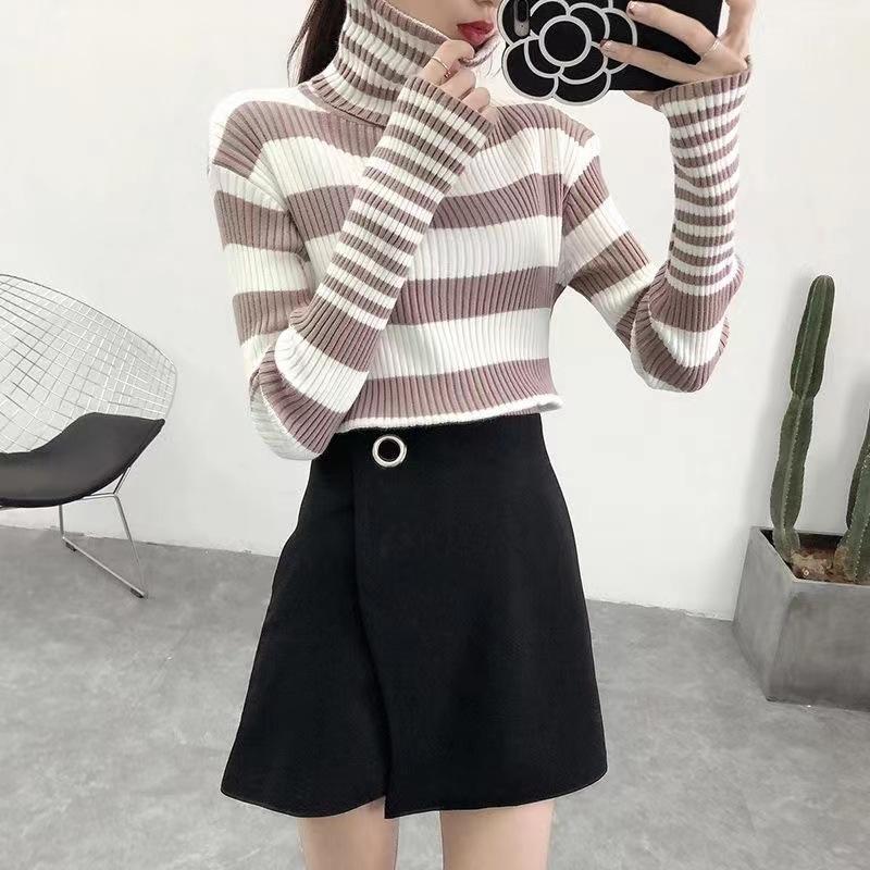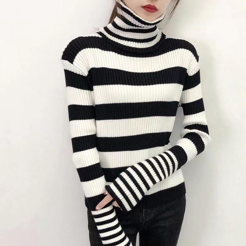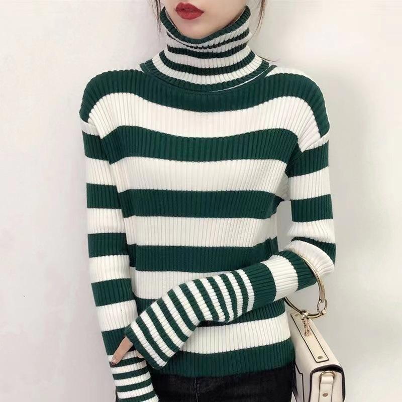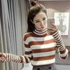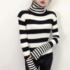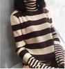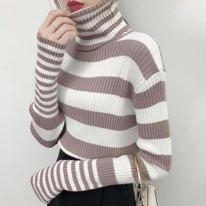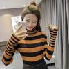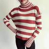 2023 Nuevo Otoño e Invierno Estilo Holgado Perezoso Tejido de Punto a Rayas de Moda Jersey de Cuello Alto Tejido de Punto Grueso para Mujer
