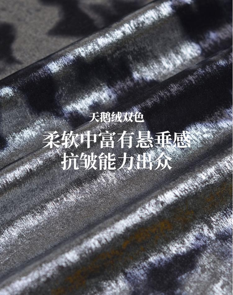 Tela de terciopelo bicolor con efecto bronce plateado, 100 g, tejido satinado, para ropa de alto rendimiento, para exportación.