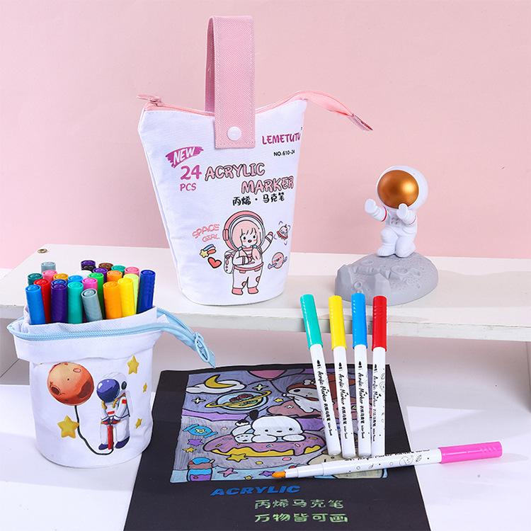 Estuche y marcador acrílico = juego de almacenamiento de papelería