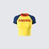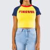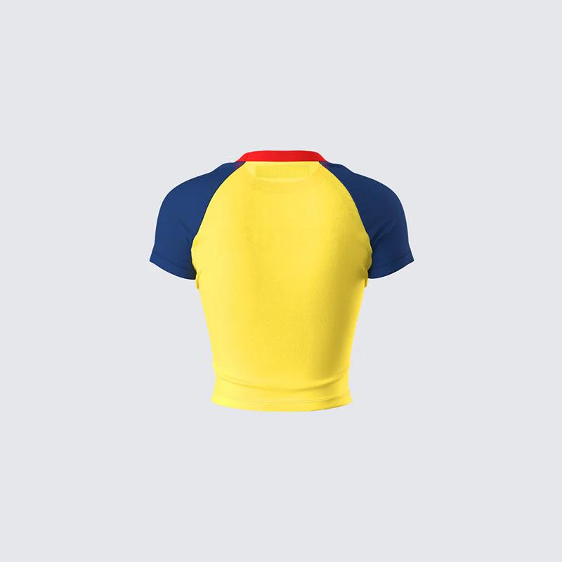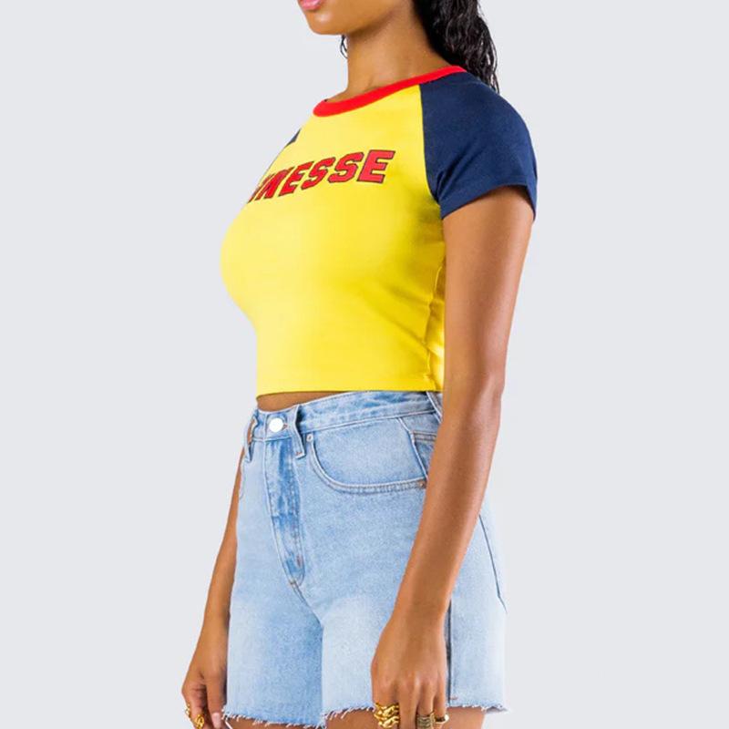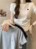 Camiseta de manga corta para mujer, novedad de verano 2025, con letras bordadas, costuras de color en contraste, holgada, adelgazante, top corto para mujer, estilo moderno.