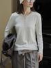 Camiseta holgada de manga larga para mujer, estilo coreano, combinable con todo, cuello redondo, informal, con botones y media tapeta, de moda, para primavera