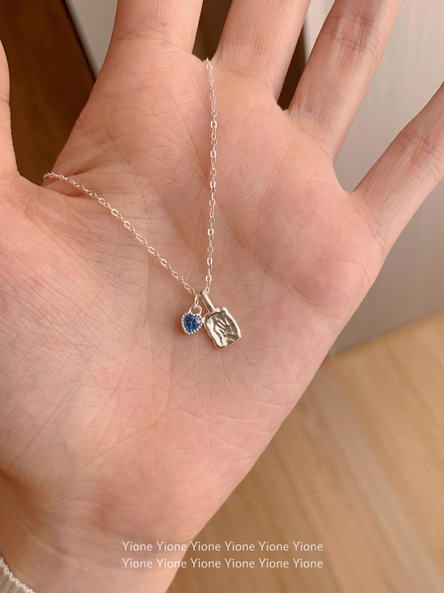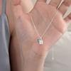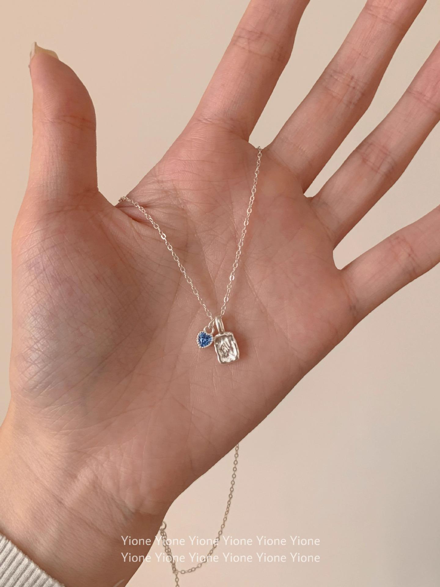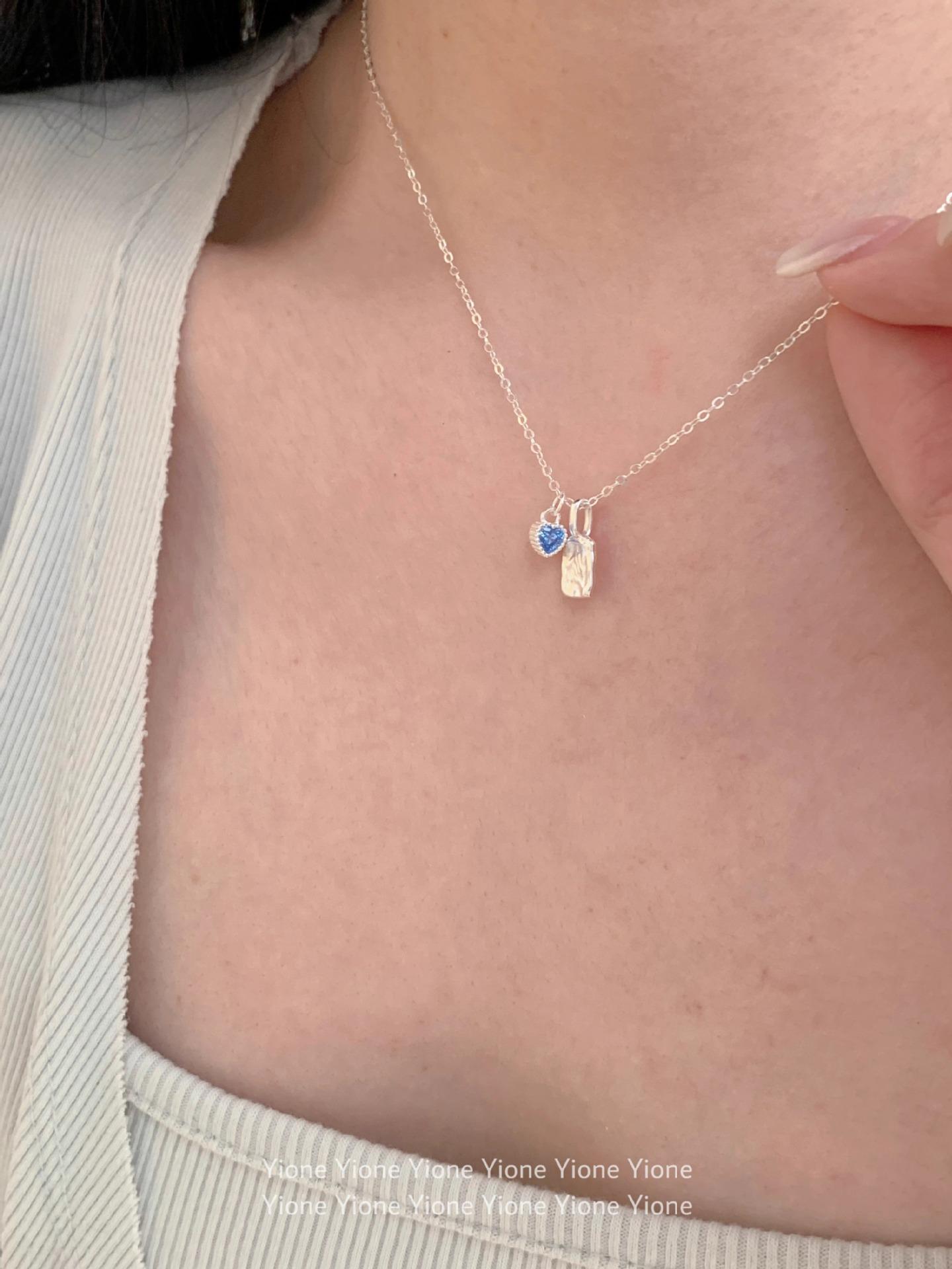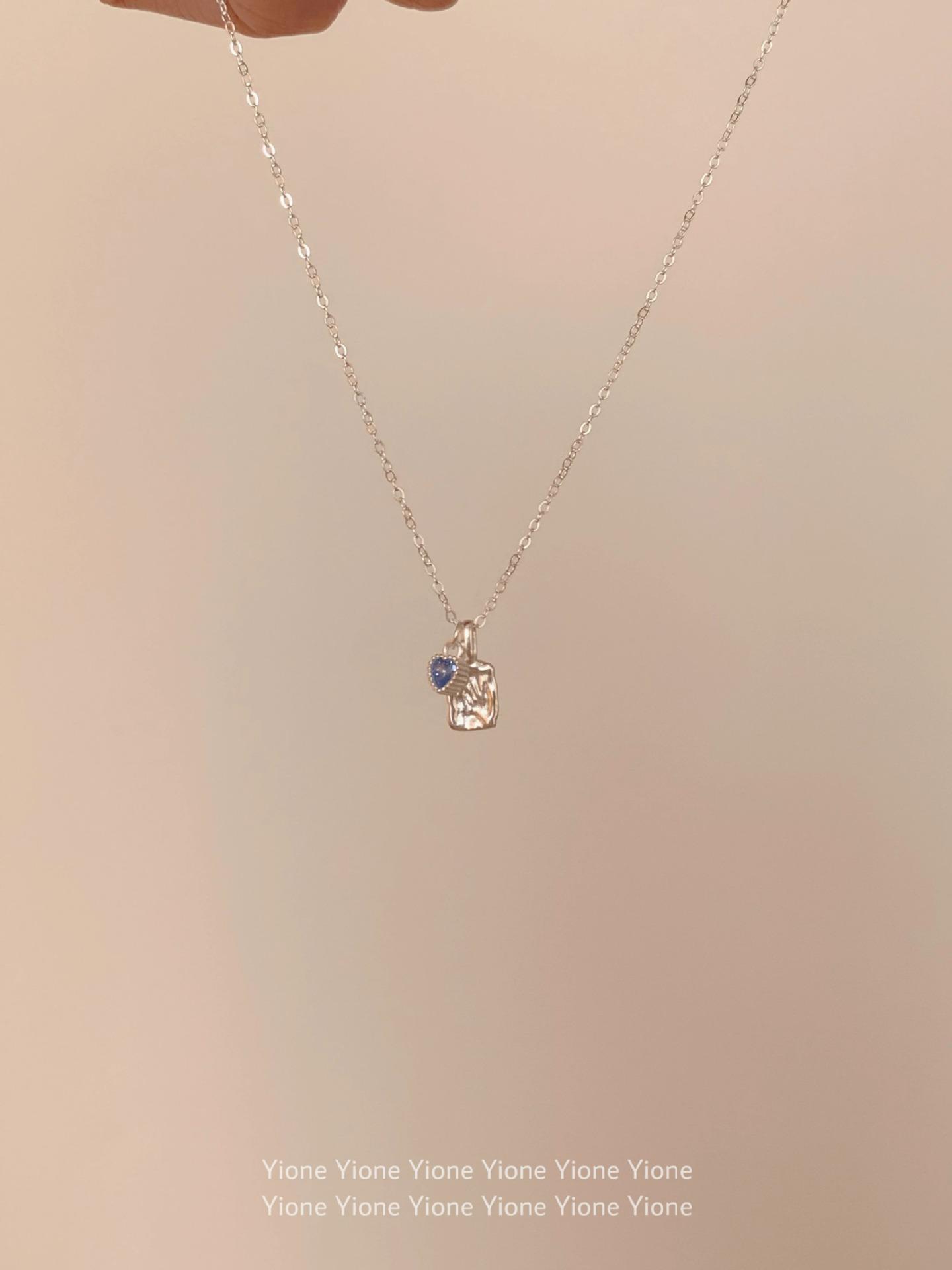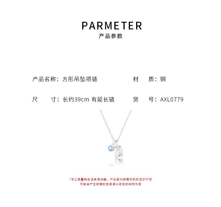 Collar con colgante cuadrado de textura irregular para mujer, sencillo y diario, con cadena de clavícula con circonita azul dulce y de gran sentido del amor.