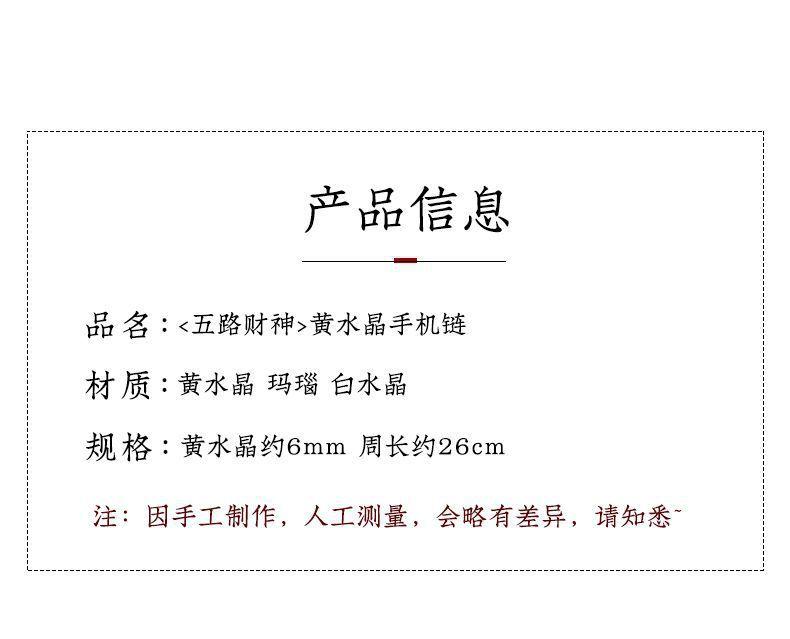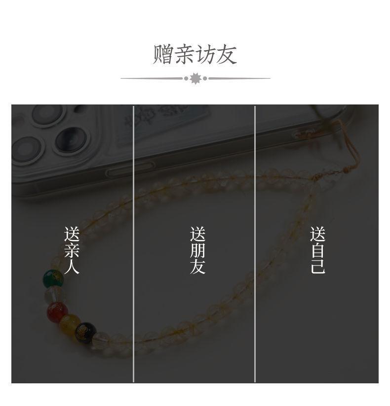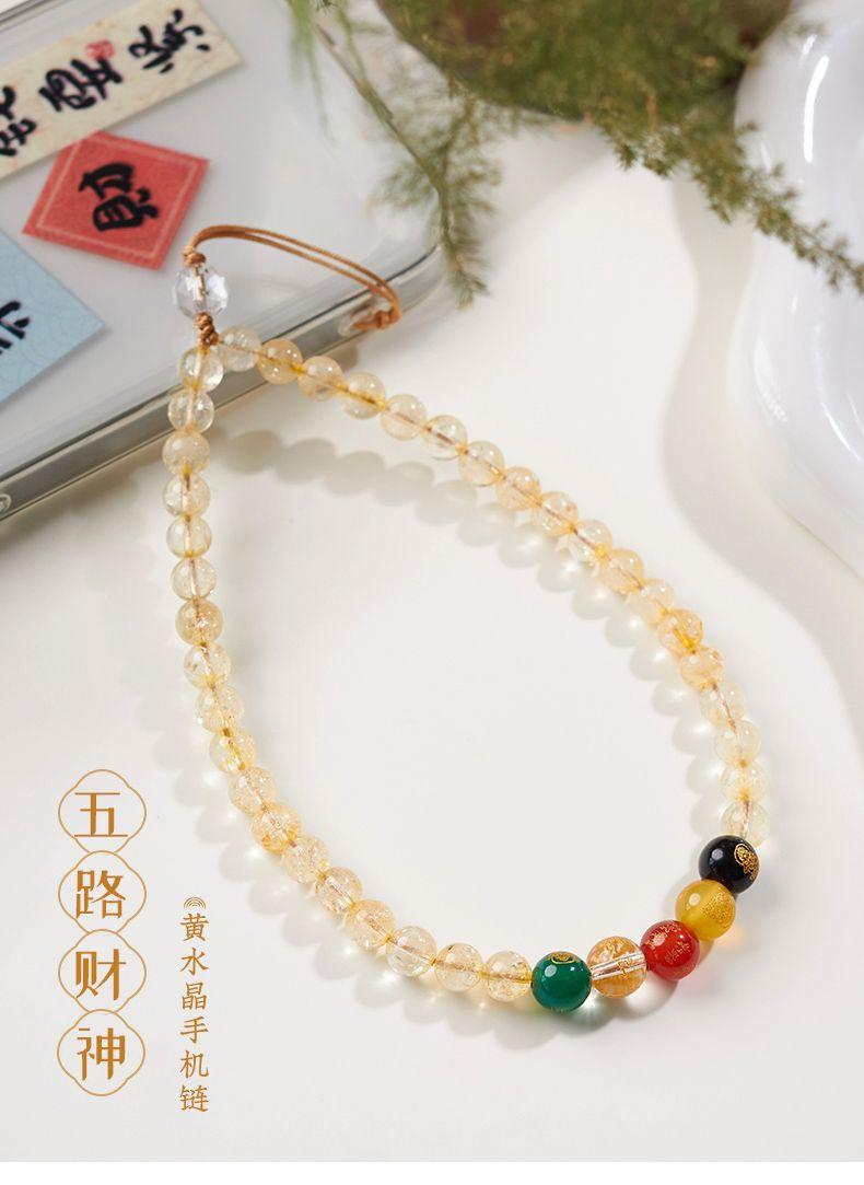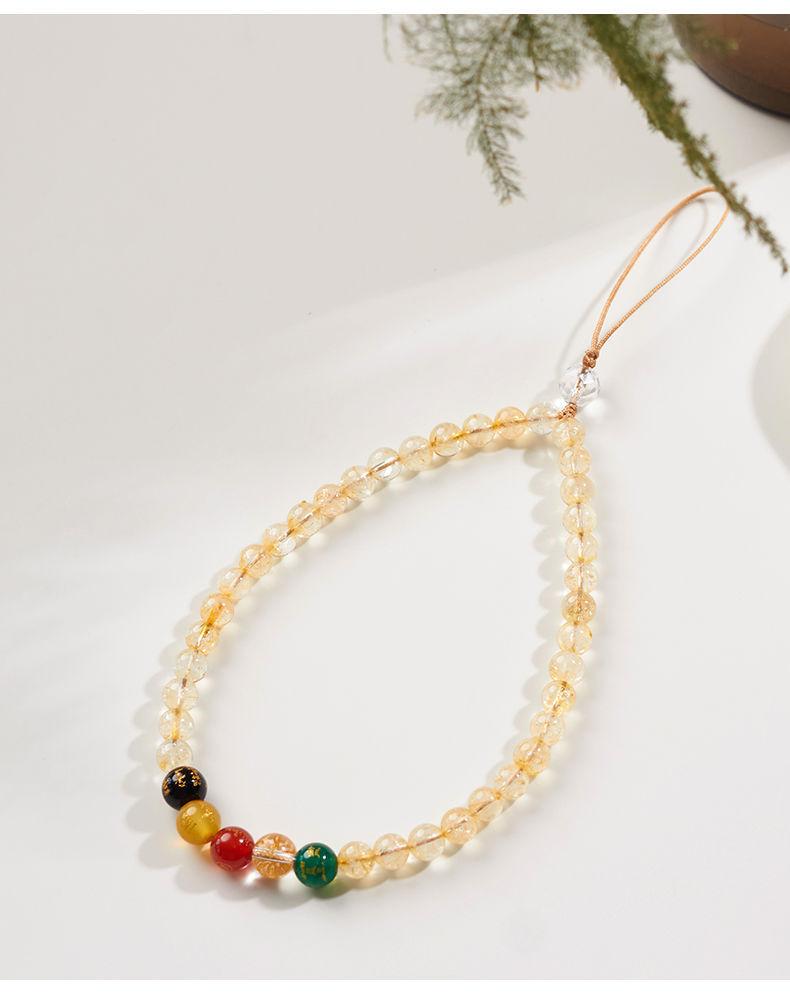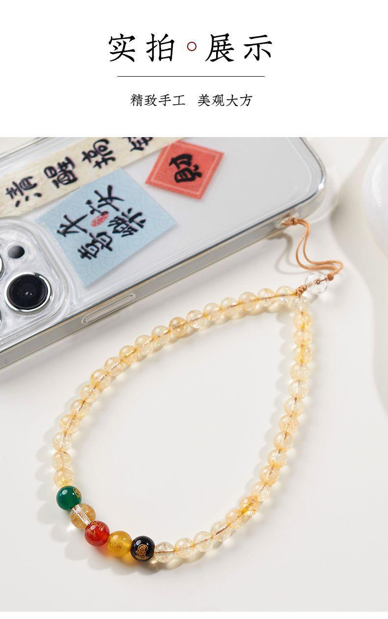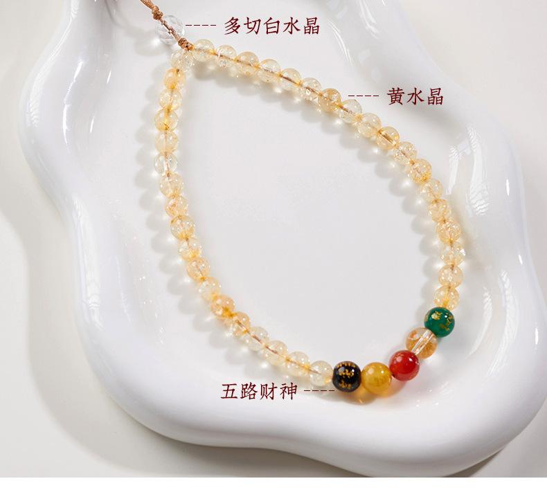 Cadena para teléfono móvil de citrino natural, colgante de cuerda para teléfono móvil femenino de cinco vías, colgante de nicho para muñeca