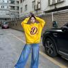 Suéter con capucha de estilo dulce y fresco americano, bordado a rayas en contraste de color, para mujer, otoño e invierno, estilo holgazán, holgado, para pareja, top